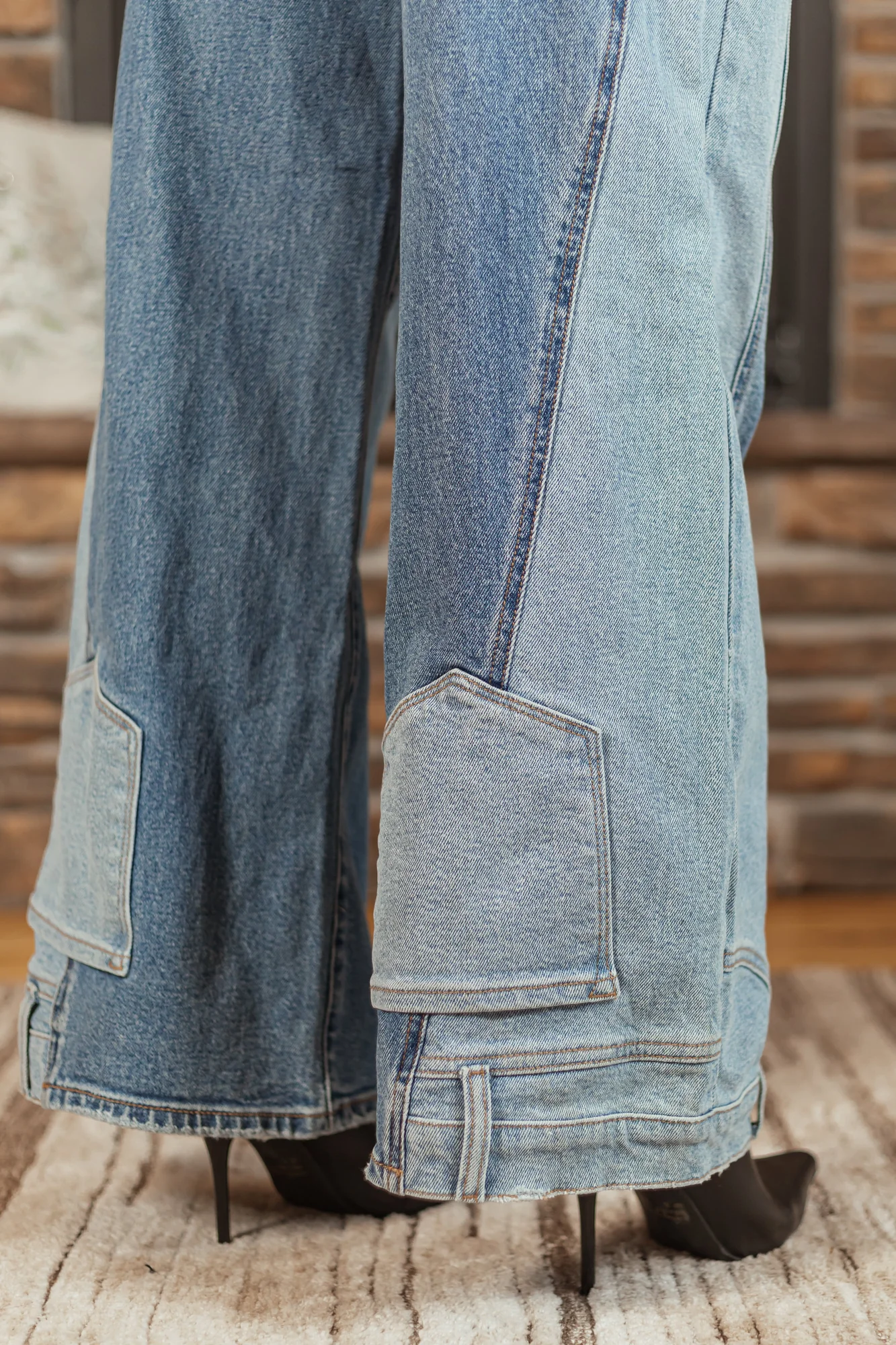 These Medium Wash Wide Leg Jeans with Hem Detail and Pockets offer a comfortable and stylish choice. Made of 99% Cotton and 1% Spandex, they feature a high rise, belt loops, and a colorblock design. With a front rise of 11″ and inseam of 31″, these jeans are perfect for casual days. The semi-stretchy denim and 5 functional pockets provide convenience and a fashionable look. Care instructions: machine wash cold, do not bleach, tumble dry low, iron low.