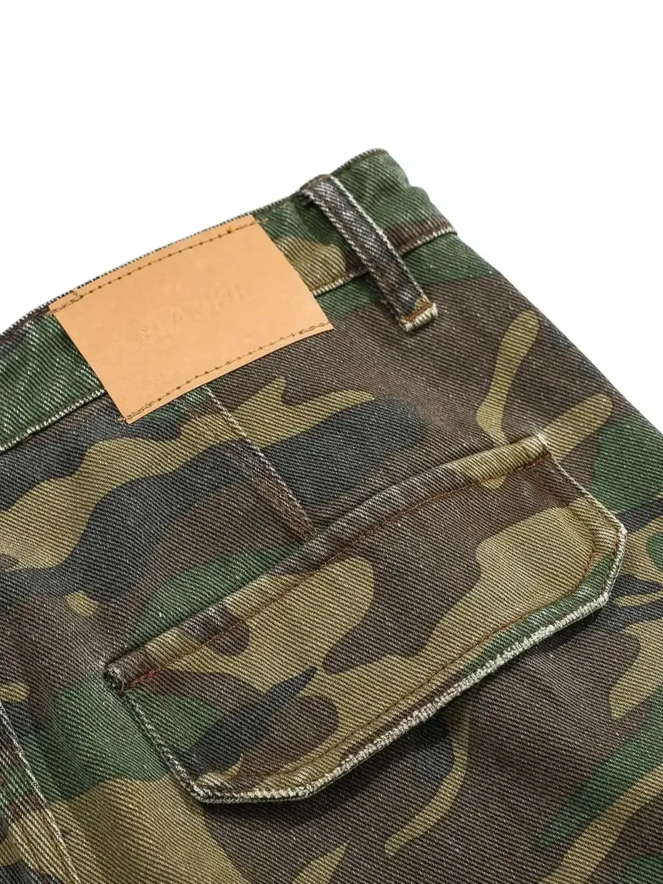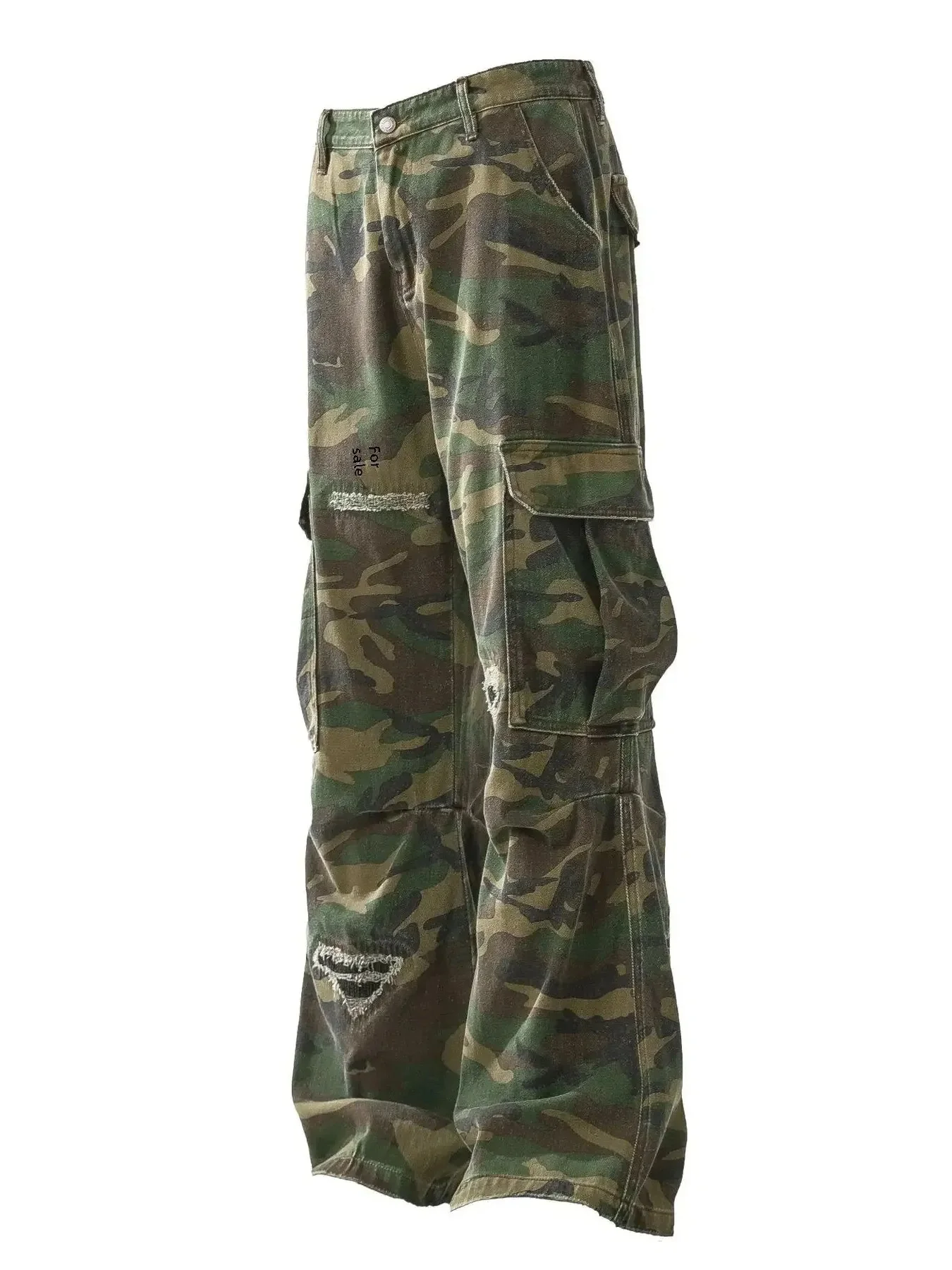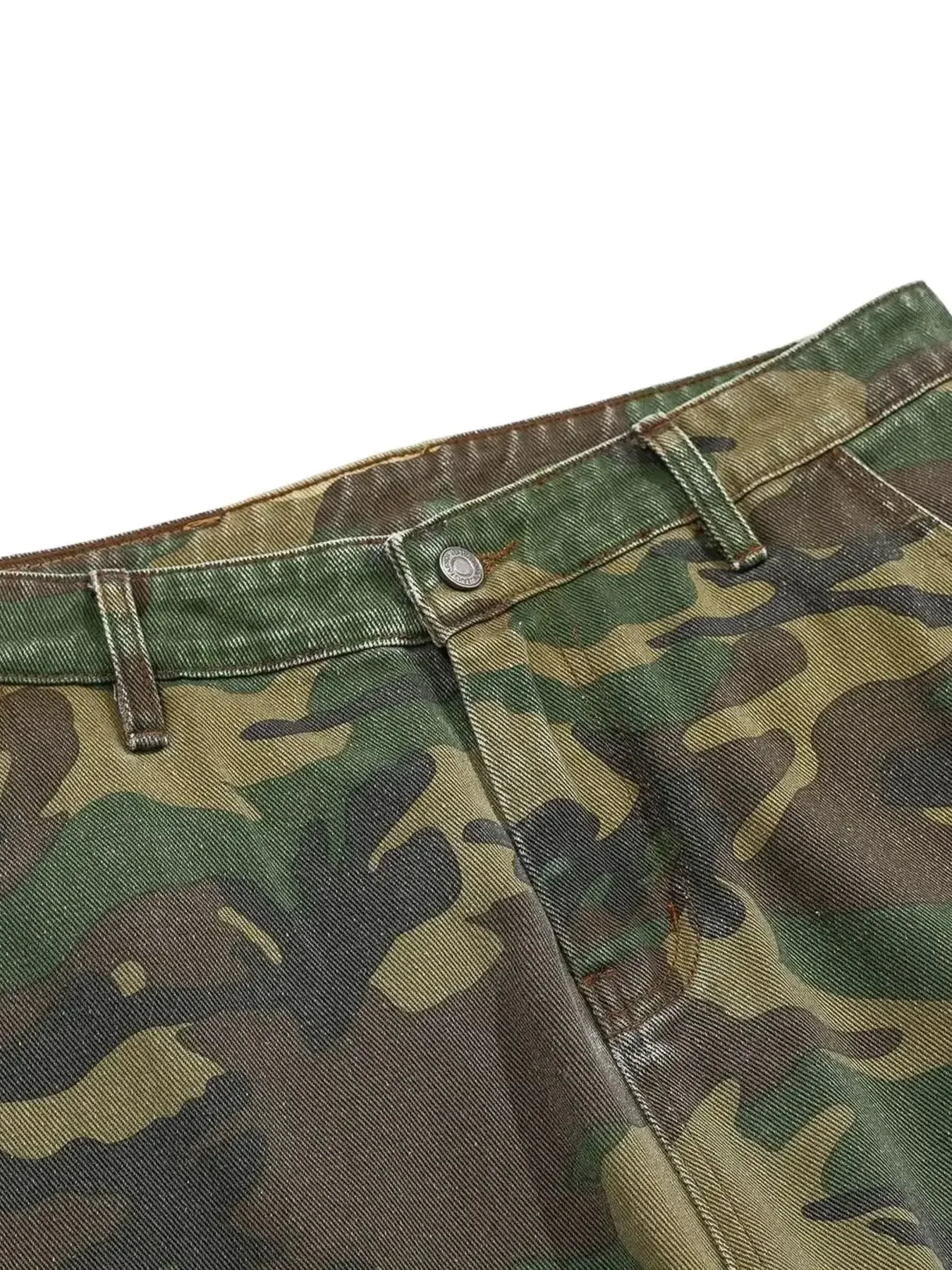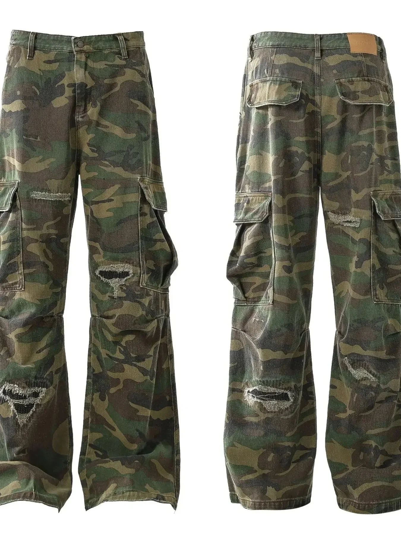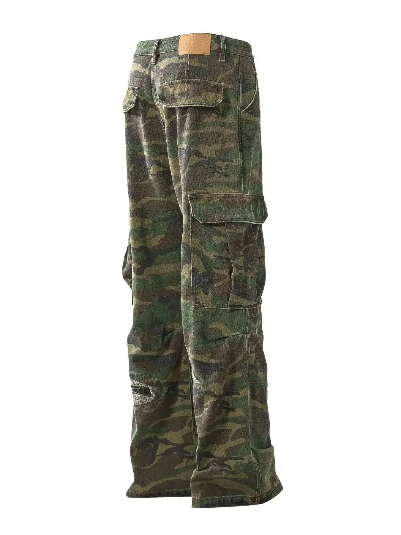 Experience durability and style with our Mens Camo Cargo Pants. Crafted from 100% cotton, these pants feature a drawstring closure and multiple pockets for your convenience. Machine wash cold and tumble dry low for easy care. Available in sizes S to 2XL for the perfect fit.