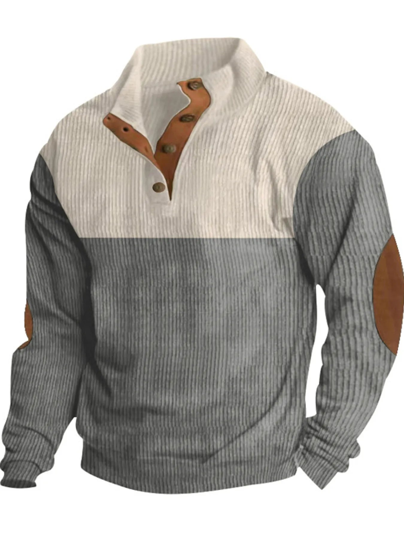 Discover comfort and style with our Mens Color Block Long Sleeve Sweatshirt from the Plus Size Collection. This ribbed sweatshirt features button details, contrast stitching, and a slightly stretchy blend of 95% polyester and 5% spandex for the perfect fit. Easy to care for – machine wash cold and tumble dry low. Imported. Stay on-trend with this fashionable addition to your wardrobe. Available in sizes S to 3XL with measurements outlined. Elevate your casual look with this versatile piece.