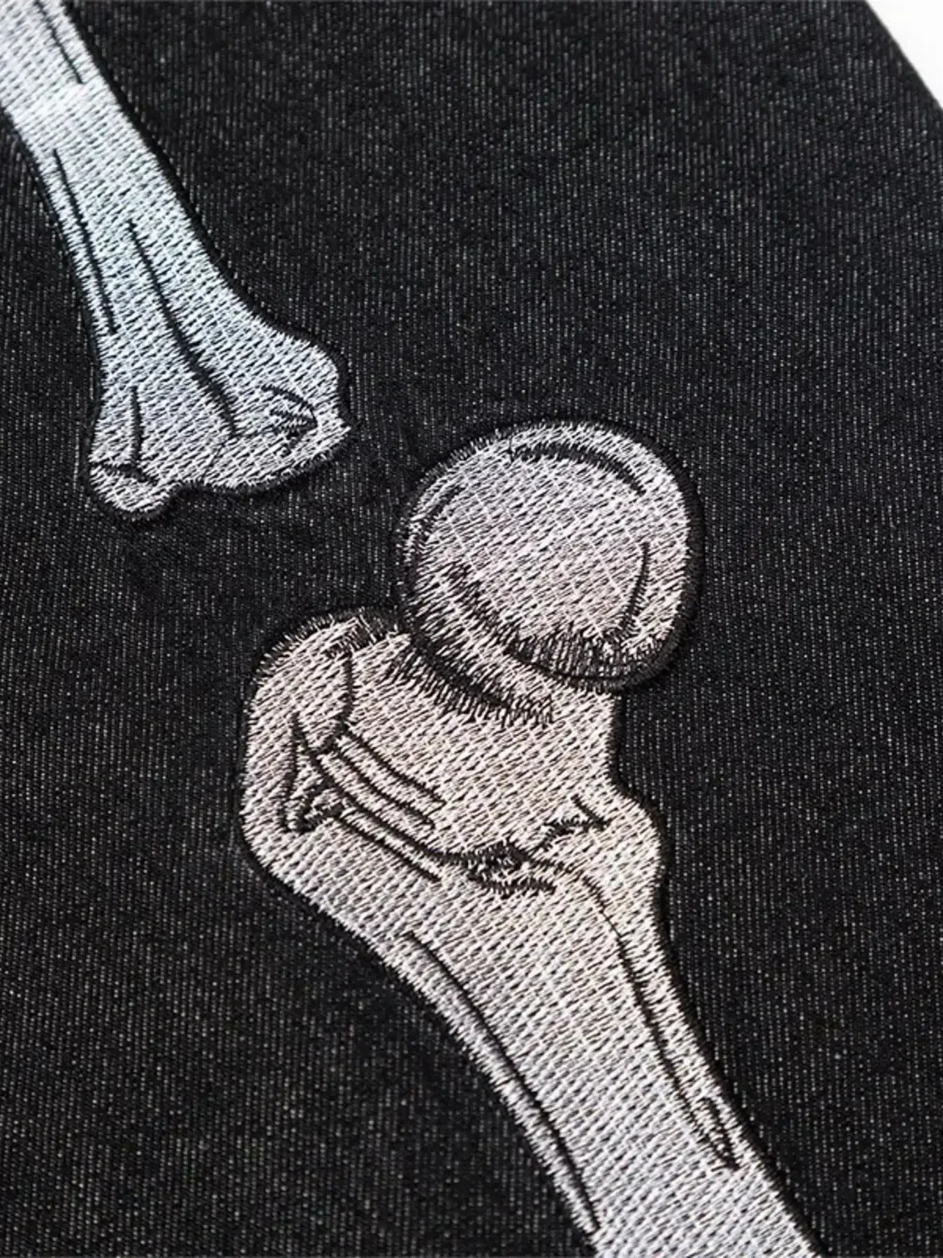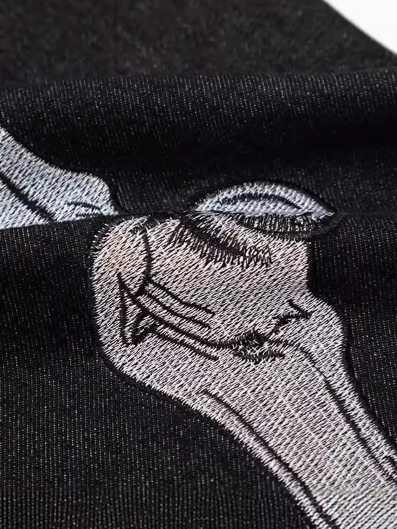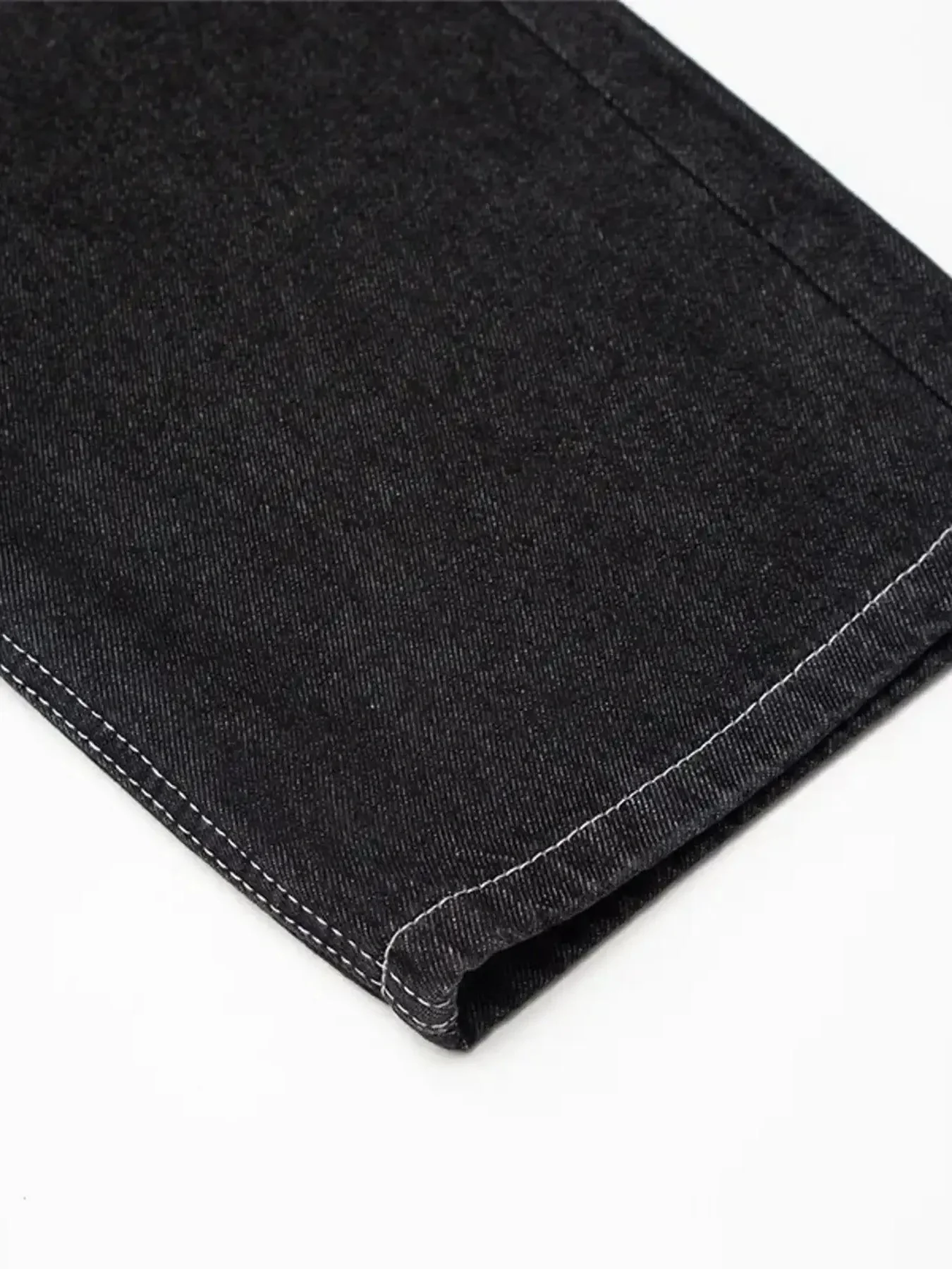 Experience style and comfort with these mens black embroidered straight leg jeans. Crafted from 75% cotton and 25% polyester, these jeans offer a blend of durability and softness. Machine washable for easy care. Available in multiple sizes: M, L, XL, and XXL. Elevate your casual wardrobe with these versatile jeans that provide an impeccable fit and a trendy look.
