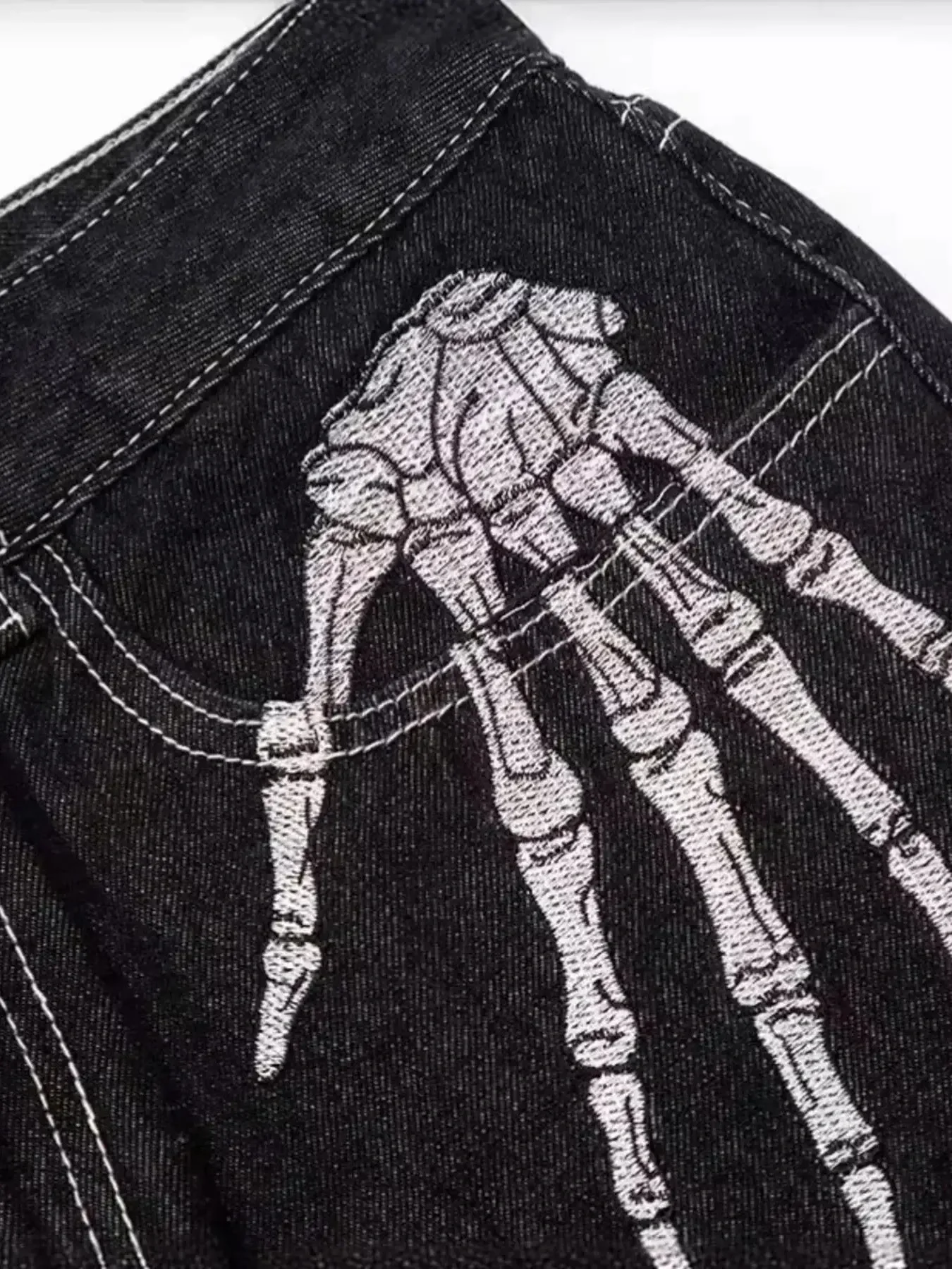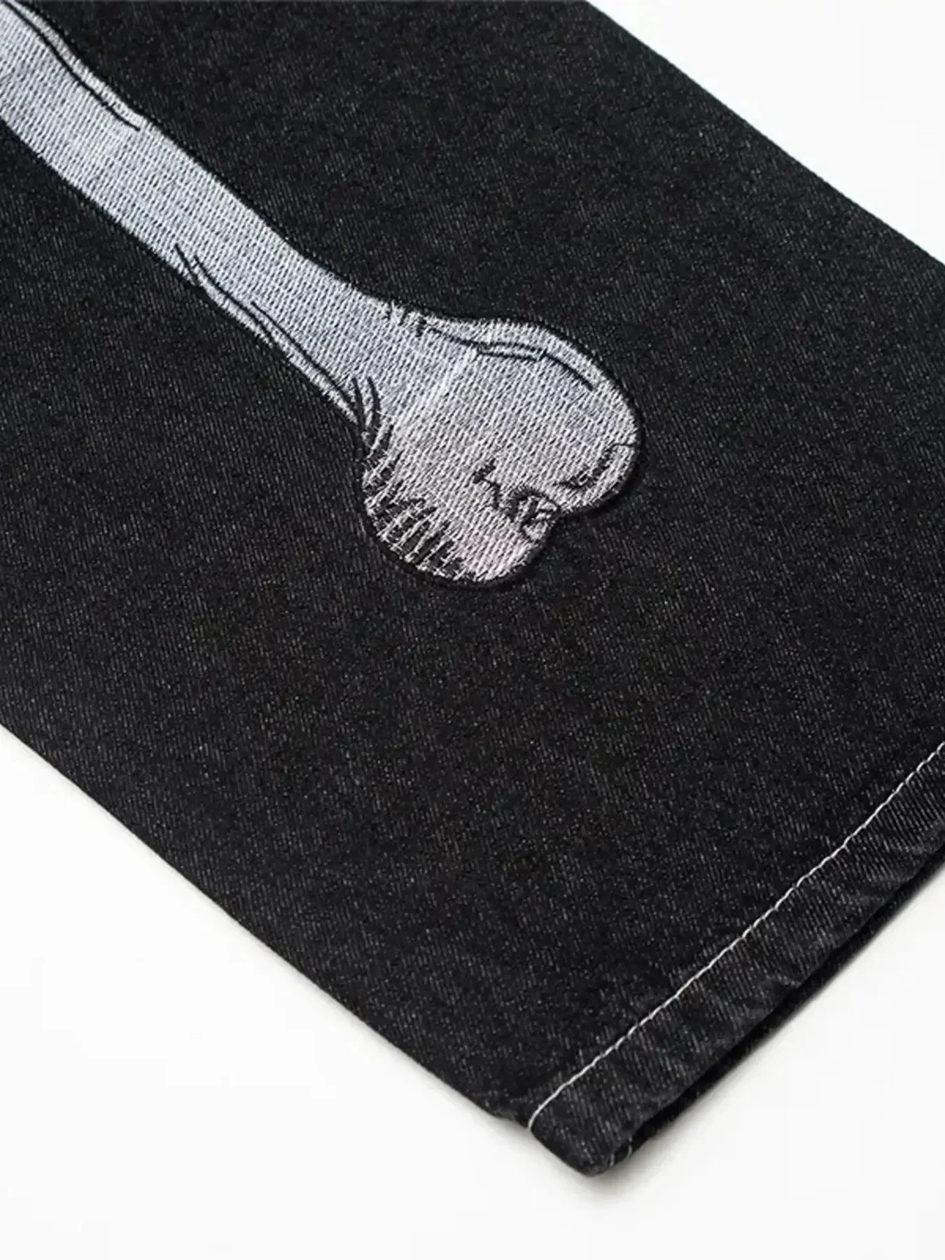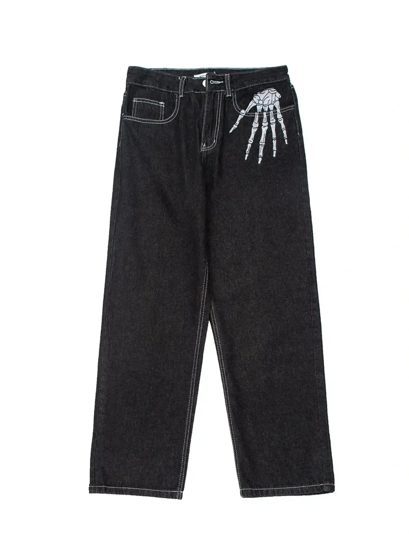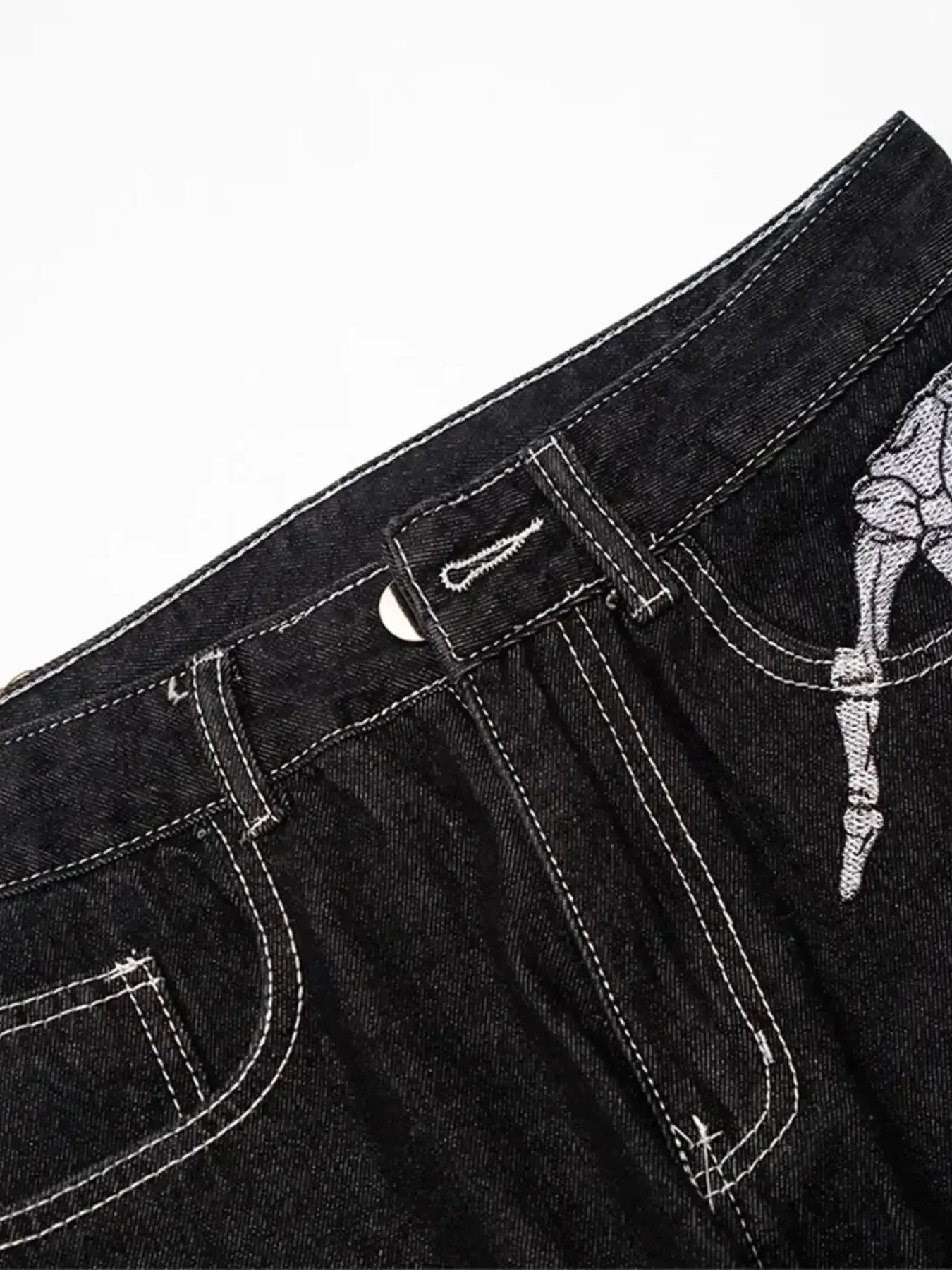 Experience style and comfort with these mens black embroidered straight leg jeans. Crafted from 75% cotton and 25% polyester, these jeans offer a blend of durability and softness. Machine washable for easy care. Available in multiple sizes: M, L, XL, and XXL. Elevate your casual wardrobe with these versatile jeans that provide an impeccable fit and a trendy look.