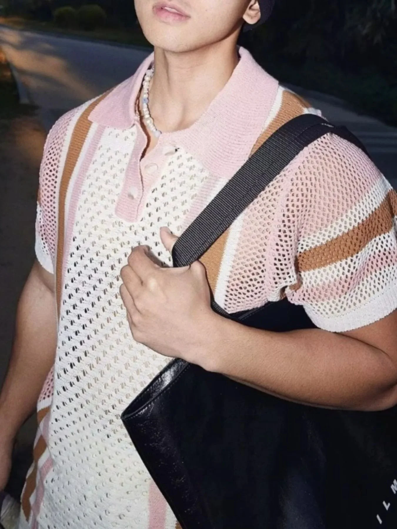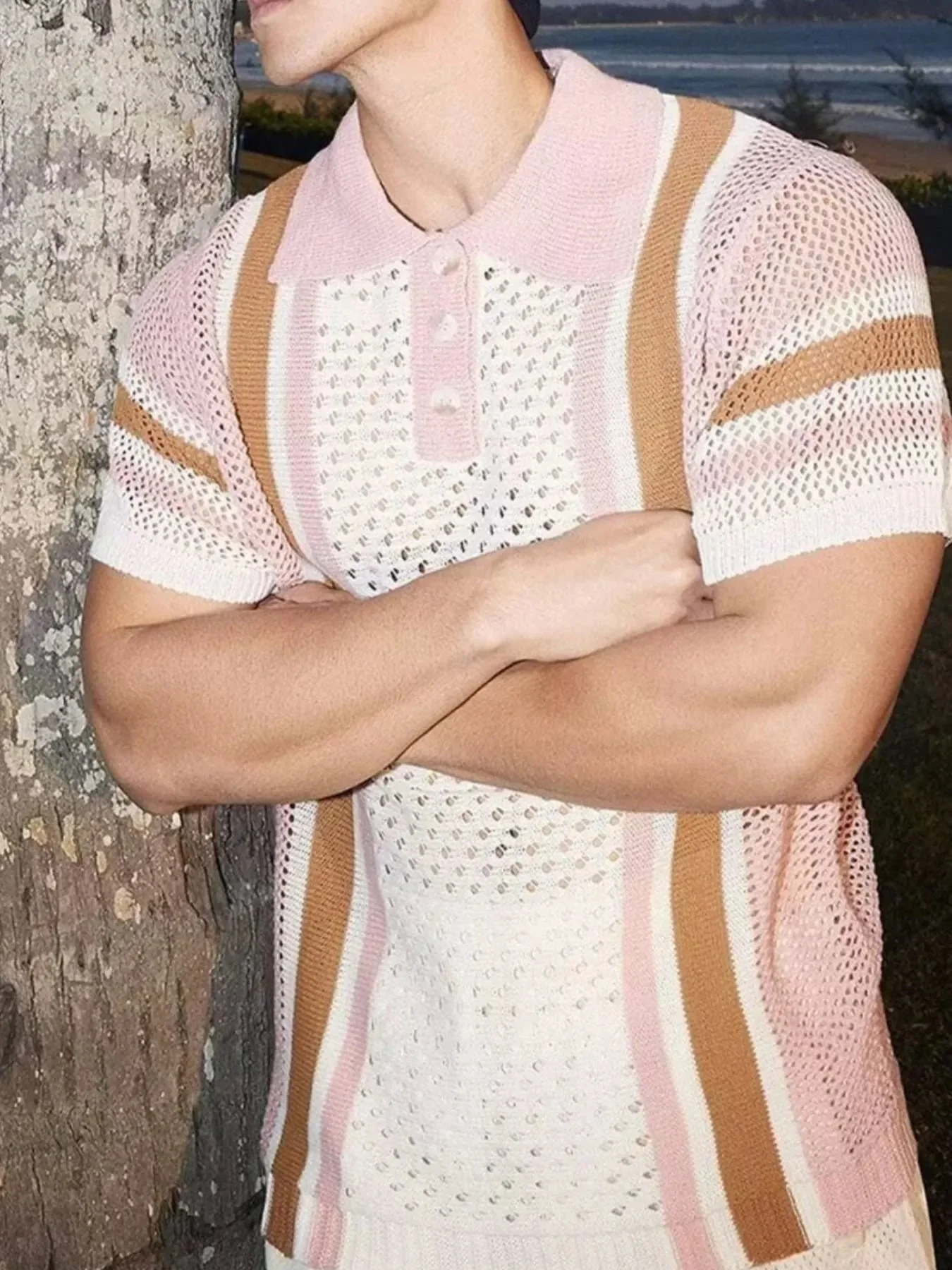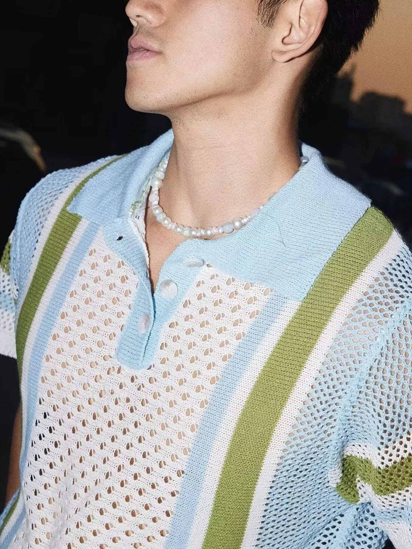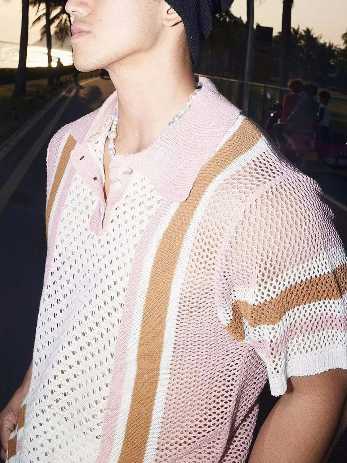This mens knit polo shirt features a basic style with a modern twist. Made of 100% polyester, it offers moderate stretch for comfort. Machine wash cold and tumble dry low for easy care. Available in sizes S to 3XL, this imported shirt comes in various colors like Blue and Hot Pink.