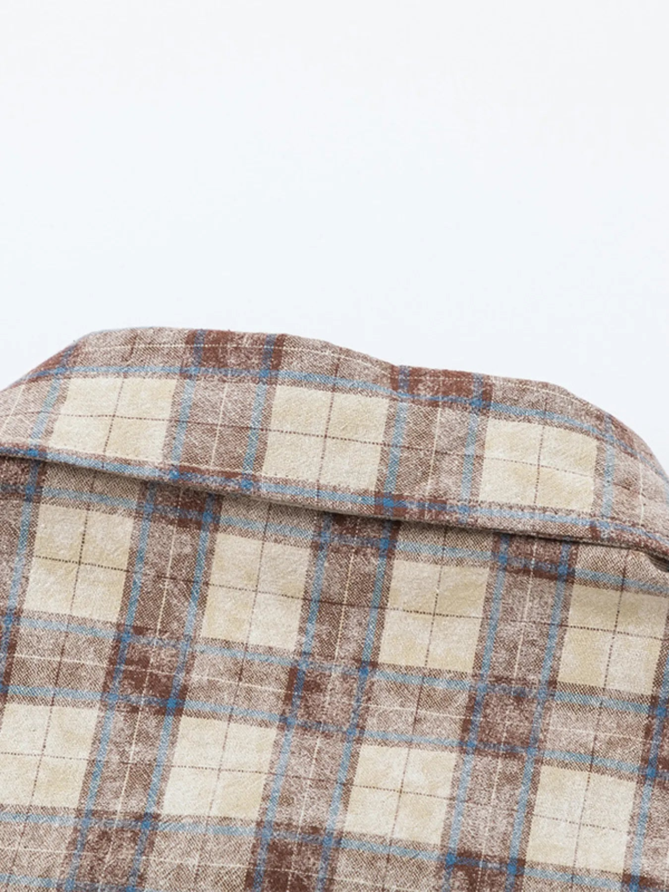 Experience timeless style with our Mens Plaid Long Sleeve Button-Up Shirt. This oversized shirt features a distressed design with button closure and pockets, offering a classic yet trendy look. Crafted from 100% cotton, this shirt provides ultimate comfort and breathability. Easy to care for with machine wash cold and tumble dry low instructions. Elevate your wardrobe with this versatile piece. Available in multiple sizes: S, M, L, XL. Add this shirt to your collection and redefine casual elegance.