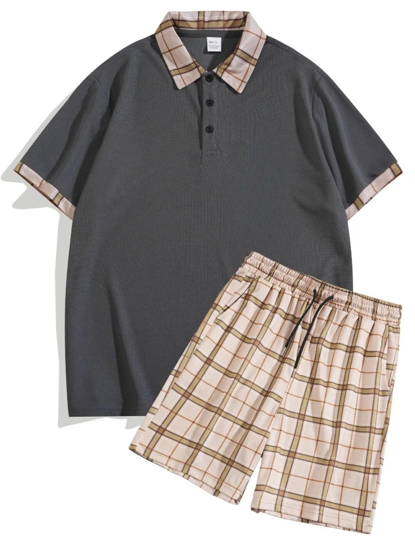 Upgrade your wardrobe with this Mens Plaid Polo and Shorts Set. Crafted from a blend of 85% polyester and 15% spandex, this two-piece set features a classic plaid design. The polo shirt includes button-up closure, while the shorts offer a drawstring waist and pockets for added convenience. With sizes ranging to 3XL, its easy to find the perfect fit. Machine washable for easy care. Elevate your casual style with this modern and comfortable set.