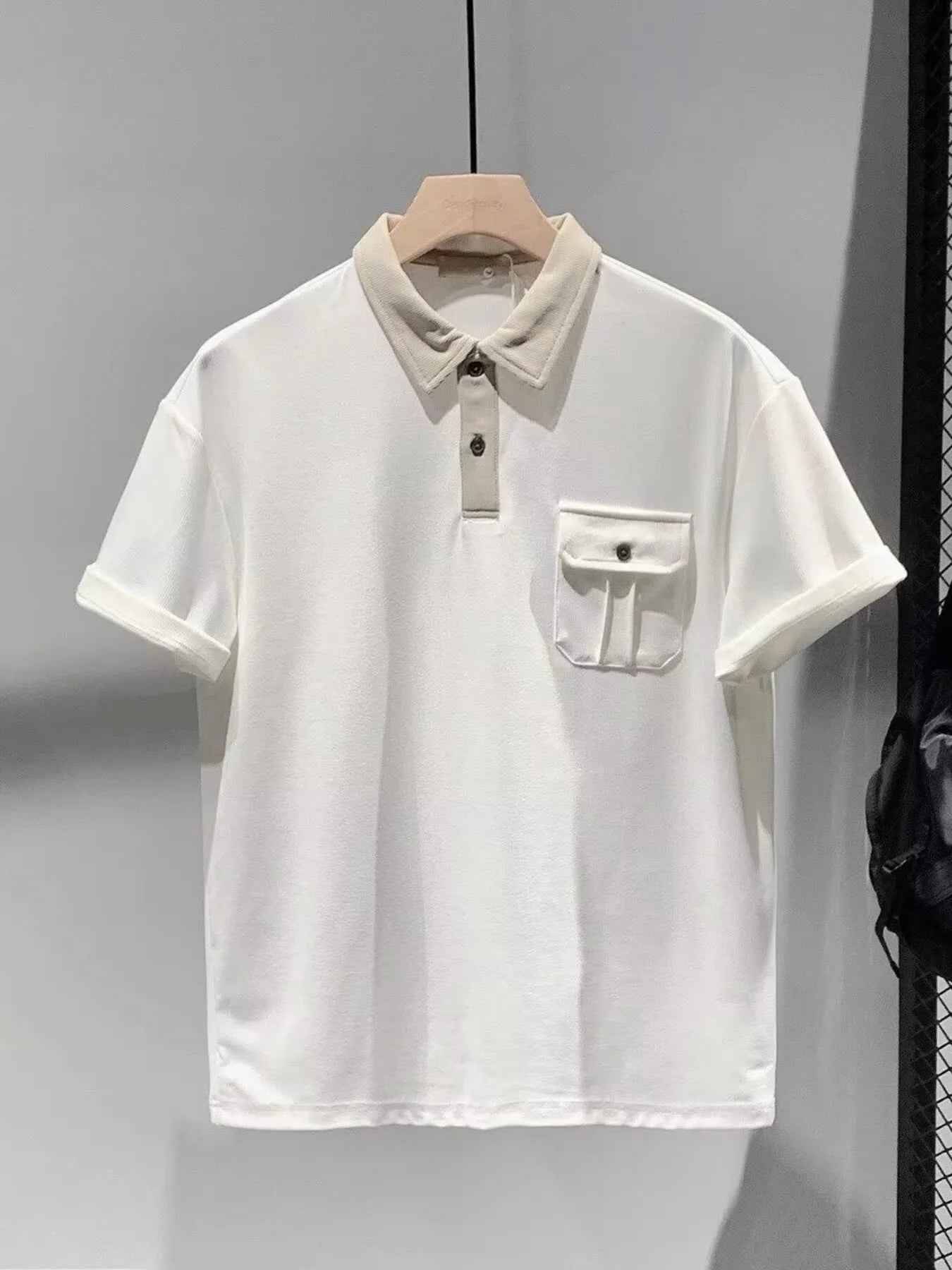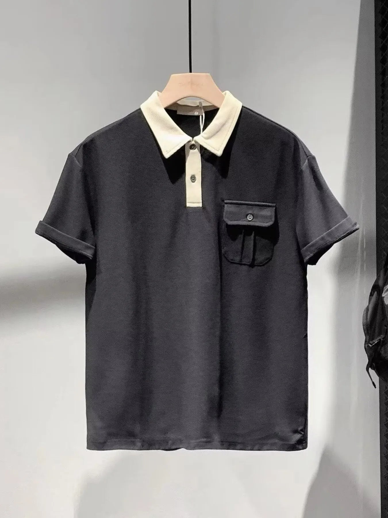 This mens polo shirt with button detail offers a classic yet stylish look. Made of 100% polyester, it is slightly stretchy for added comfort. Care instructions include machine wash cold and tumble dry low. Imported. Available in multiple sizes including M, L, XL, and 2XL. The M size measures: Bust: 39.4 inches, Shoulder: 17.3 inches, Top Length: 27.6 inches, Sleeve Length: 8.1 inches.