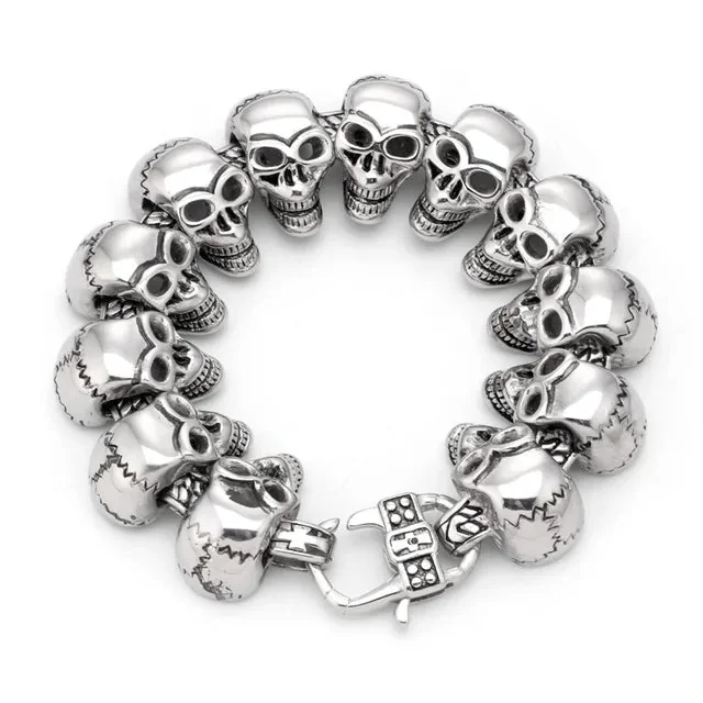 Discover the exquisite Limited Edition Mens Skull Bracelet crafted from premium stainless steel for unparalleled quality. This unique accessory adds a touch of charisma to any outfit, making it a versatile wardrobe essential. Rest assured, The End Cult is dedicated to your complete satisfaction. Reach out to us anytime for a seamless shopping experience!