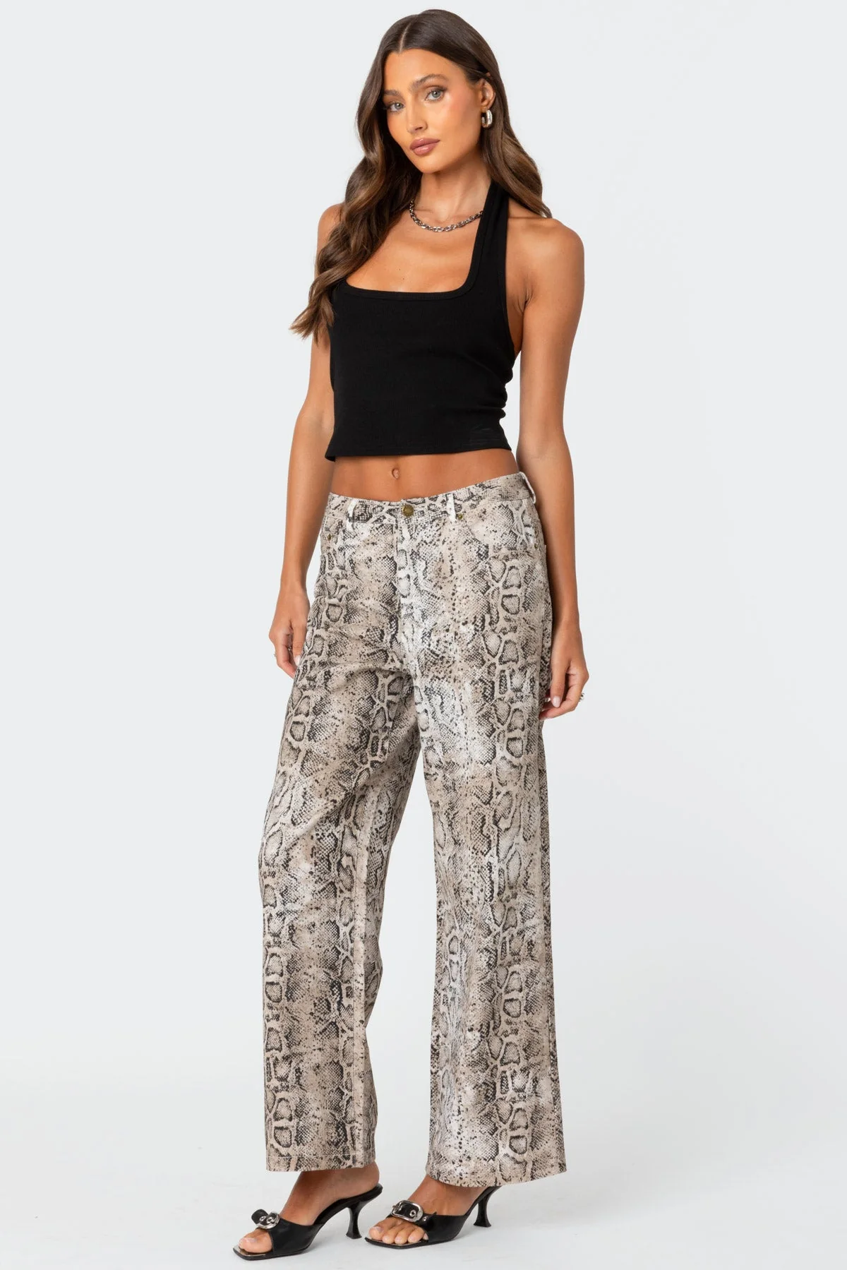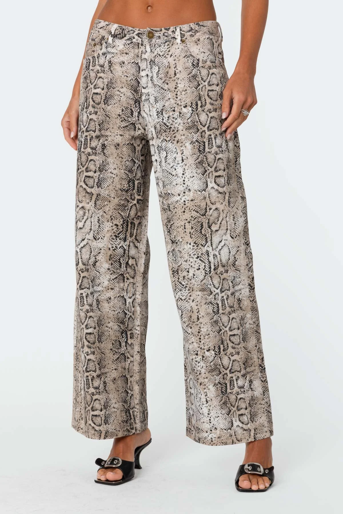 Upgrade your wardrobe with these mens snakeskin print low rise jeans crafted from 100% cotton. The stylish printed fabric adds a trendy touch, while the machine-washable design ensures easy care. Perfect for various occasions, these jeans have a low rise waist and come in multiple sizes.