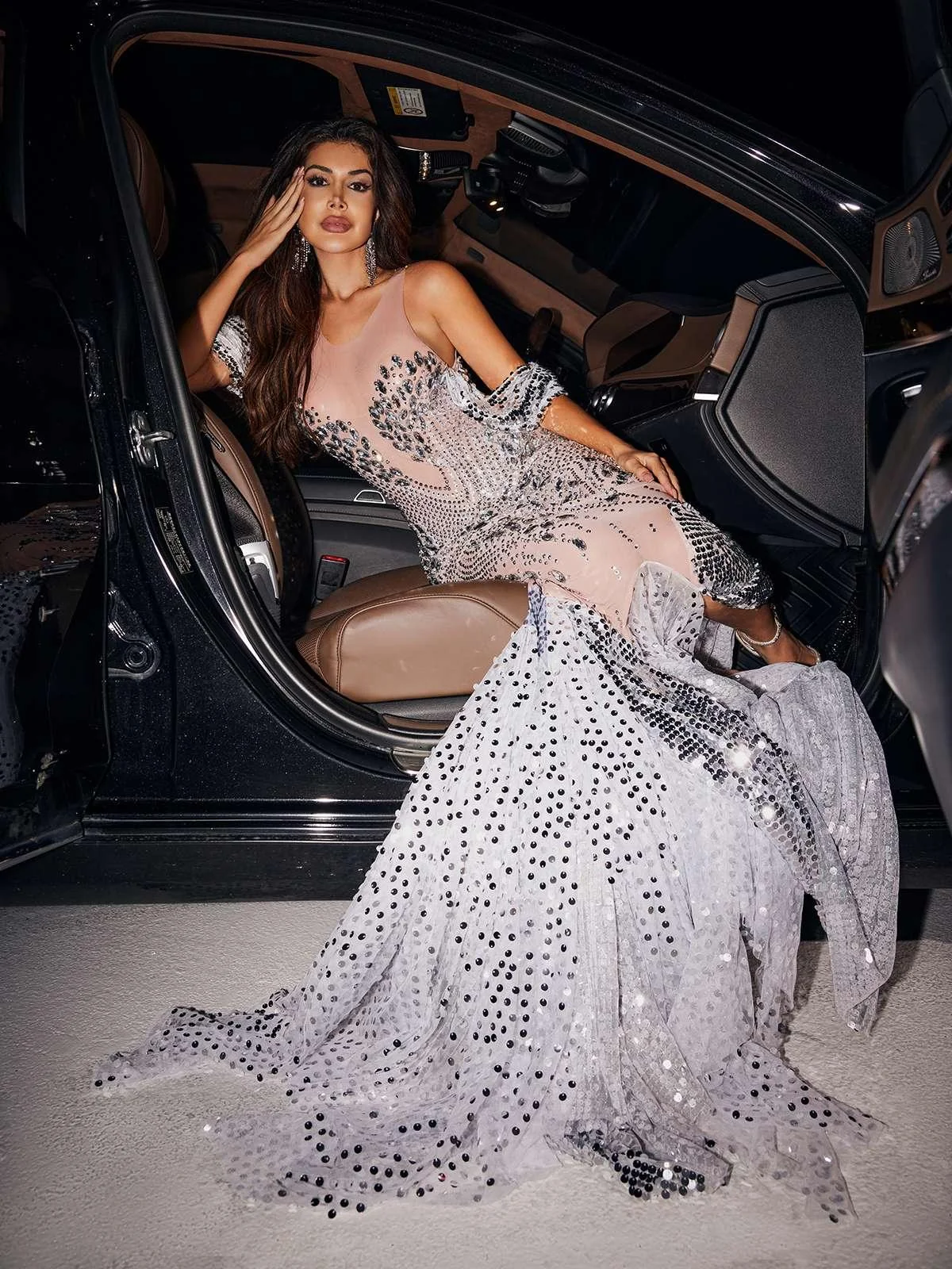 Elevate your style with our stunning Mermaid Cut Rhinestone Maxi Dress. This dress is designed to make a statement at any event, exuding elegance and sparkle with intricate rhinestone details. Crafted from high-quality 100% Polyester material, it features a flattering mermaid cut silhouette and an invisible zipper opening at the back for easy wear. Enjoy a slight stretch for added comfort. Dry clean only. Please note that the color may vary slightly due to lighting. Stand out from the crowd and turn heads wherever you go. Model is wearing a size Small.