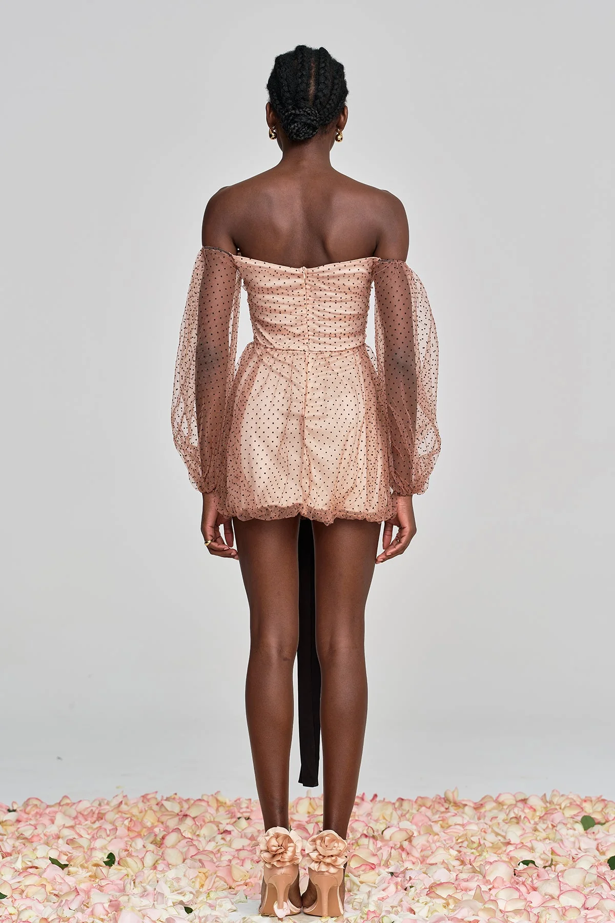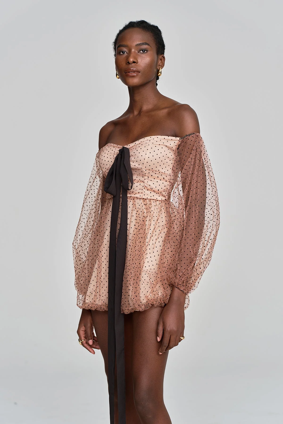 Discover the perfect blend of style and comfort with our Amittai Mini Dress. Expertly crafted from a breathable mesh dot fabric, this dress features a timeless off-shoulder design with a modern twist. The lightweight and airy material ensure both comfort and style for any occasion. Made of 50% Polyester and 50% Cotton with a slight stretch, this dress offers a gentle machine wash care routine. Elevate your wardrobe with this versatile piece. Please note, color variations may occur due to lighting in images.
