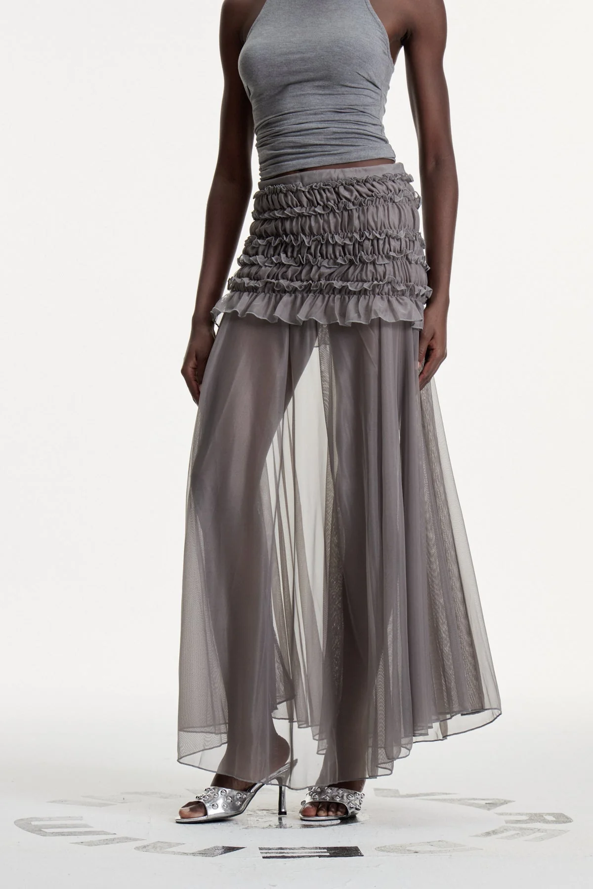 Elevate your style with the Mesh Drawstring Maxi Skirt! Crafted from lightweight mesh fabric for breathable comfort. The adjustable drawstring waist offers a customized fit. Its flowing maxi length enhances your silhouette, suitable for any occasion from casual to formal. This skirt is a versatile wardrobe essential with a subtly sheer look perfect for layering. Exuding elegance and functionality in every detail. Note: Color variations may occur due to image lighting. Available sizes: S, M, L.