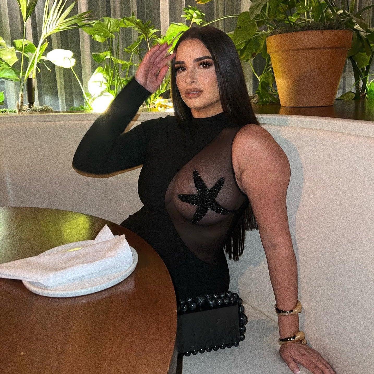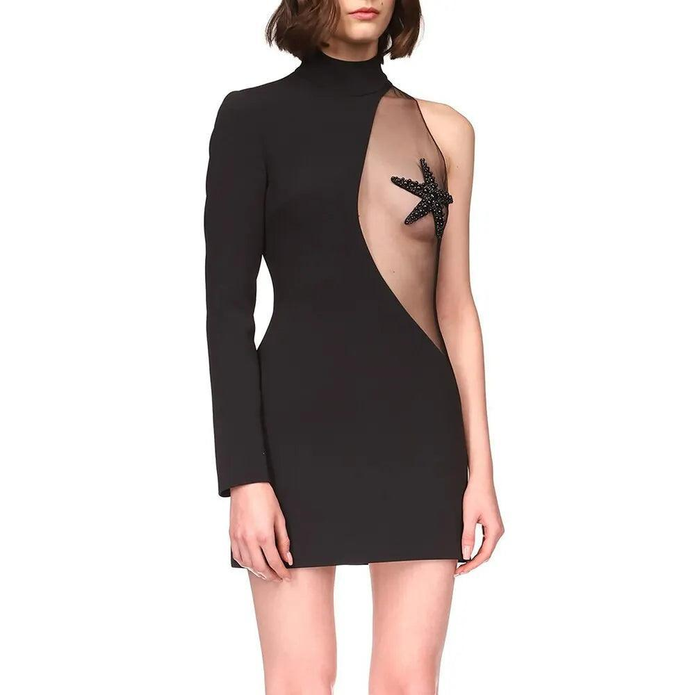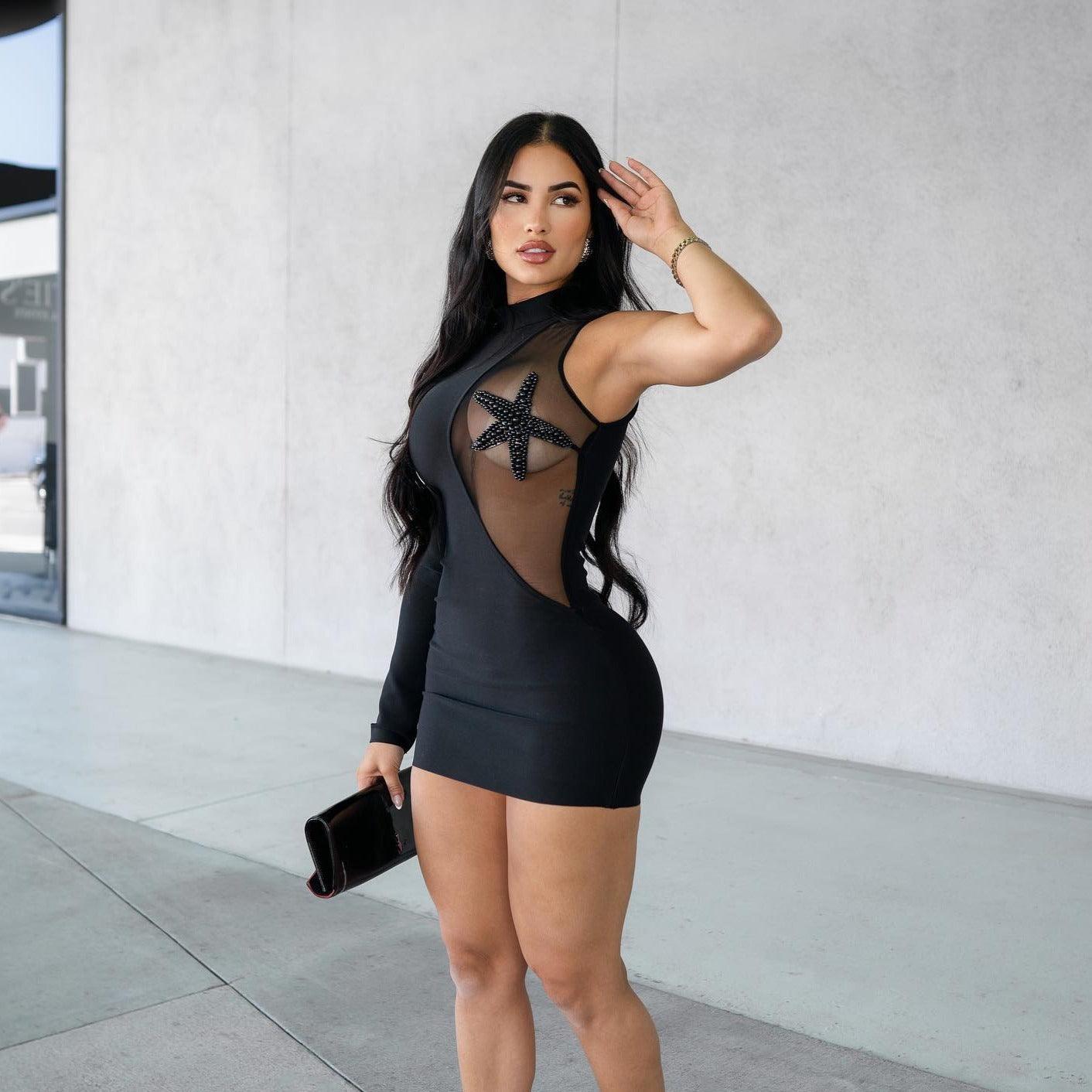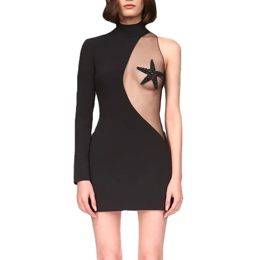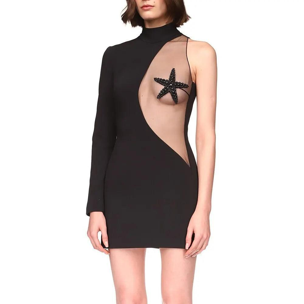 Elevate your wardrobe with this exquisite black mini dress adorned with intricate crystal starfish embellishments that bring a touch of ocean-inspired elegance. Crafted from premium mesh fabric, this dress offers a refined silhouette that is both comfortable and durable. Ideal for special occasions, it provides a sophisticated look that ensures you stand out. Pair it with our elegant satin heels featuring a diamante double bow for an added layer of sophistication. Discover versatile styling options and stay updated with the latest fashion trends. Complimentary size exchanges available.