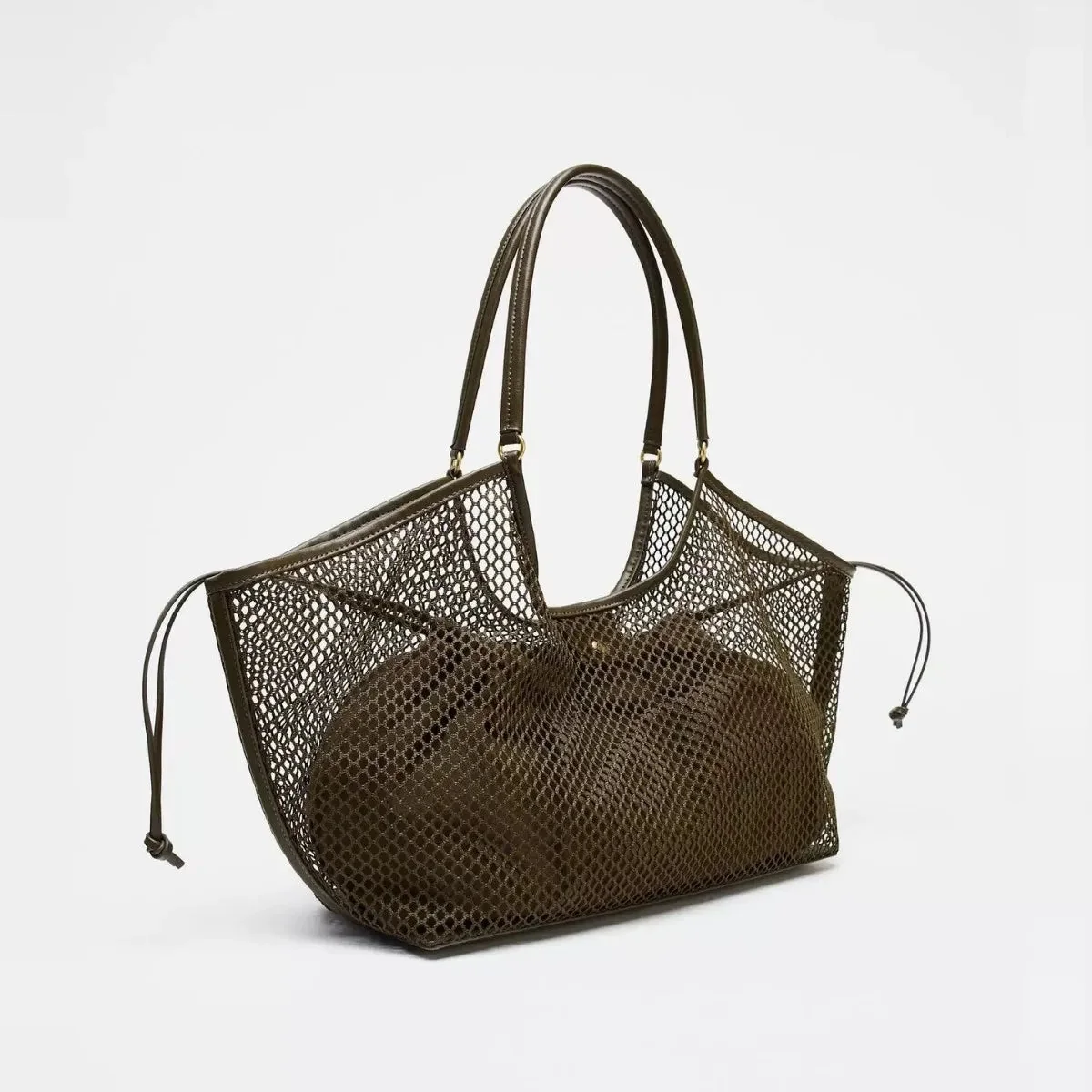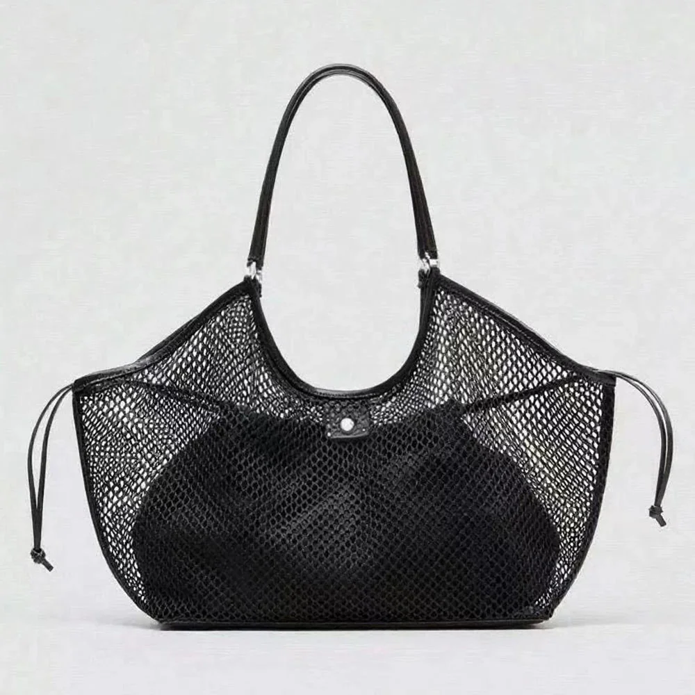 Discover the perfect blend of modern design and practicality with our Mesh Lightweight Shoulder Bag. Crafted with durable mesh material for everyday use, this bag features a spacious interior to effortlessly organize your essentials. Whether for casual outings or relaxed summer events, the comfortable shoulder strap offers versatility in style. Elevate any look with this contemporary accessory that combines chic design with functionality. Measurements: L – 50 cm / 19.7 inch, W – 14 cm / 5.5 inch, H – 26 cm / 10.25 inch. Find more styling inspiration on our Instagram @mermaidway.