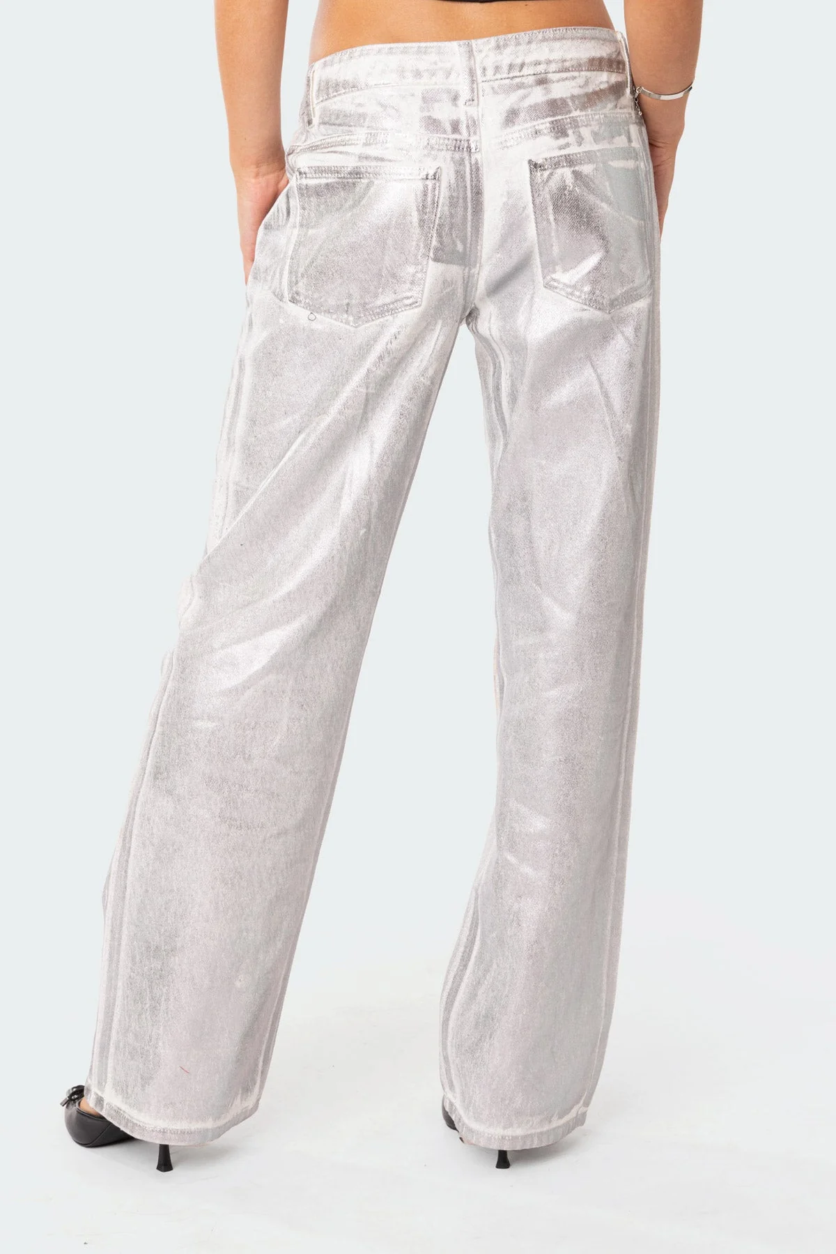Tags: Casual Denim, Evening Wear Pants, loose fit jeans, low rise denim, Metallic Silver Pants