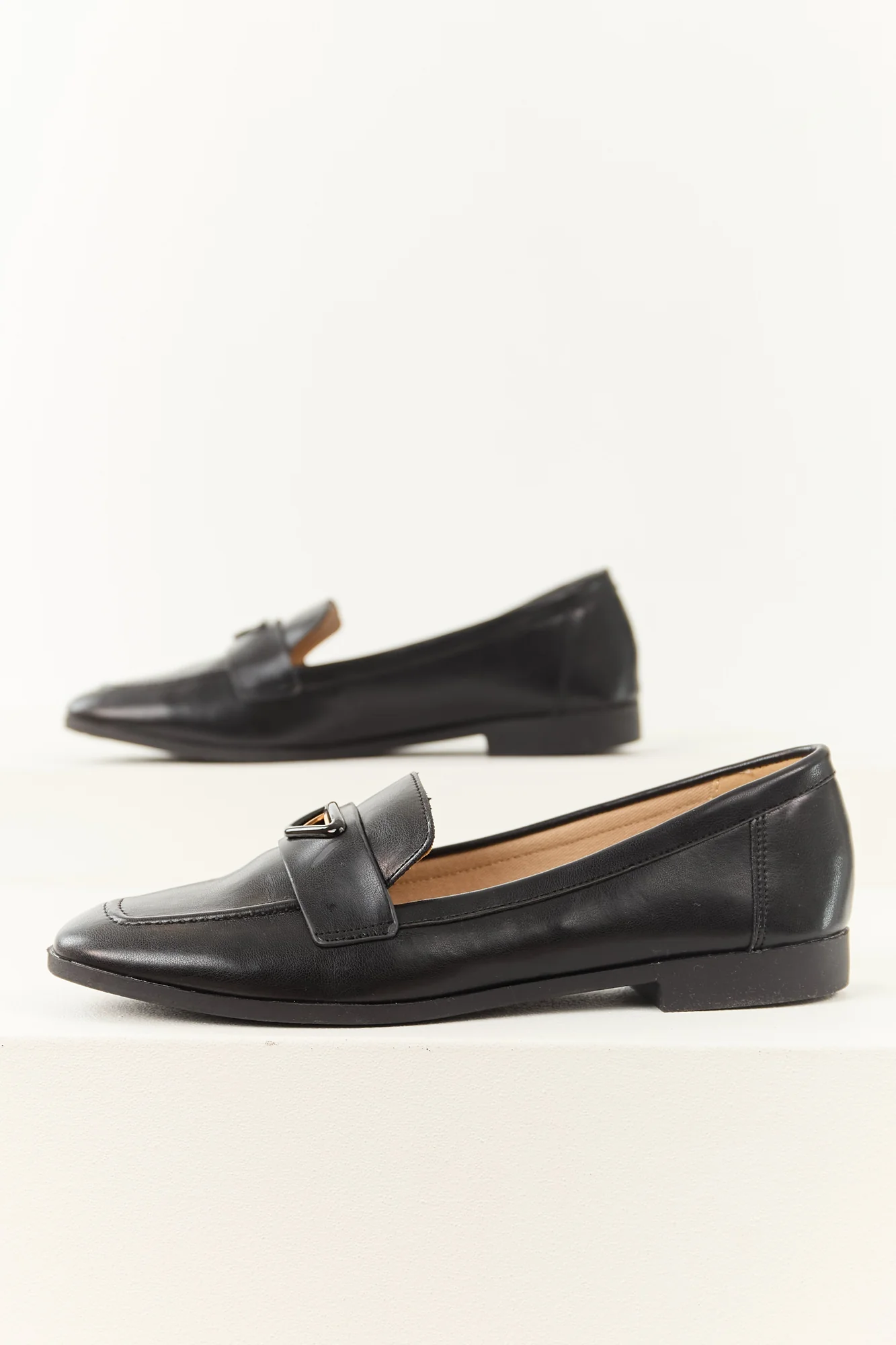 Step up your style with these modern black faux leather slip-on loafers. Featuring a sleek triangle detail, these loafers offer a contemporary look thats perfect for any occasion. Crafted from non-stretchy faux leather with a rounded square toe, 2″ shaft, 0.75″ heel, and 12.5″ circumference. Get the ideal fit with sizes ranging from 5.5 to 10.