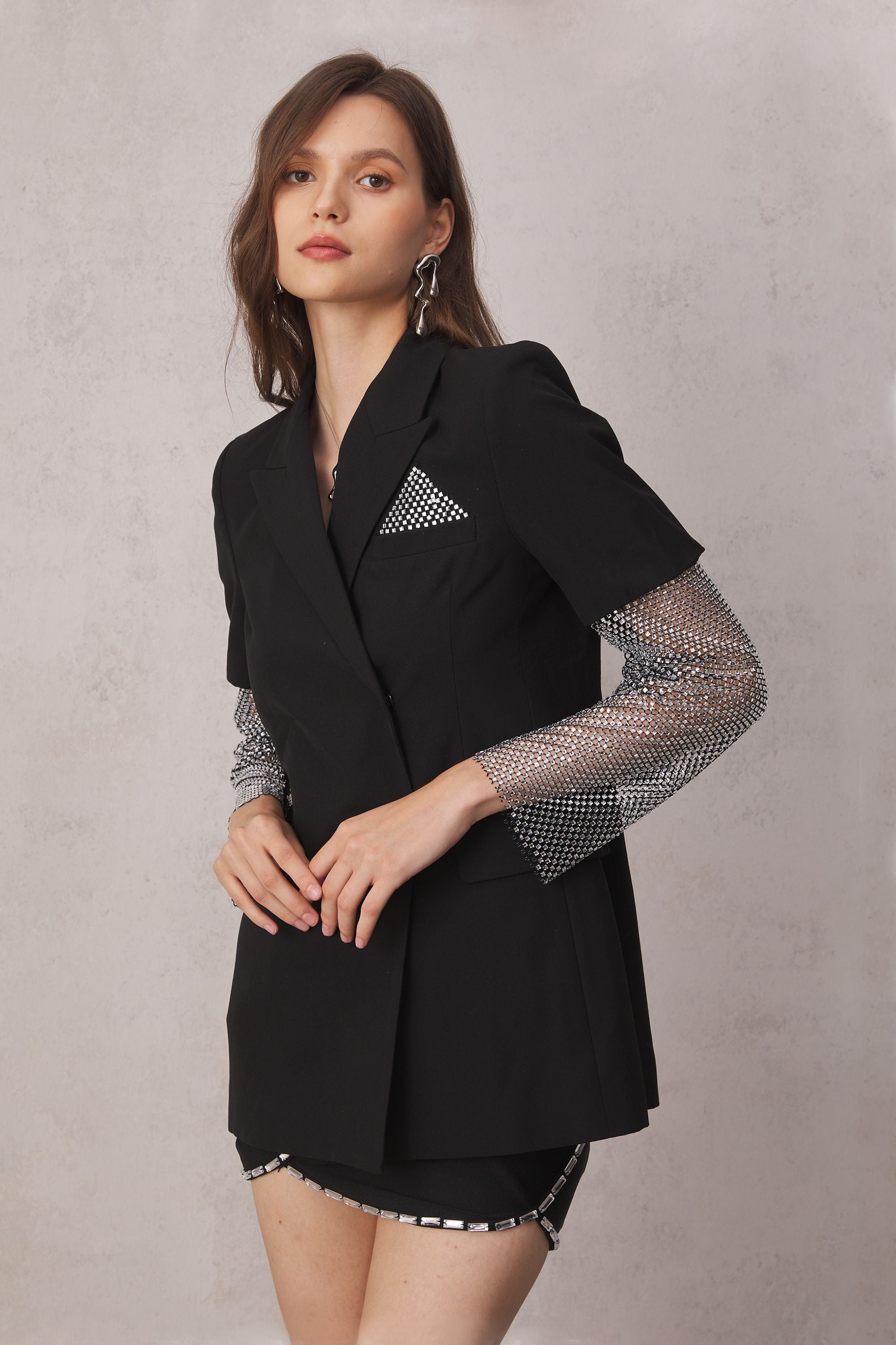 Elevate your style with the Modern Black Short Sleeve Blazer. Crafted with high-quality 100% Polyester, this blazer offers a sleek and professional look, boosting your confidence for any occasion. The non-stretch fabric and short sleeves add a modern twist to the classic design. Dry clean only. Color may vary due to lighting.