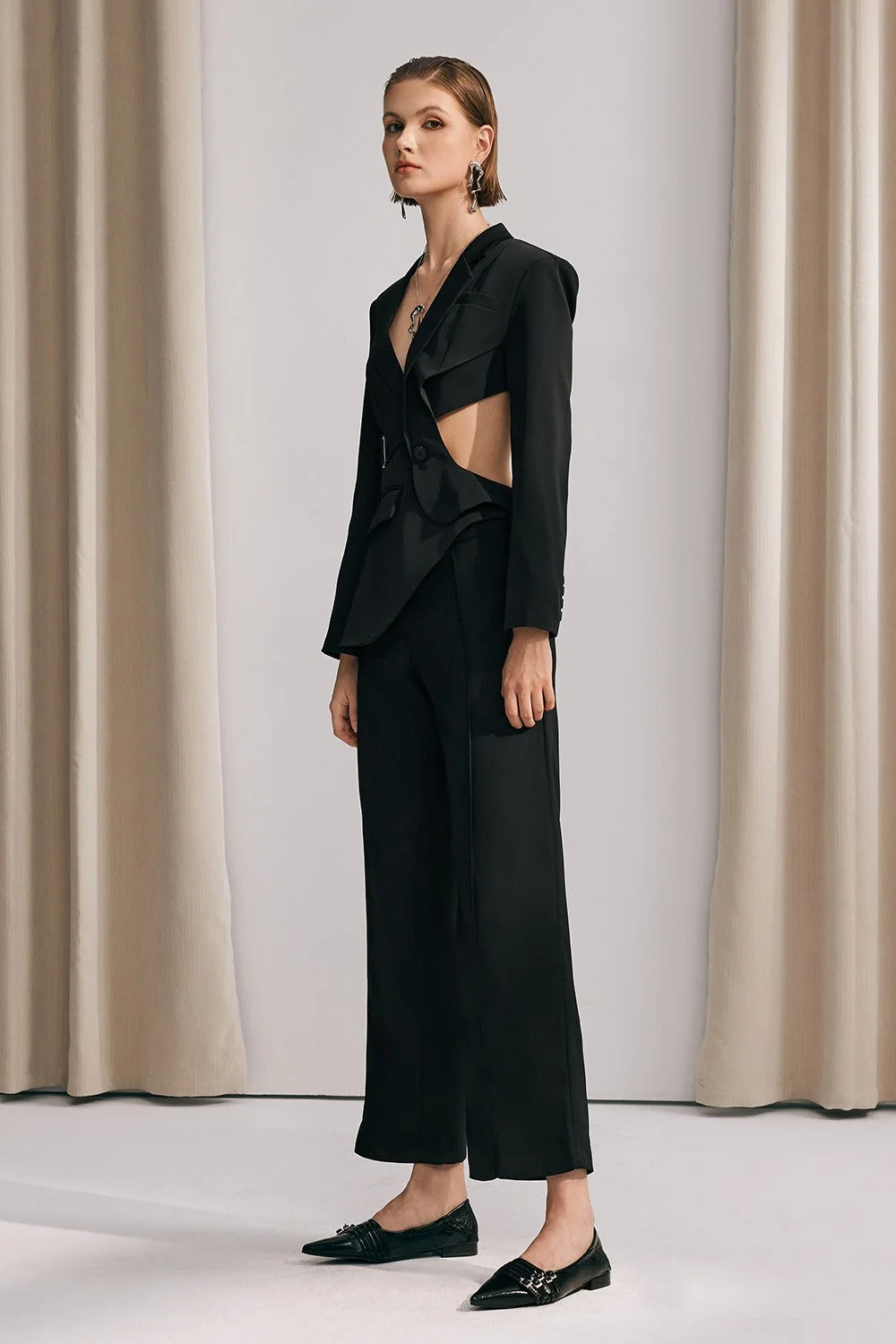 Elevate your style with the Modern Cutout Blazer featuring a chic asymmetric design. Crafted from 100% Polyester for a sophisticated touch, this blazer is perfect for adding a contemporary edge to any outfit. Expertly tailored with attention to detail, this non-stretch blazer offers a versatile addition to your wardrobe. Experience the ultimate blend of elegance and modernity with this must-have piece. Color may vary slightly due to lighting effects in images. Gentle machine wash recommended.