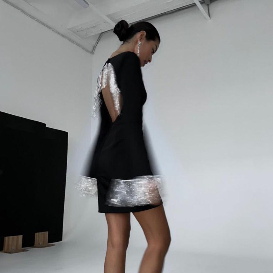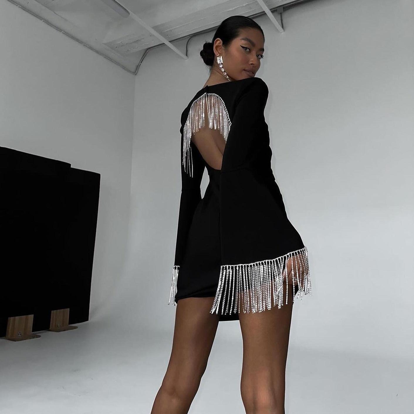Elevate your style with our Modern Elegance Open Back Mini Dress, perfect for any occasion. This sleek silhouette exudes confidence and allure, while the diamond chain accents add a touch of sophistication. The open back design lends a bold and captivating edge to your look. Crafted from premium materials for lasting comfort, this dress guarantees durability and style year-round. Explore our Instagram @mermaid_way for endless fashion inspiration and get this must-have piece to infuse effortless charm into your wardrobe. Enjoy a complimentary size exchange if needed.