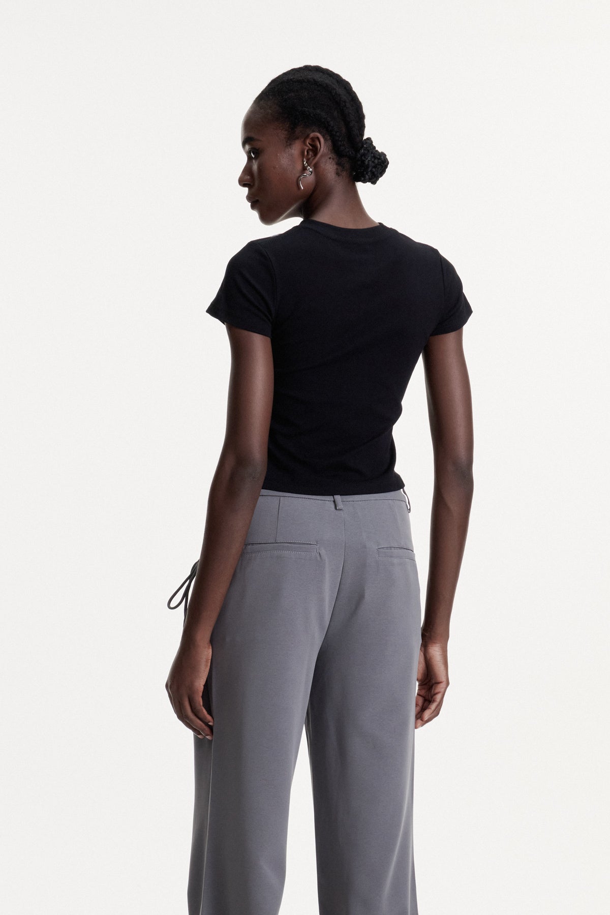Elevate your style with our Modern Printed Bodycon T-Shirt in Black. Crafted from a premium stretch fabric, this T-shirt offers a tailored fit that accentuates your natural shape. Experience exceptional comfort and durability with expert craftsmanship that ensures long-lasting quality. The sophisticated printed design adds a contemporary flair, perfect for versatile styling in any modern wardrobe. Whether you layer it or wear it solo, this stylish T-shirt is ideal for confident everyday wear. Stretch Factor: Non-Stretch. Care Instructions: Gentle machine wash. Actual product color may vary slightly due to lighting during photography.