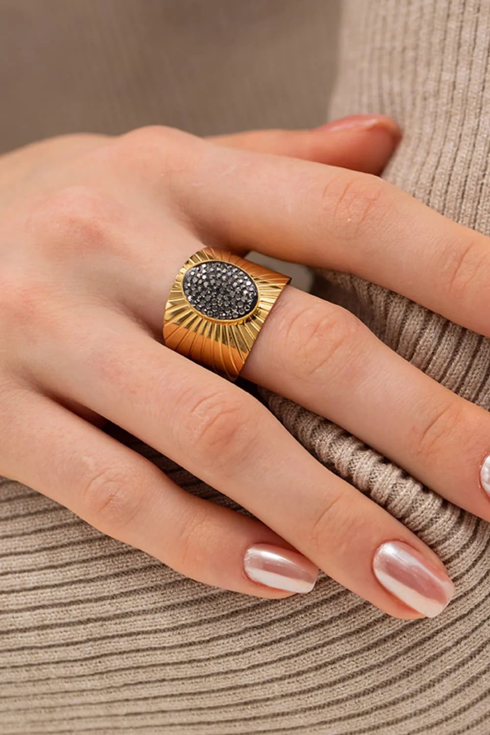 Discover the stylish Modern Stainless Steel 18K Gold Plated Open Ring in both White and Black variations. Crafted for durability and elegance, this ring is a perfect addition to your jewelry collection. Made with care to offer lasting shine and quality, avoid wearing during exercise to maintain its luster. Imported with precise measurements – Diameter: 0.85 in (2.2 cm), Width: 0.74 in (1.88 cm), Weight: 0.2 oz (5.7 g)