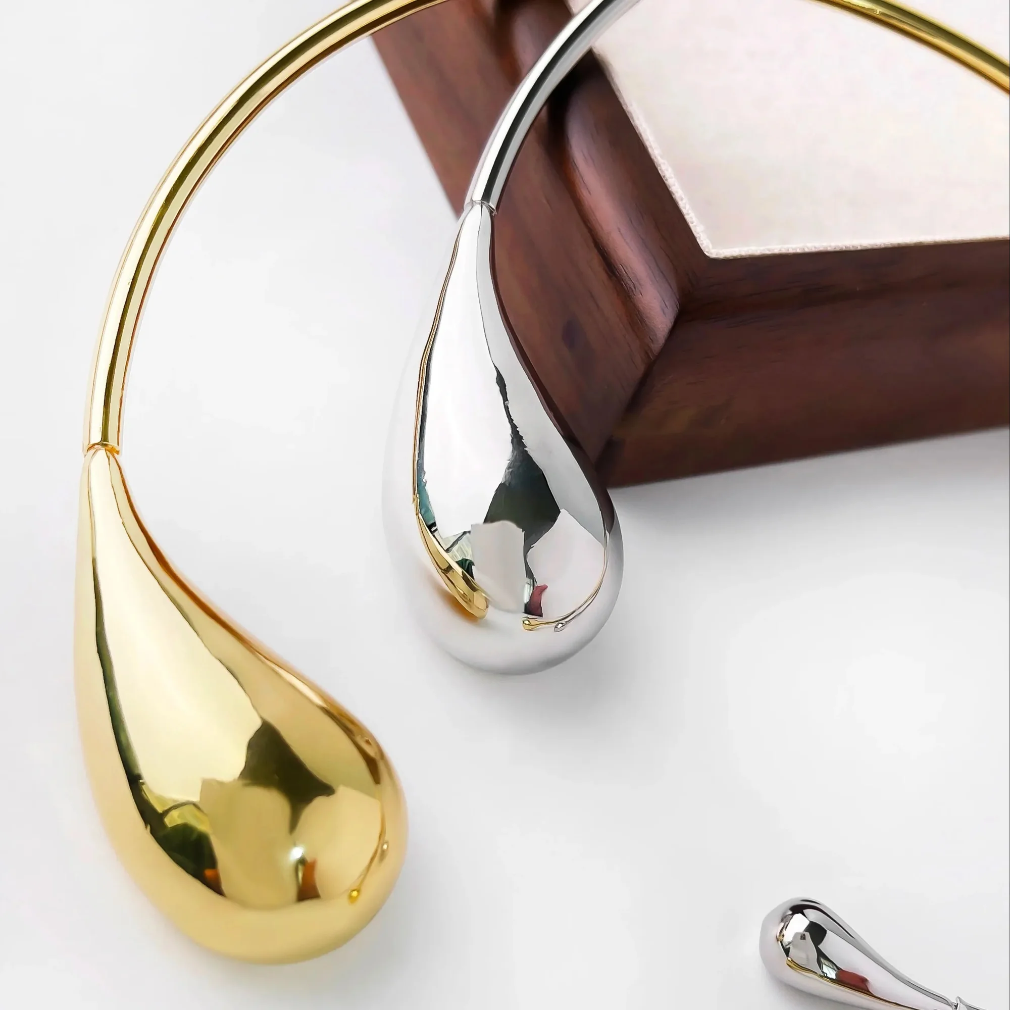 Elevate your style with the Modern Water Drop Necklace available in silver or gold. This statement piece features a unique open design with a water drop shape, crafted from high-quality materials to maintain its shine and resist tarnishing. Comfortable for all-day wear, this versatile necklace is perfect for both casual and formal looks. Layer it to make a bold impact. Experience easy wearing with a secure fit. Must-have for accessory enthusiasts. Measurements: L – 42cm, Weight – 43.6g. Discover outfit ideas on Instagram @mermaidway.