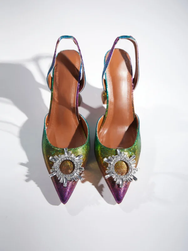 Elevate your look with our Avalira Rhinestone Slingback Flared Heels, featuring dazzling rhinestones, a comfortable slingback design, and eye-catching flared heels. Handcrafted to order for a glamorous touch that will turn heads at special events. Please consult our size chart for accurate sizing. Orders ship within 7-15 business days.