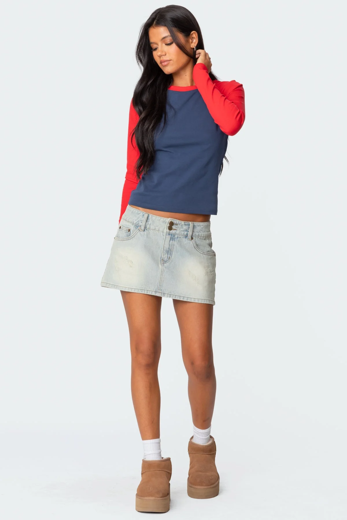 Elevate your style with our Navy Red Raglan Sleeve T-Shirt for men. Crafted from a comfortable cotton-spandex blend, this tee features long sleeves and a contrast raglan design. Perfect for casual outings or lounging. This model is wearing size S and is 58 tall. Care instructions: Machine wash at max 30ºC, do not bleach, tumble dry low, iron max 110ºC, do not dry clean.