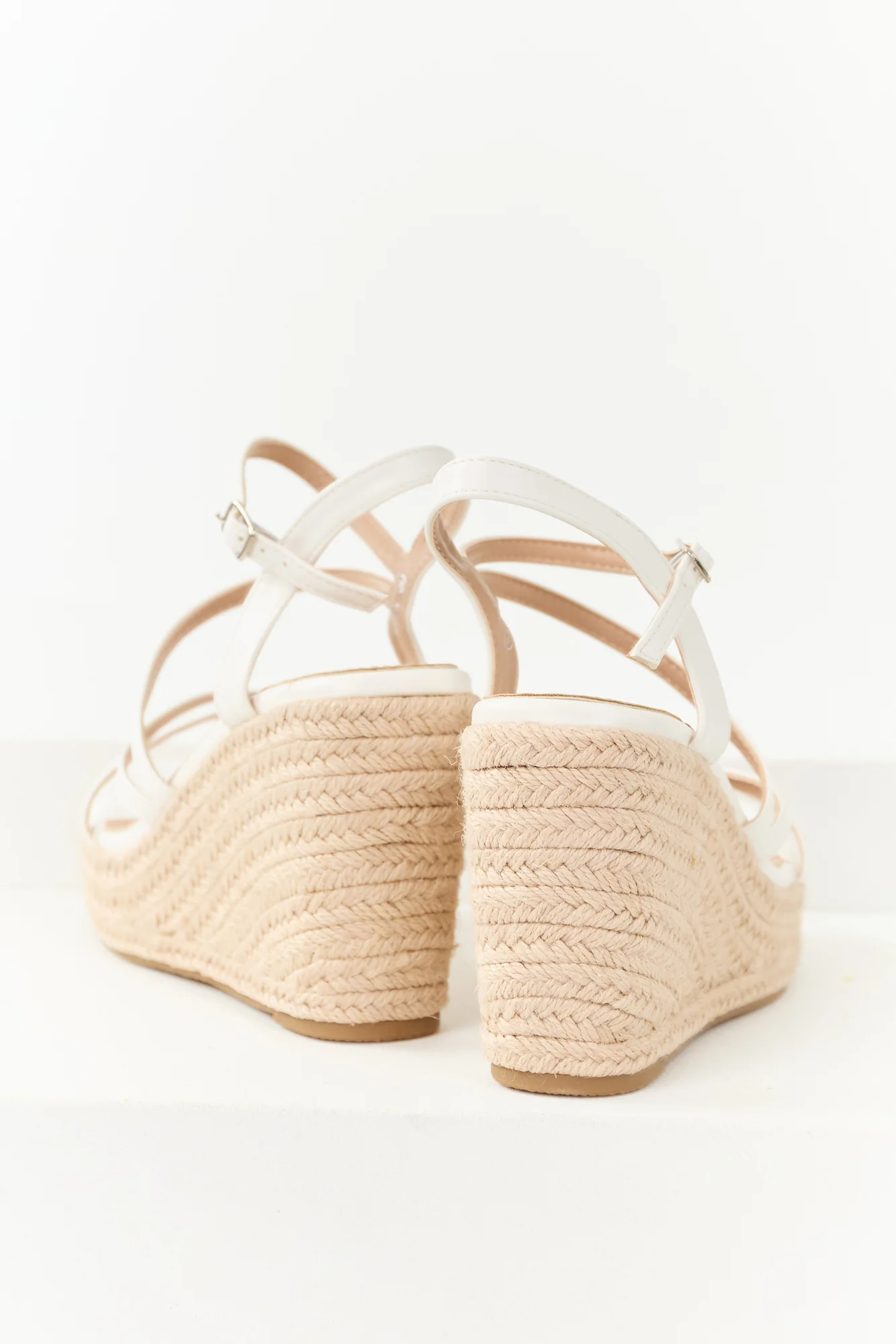 Experience a fashionable lift with these chic strappy espadrille wedges. Crafted from non-stretchy faux leather, they feature an adjustable ankle strap, square toe, slightly cushioned insole, 6.5″ shaft, 1.5″ platform, 4.25″ heel, and 10″ circumference. Imported.