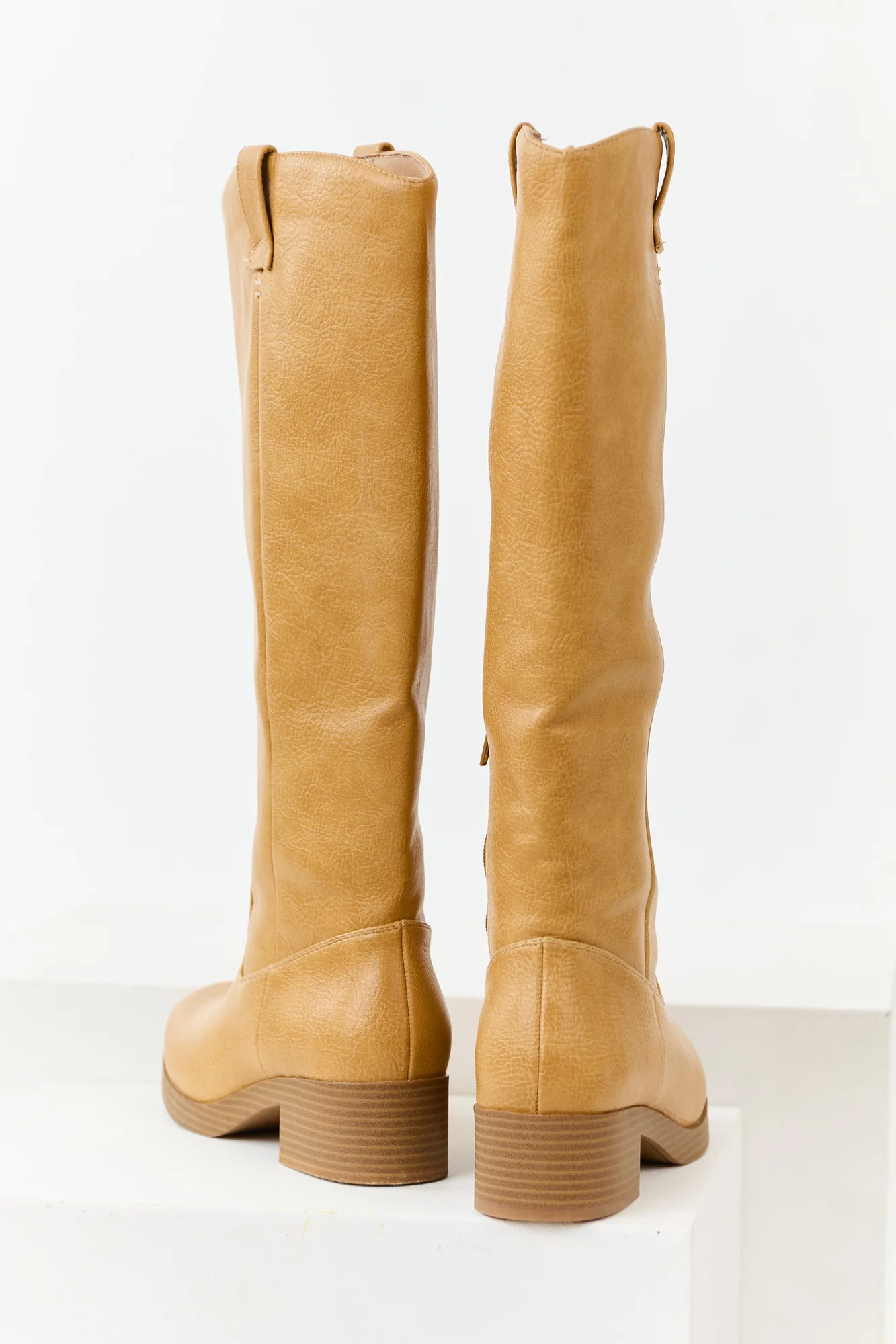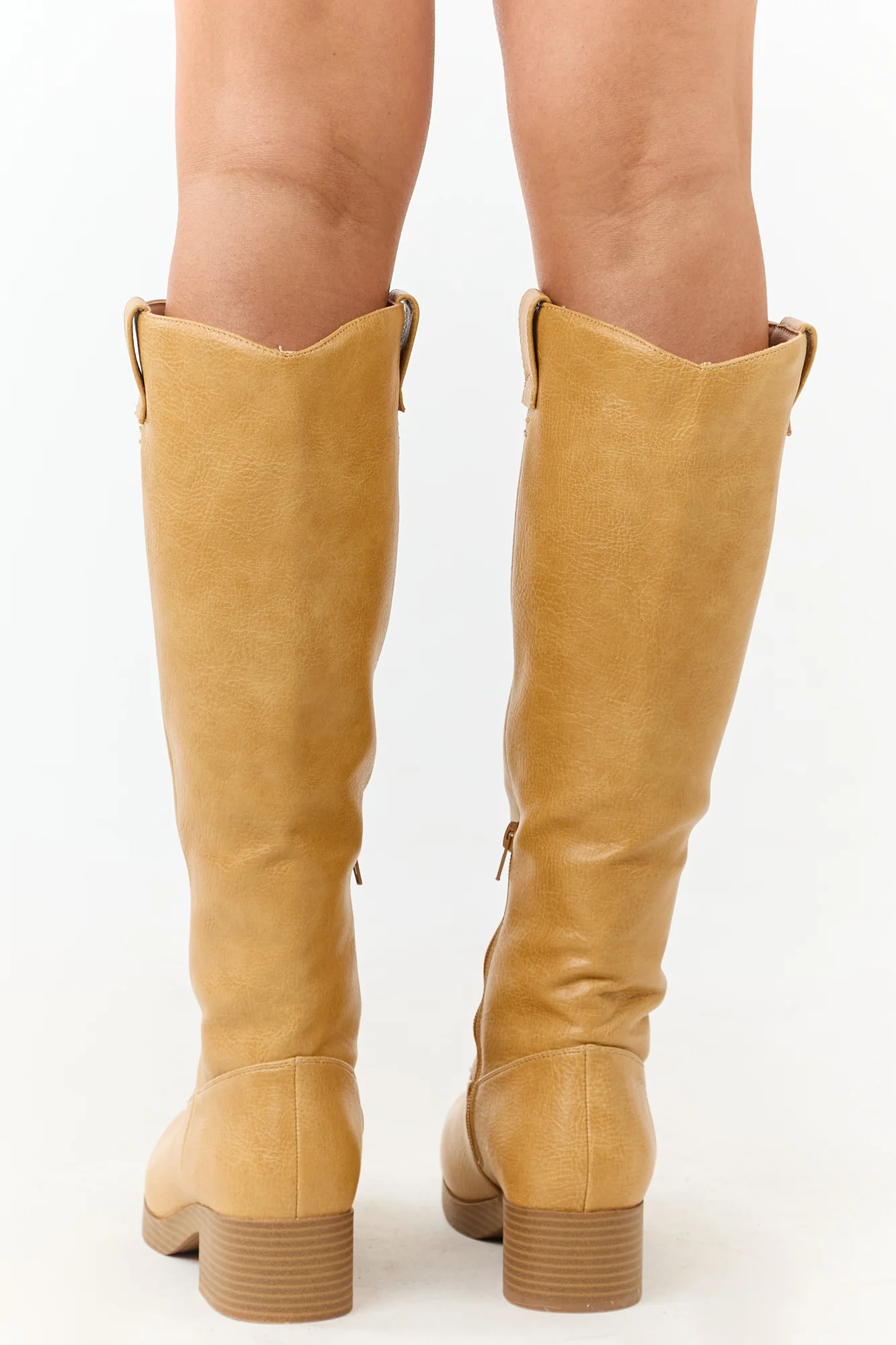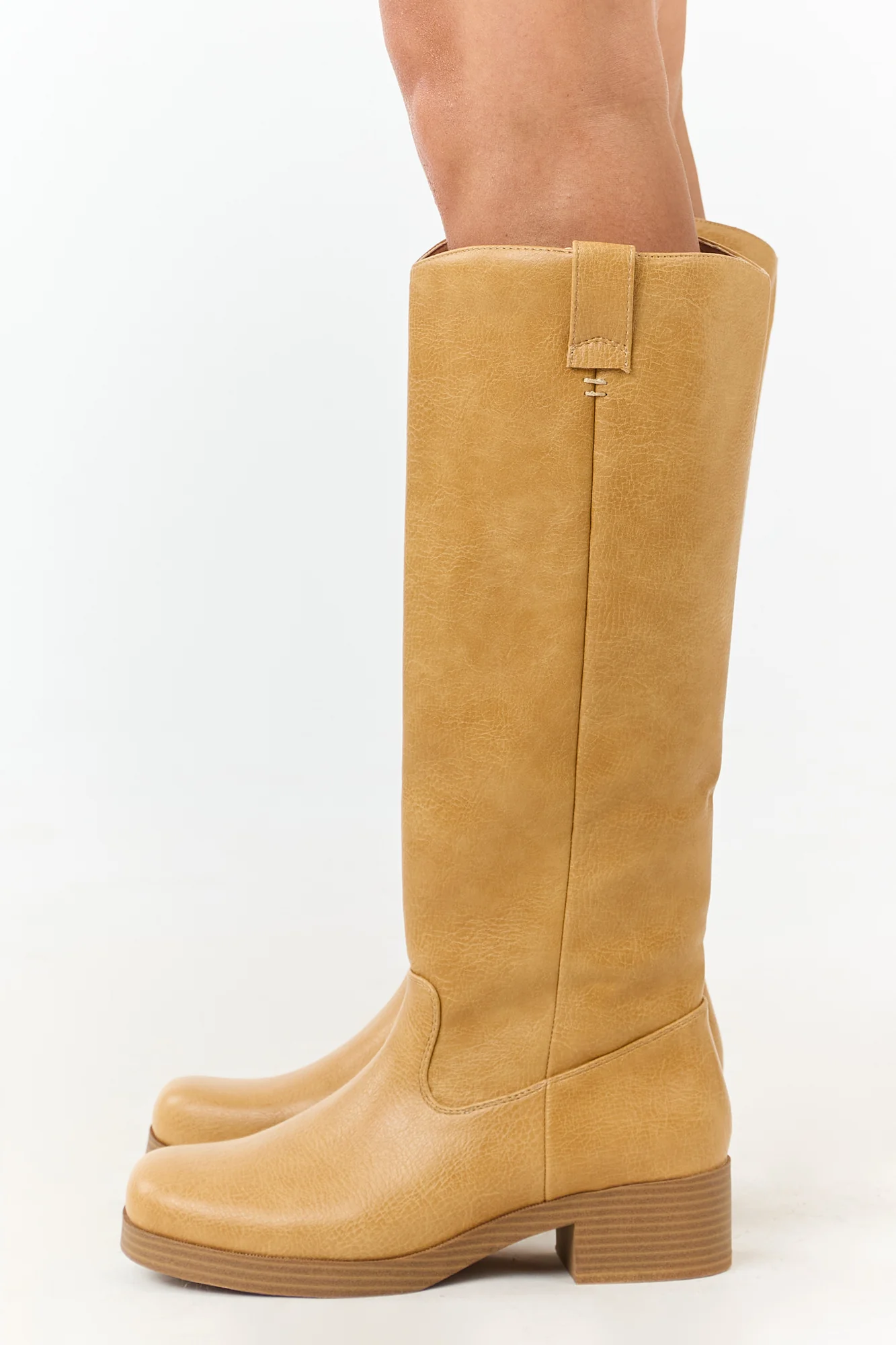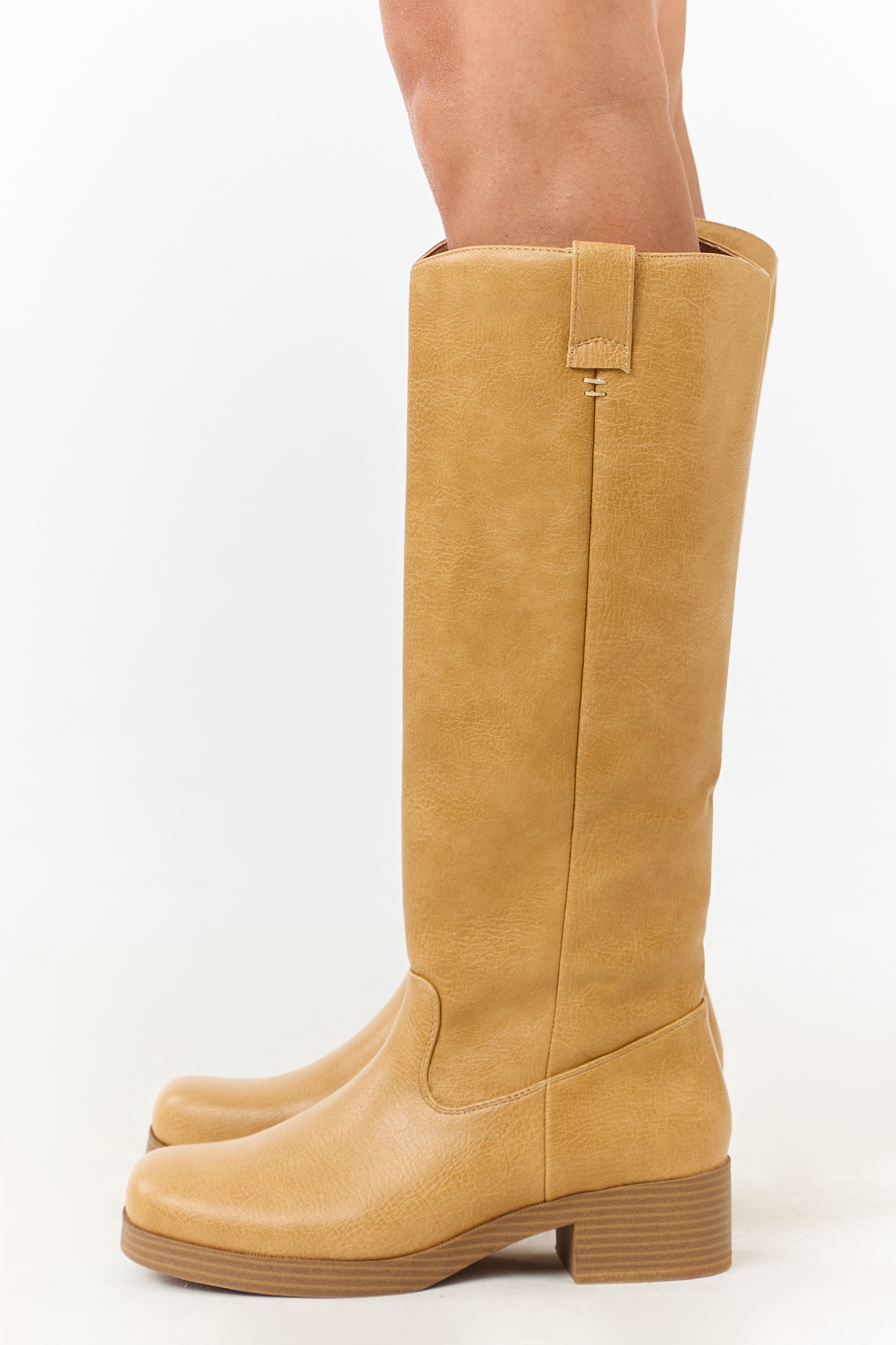 Elevate your style with these stunning tall boots in a rich copper hue. Crafted from non-stretchy faux leather, they feature a timeless silhouette perfect for the fall-to-winter transition. Complete with a side half zipper, rounded toe, short block heel, pull tabs, and measuring 16.5″ shaft and 15″ circumference. Imported.