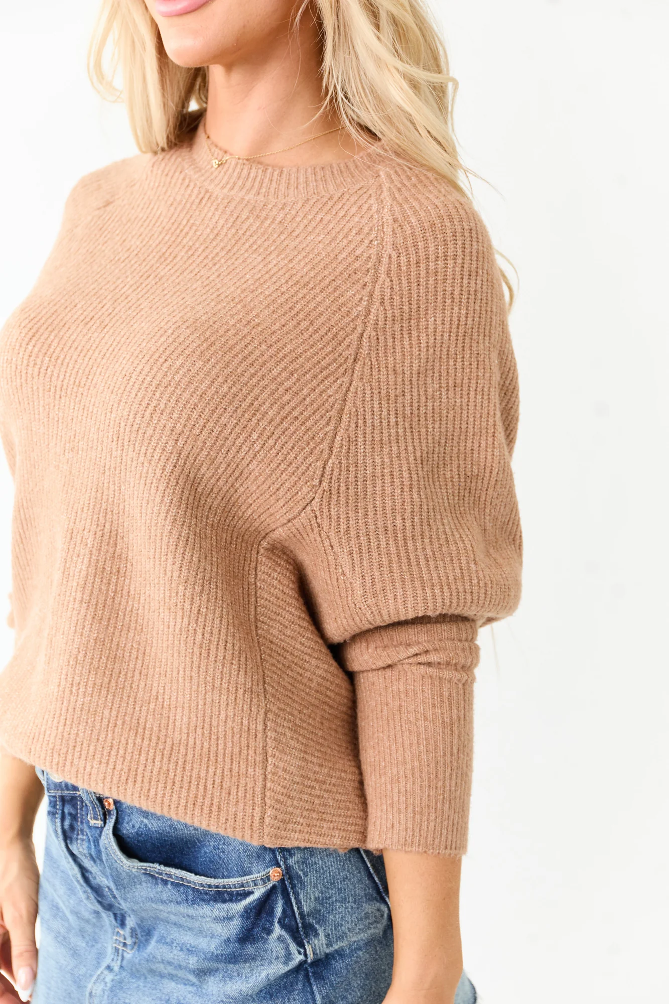 Indulge in comfort and style with our oversized ribbed knit sweater in a neutral tone. Crafted for a relaxed fit, this sweater features long dolman sleeves and stretchy, soft knit fabric for a snug feel. Perfect for creating a classic fall look when paired with your favorite denim. Available in sizes S, M, and L. Bust: 50, 53, 56. Length: 30. Sleeve Length: 26, 27, 28. Material: 90% Polyester, 6% Spandex, 4% Acrylic. Imported. Model is wearing a size Small. Model Profile: Size 3, Height 57, Bust 35, Waist 26.