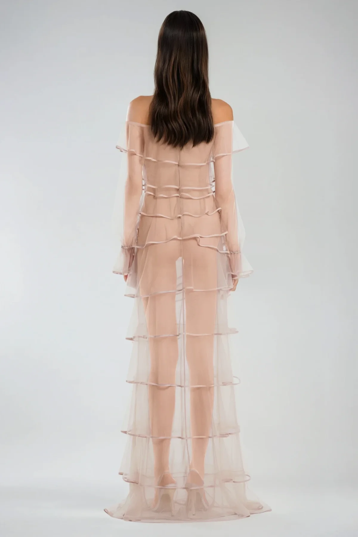 Indulge in the elegance of the Nude Floral Ruched Off-Shoulder Maxi Dress . This sophisticated dress features delicate floral ruching for a flattering fit that exudes charm at any formal event or daytime affair. The flowing fabric enhances movement, while the detailed ruching adds texture and visual interest, ensuring you turn heads with understated grace. Crafted for comfort and style, this dress is a chic essential that blends sophistication with romantic allure. *Stretch Factor: Non-Stretch* *Care Instructions: Gentle machine wash* Please note that color may vary slightly due to lighting in images.