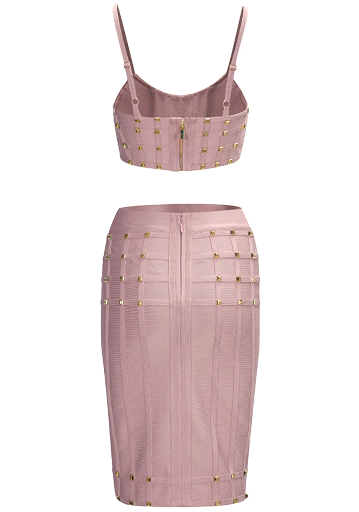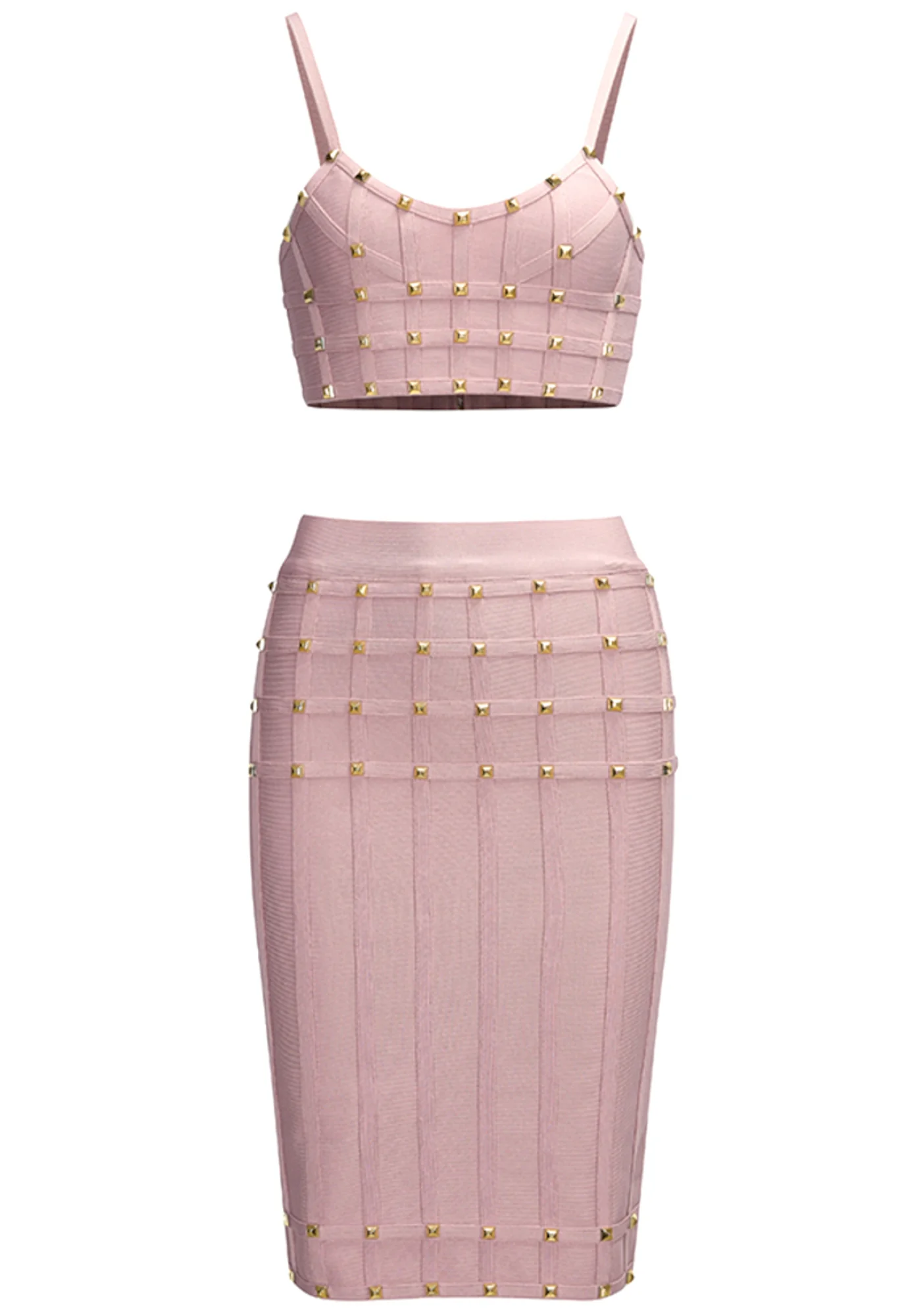 Embrace elegance with our Nude Pink Studded Two Piece Dress in knee-length design. Made from a luxurious blend of 90% Rayon, 9% Nylon, and 1% Spandex, this dress features a flattering V-neck, sleeveless style, studded detailing, and adjustable spaghetti straps. The high-quality rayon offers anti-wrinkle properties, vibrant colors, and exceptional durability. Experience the perfect fit with high elasticity and YKK zipper for reliable closure. Carefully crafted for longevity with delicate sewing and hemming. Dry clean only for lasting beauty. Please note that the actual color may vary slightly from the images due to lighting.