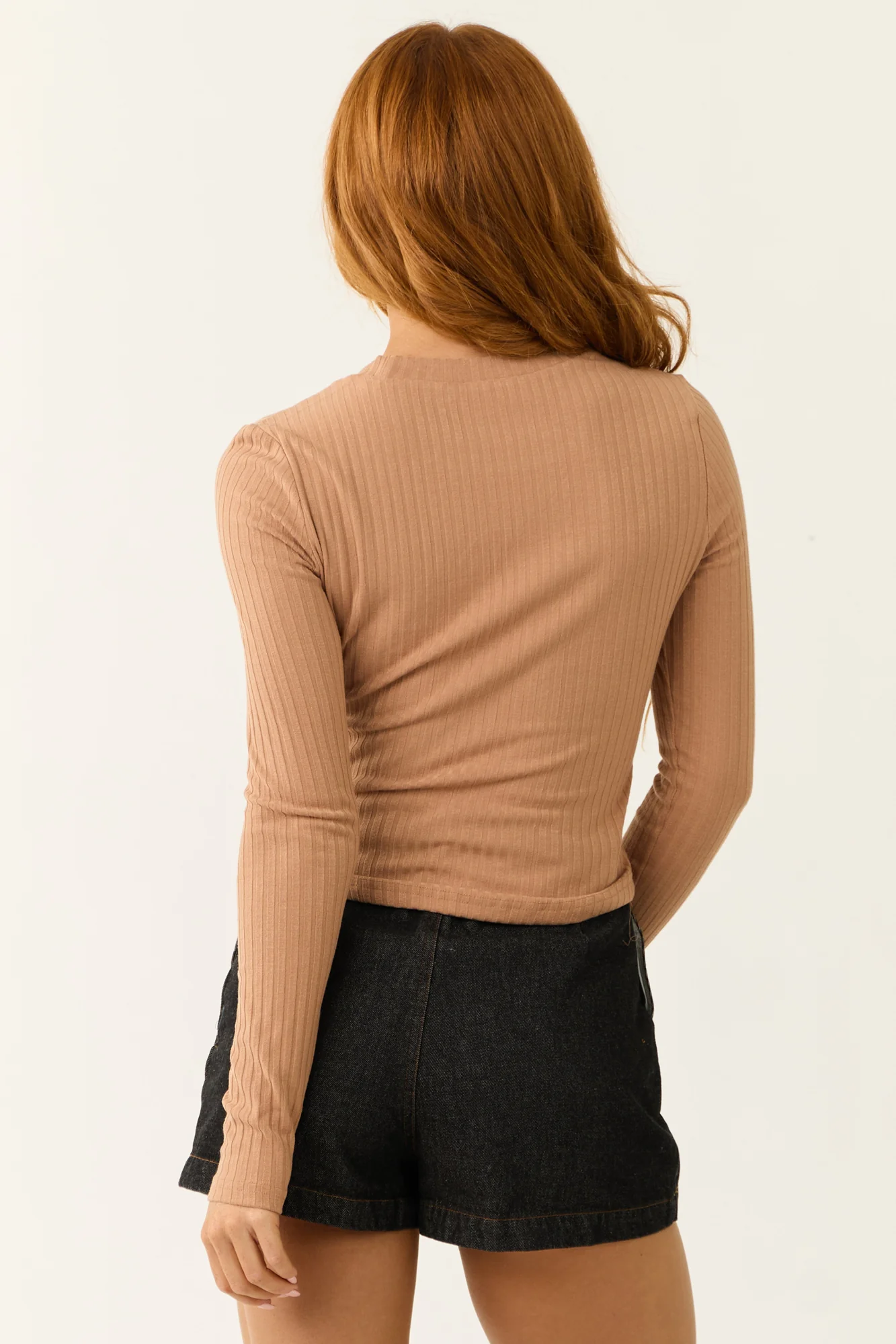 Indulge in the sophisticated charm of our Nude Ribbed Knit Long Sleeve Corset Top. This stretchy knit top features underwire support, round neckline, and elegant ribbed trim for a chic and cozy fit. Unlined for breathability. Care Instructions: Hand wash with cold water, do not bleach, line dry, iron low. Available in sizes XS, S, M, L, XL. Model is wearing a size Small. Ideal for pairing with skirts or jeans for a stylish, versatile look.