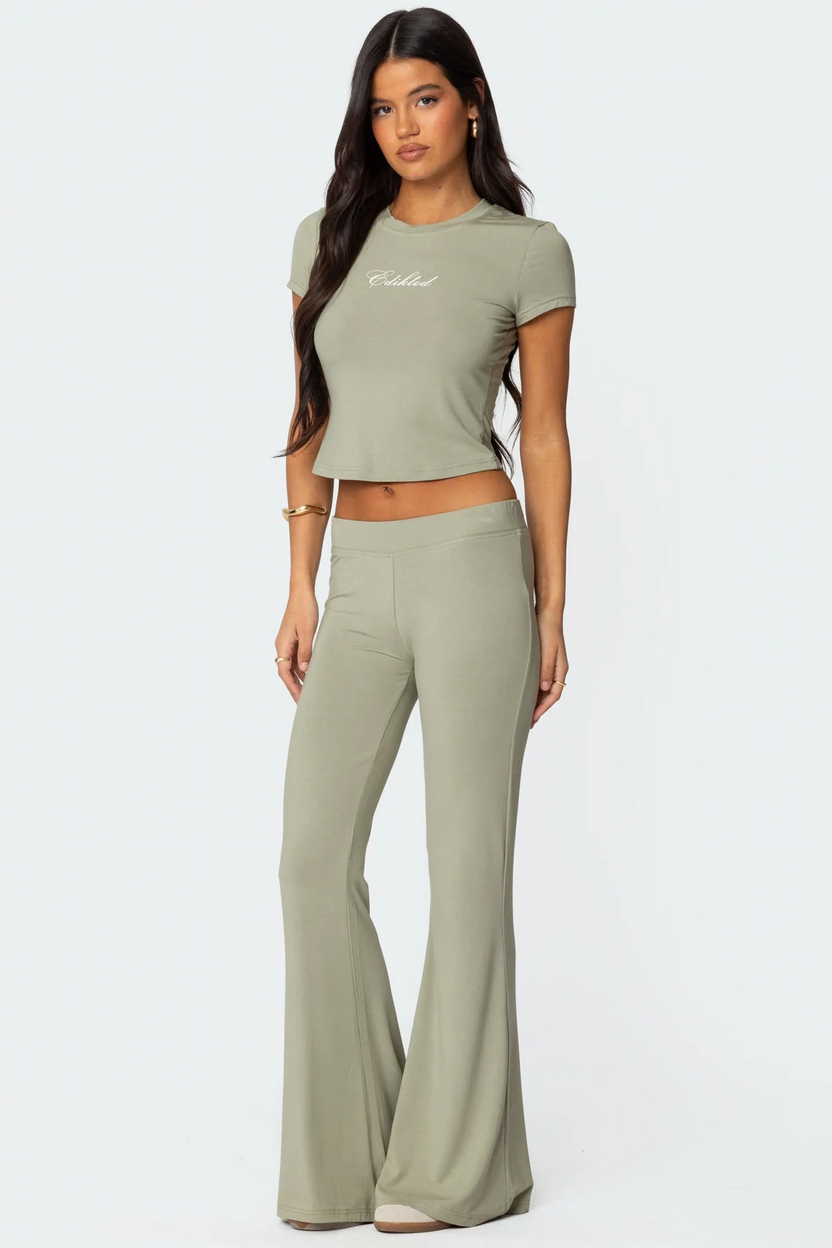 Indulge in comfort with our Olive Loungewear Graphic T-Shirt Set made of Rayon and Spandex. This matching set includes a stylish t-shirt featuring graphic text. Perfect for everyday wear, this set is machine washable for easy care. Available sizes: XS, S, M, L, XL.