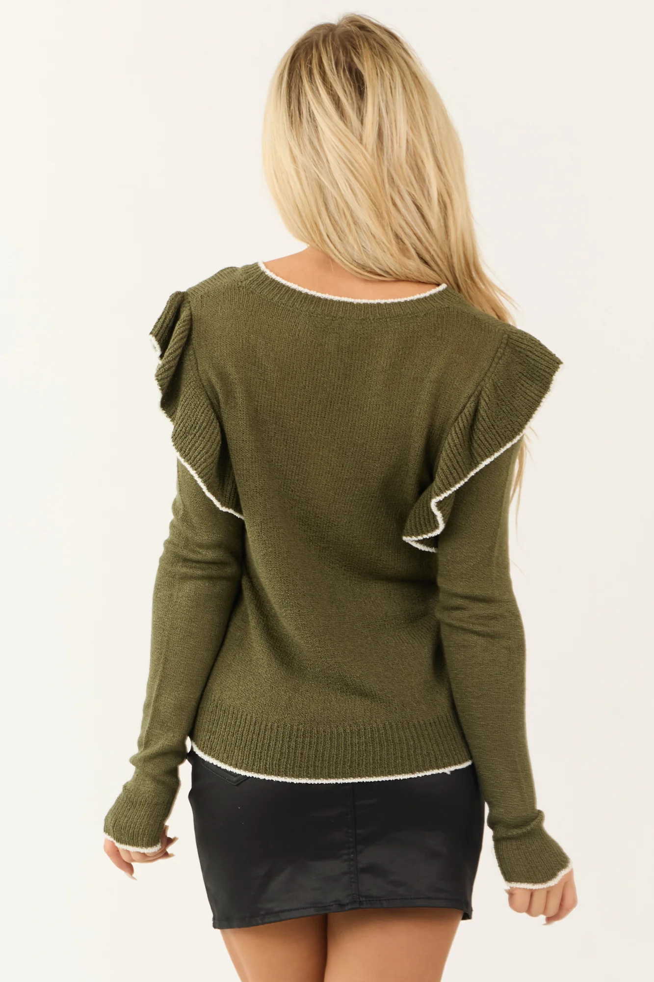 Stay stylish and comfortable with our Olive Ribbed Knit Long Sleeve Top. This top features a stretchy ribbed knit fabric with off-white trim details, perfect for any occasion. The banded trim adds a trendy touch, and the top is available in sizes S, M, L, and XL. Made of 100% Acrylic, this top is both cozy and chic. Care instructions: Hand wash cold, do not bleach, hang or line dry. Model is wearing a size Small. Model #1 Profile: Size 1, Height 57″, Bust 34″, Waist 26″.