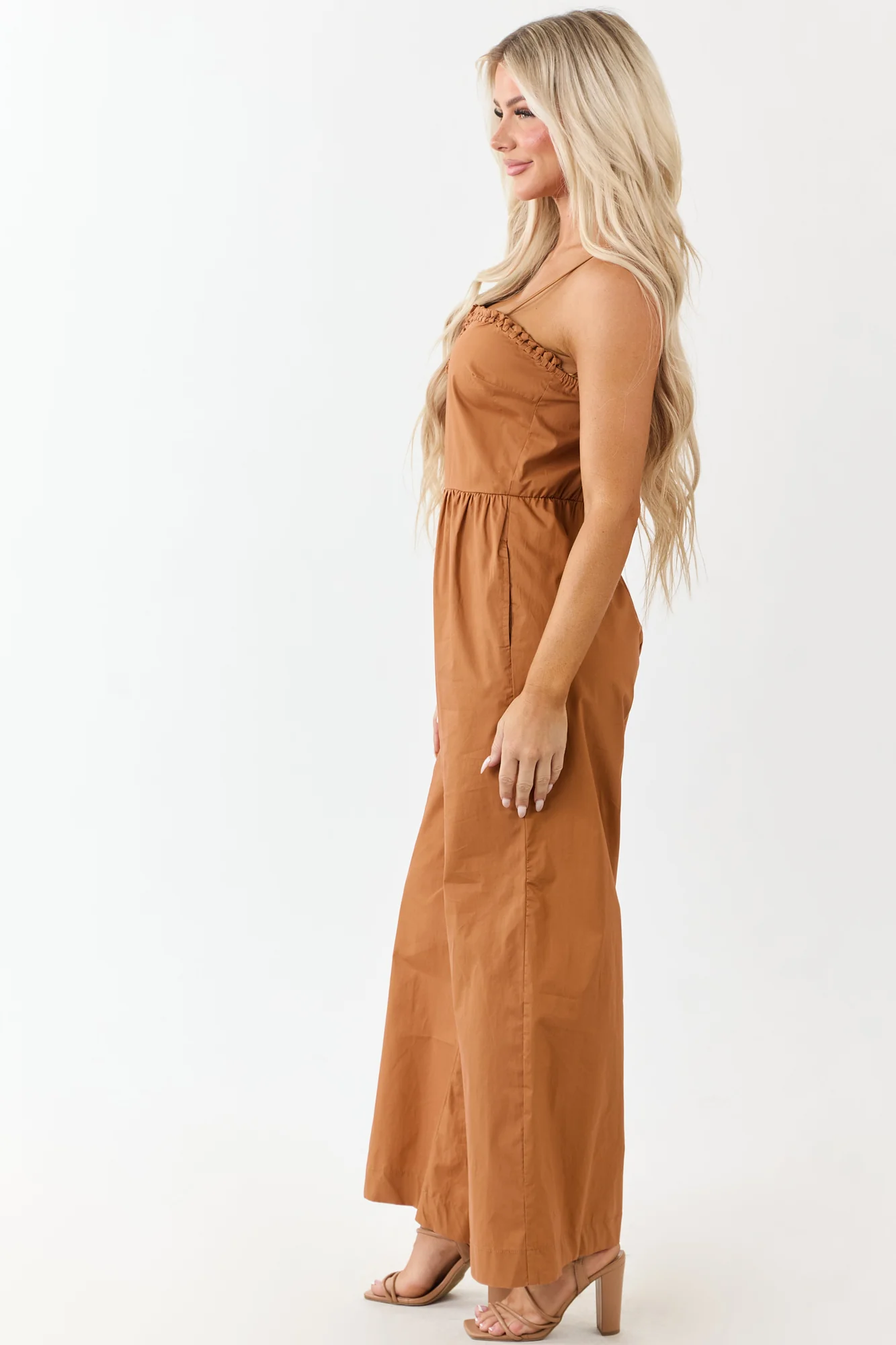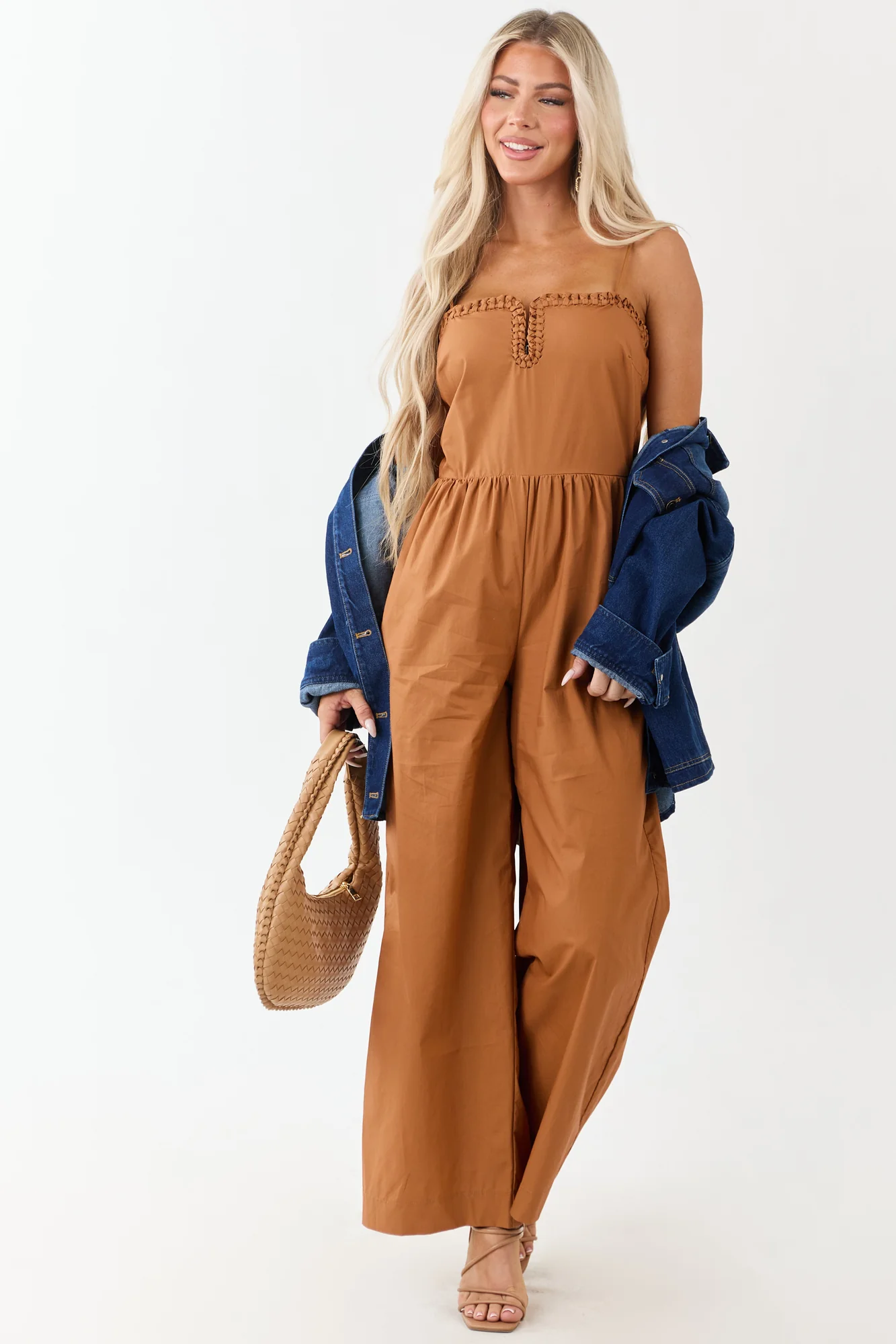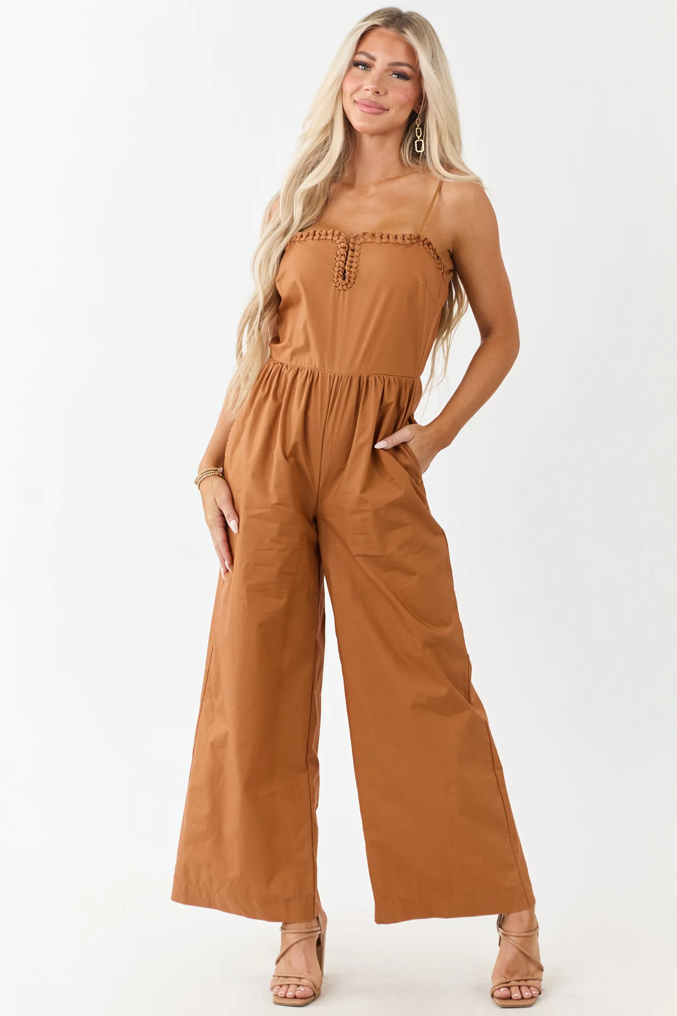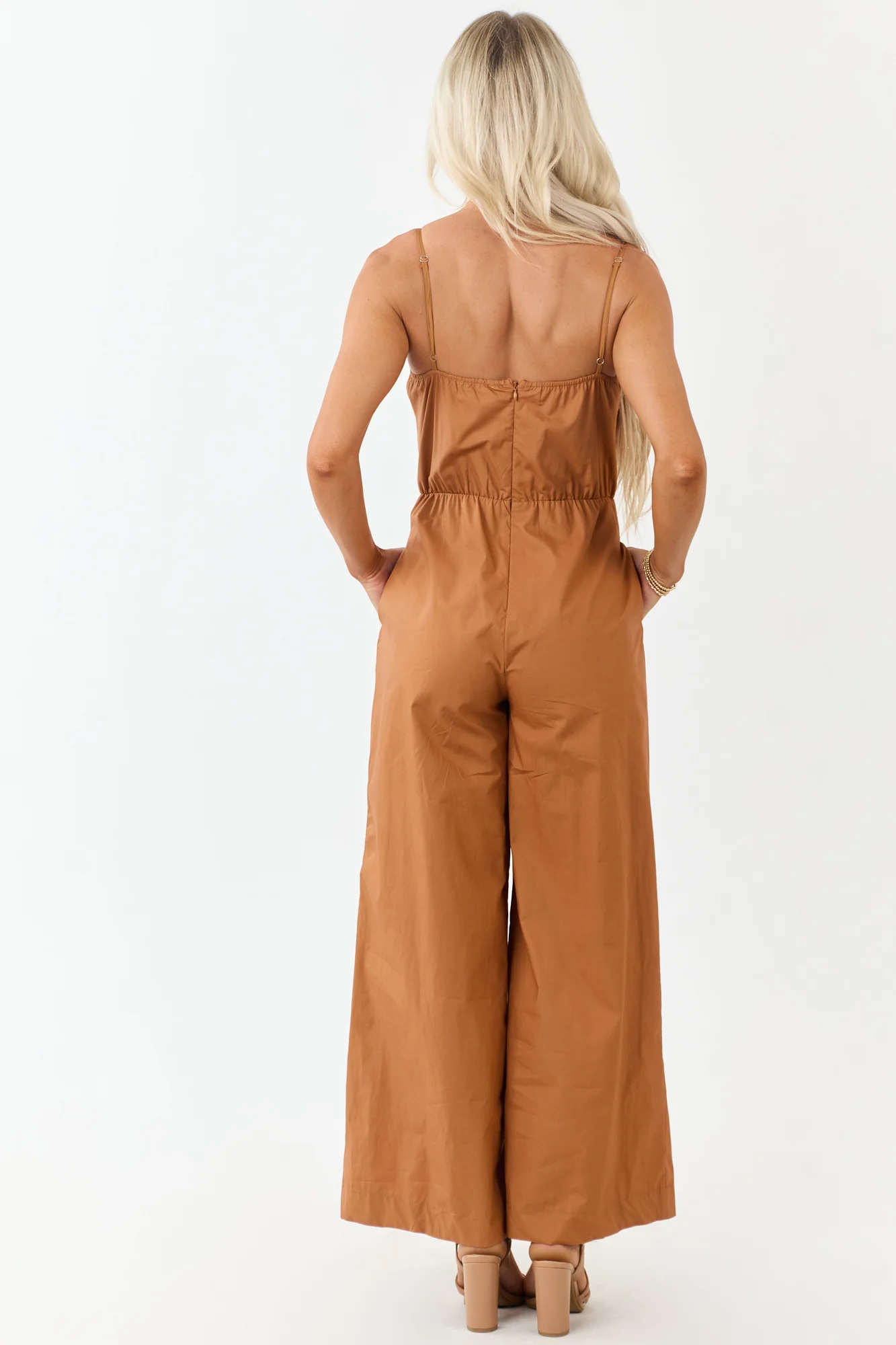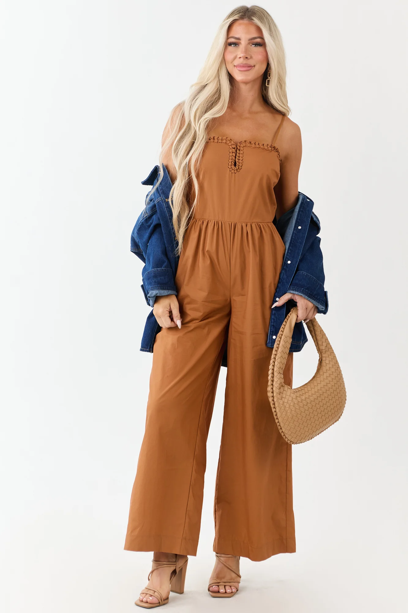 Upgrade your wardrobe with this statement-making Orange Cotton Wide Leg Jumpsuit. This breezy jumpsuit features a notched neckline, adjustable spaghetti straps, and side pockets for added convenience. Made of 100% cotton with a partial lining, it offers both style and comfort, making it perfect for any occasion. The jumpsuit showcases a bold silhouette and natural vibes, ensuring a true fit with forgiving waist. Size specs are available, ensuring you find the perfect match.