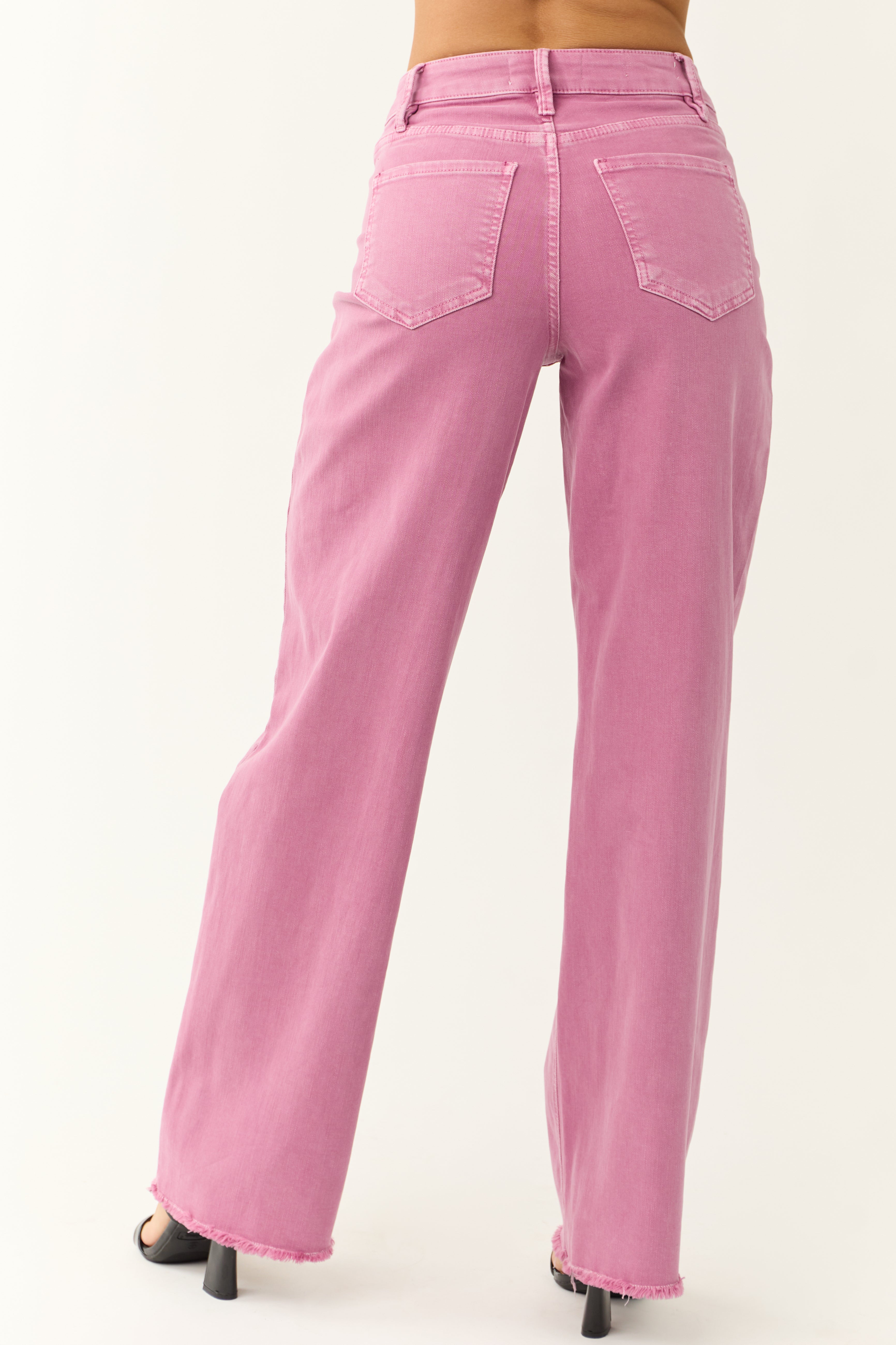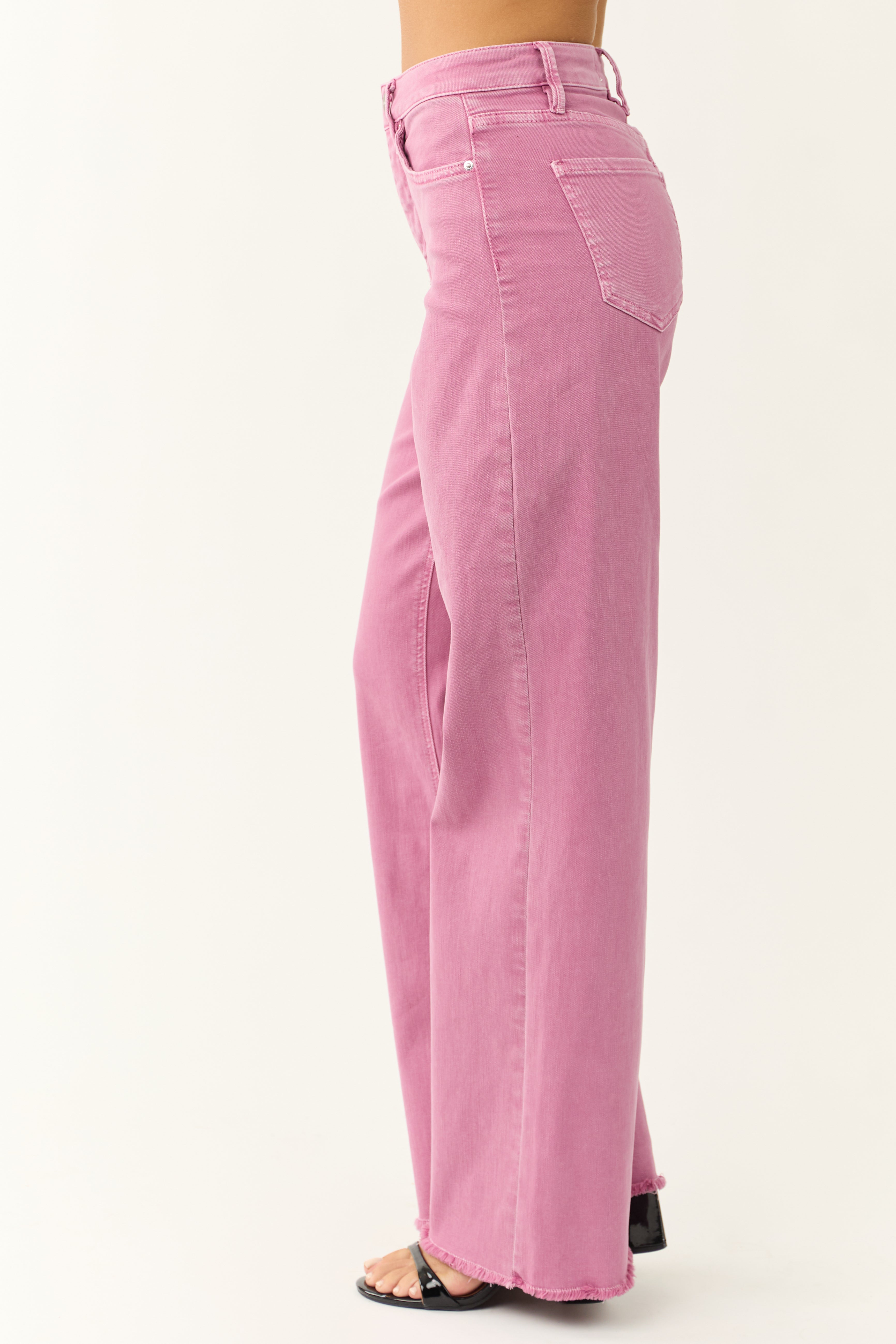 Upgrade your wardrobe with these stylish Orchid wide leg frayed hem jeans . Made of a mix of 78% Cotton, 20% Polyester, and 2% Spandex, these classy bottoms feature a high rise with a slightly loose waistband for extra comfort. The stretchy material allows for 1-3″ extra in the waist. Designed with a zipper fly, button closure, and five pockets, these jeans are perfect for casual or daytime wear. The front rise is 10.5″ while the back rise is 11.5″, with an inseam of 31.5″. Machine wash warm with like colors, using non-chlorine bleach when needed, and tumble dry low. Cool iron if necessary. Available in sizes 0-15. Model is wearing a size 1. Model’s Profile: Size 1, Height 55″, Bust 31″, Waist 24″