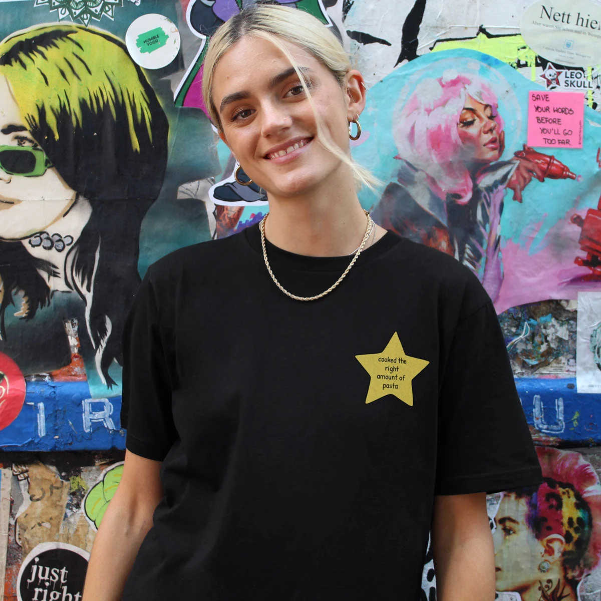 Indulge in our premium organic cotton tee, featuring a unique Pasta Gold Star design for a touch of whimsical charm. Crafted with eco-conscious materials and ethically made to order to reduce waste. Embrace the super-soft feel and unisex fit for a sustainable wardrobe staple that stands out. Each purchase supports Fair Wear Foundation and PETA values. Experience the joy of wearing eco-friendly fashion with our biodegradable packaging. Washable at 30 degrees for lasting quality. Shop confidently with Shopify Payments and Paypal secure checkout. Our dedicated support team ensures your satisfaction with live chat assistance and hassle-free returns or refunds.