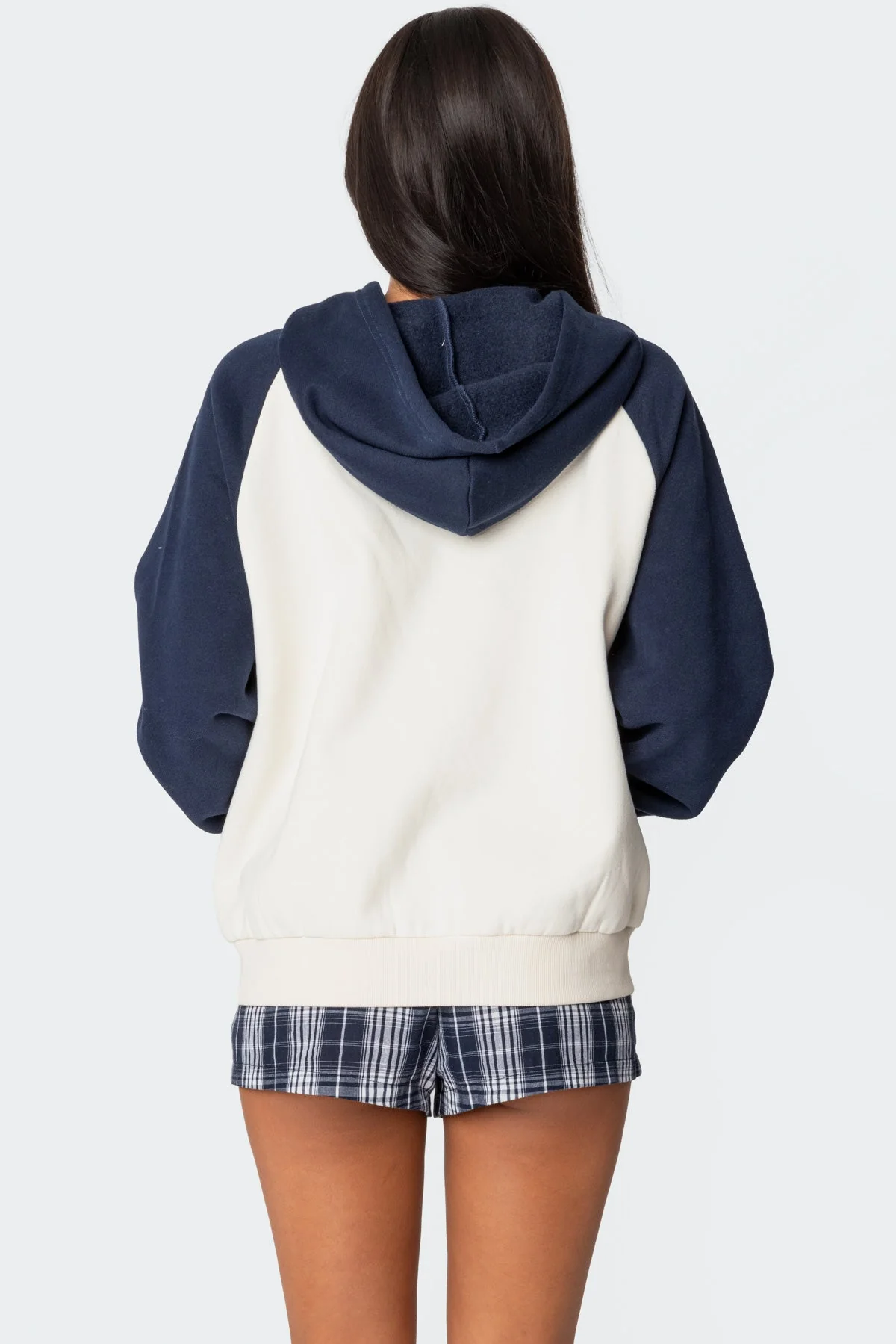 Indulge in cozy comfort with our oversized navy and cream raglan bow hoodie. Featuring a contrast raglan design and delicate embroidered bow detail, this hoodie is made of a blend of polyester and cotton for a luxurious feel. Perfect for casual outings or lounging at home, this wardrobe essential is machine washable for easy care. Available in multiple sizes.