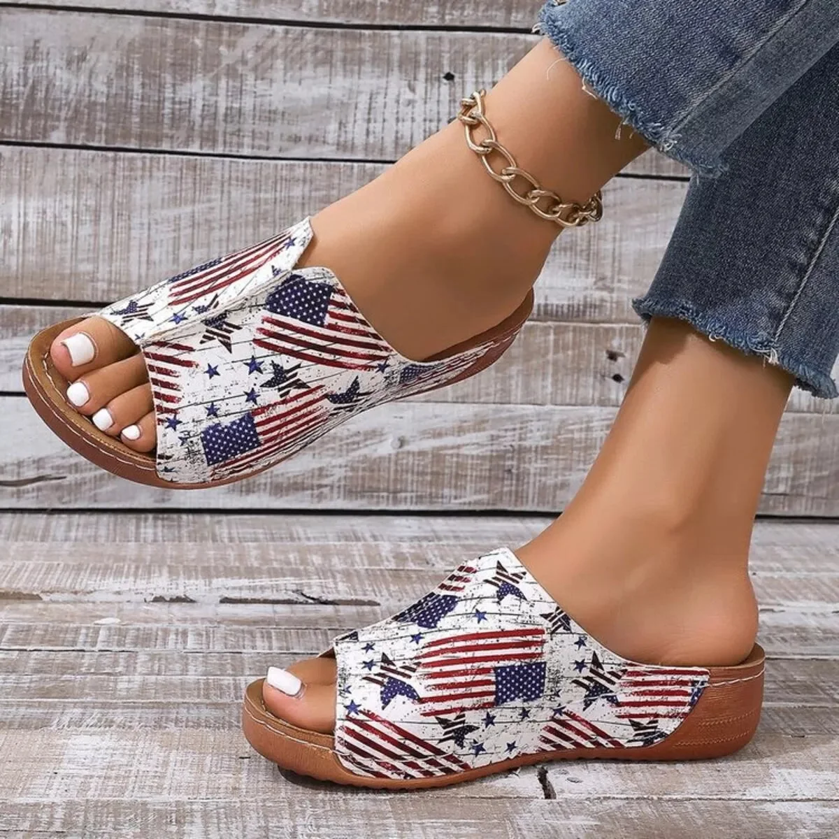 These patriotic wedge sandals are the perfect blend of style and comfort. Available in vivid red and classic white options. Fit: True to size, order your usual size. Includes: Box not included. Heel height: Mid heels. Material: PU Leather, Rubber. Imported Product Measurements (Inches): Size Foot Length – 36(US 5) 9, 37(US 6) 9.2, 38(US 7) 9.4, 39(US 8) 9.6, 40(US 9) 9.8, 41(US 10) 10, 42(US 10.5) 10.2, 43(US 11) 10.4
