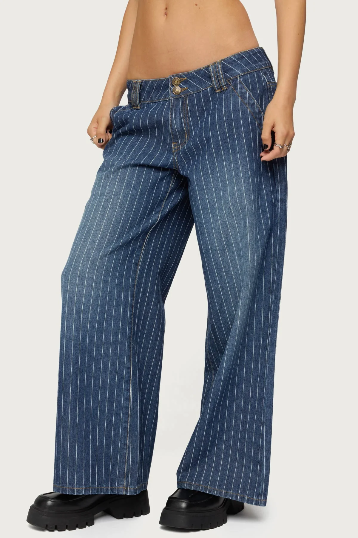 These Petite Striped Wide Leg Denim Pants feature a low rise waist, double button detailing, and are crafted from 100% Cotton for ultimate comfort and style. The striped pattern adds a trendy touch to your wardrobe. Machine washable for easy care. Perfect for everyday wear, special occasions, or casual outings. Available in sizes XS to XL.