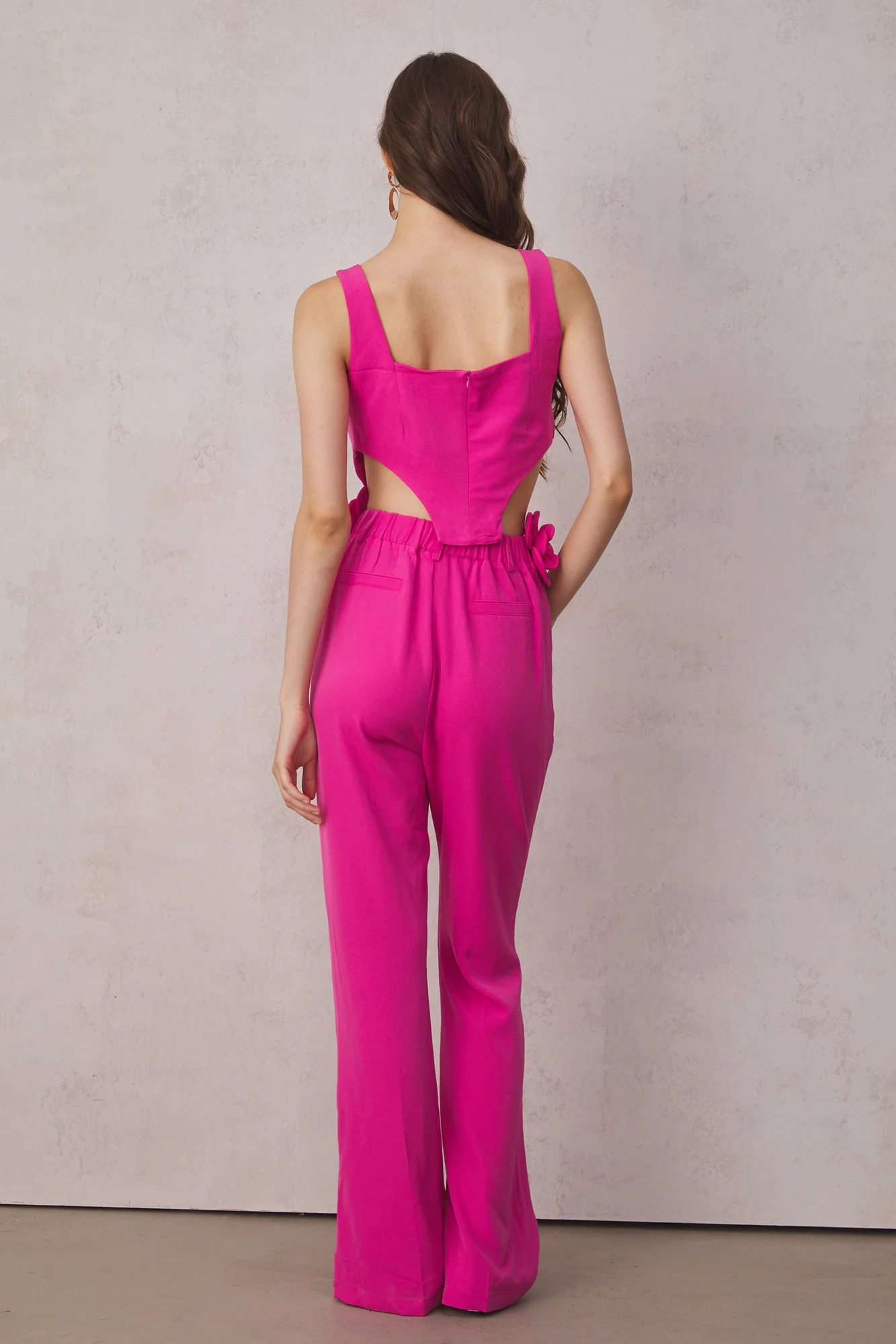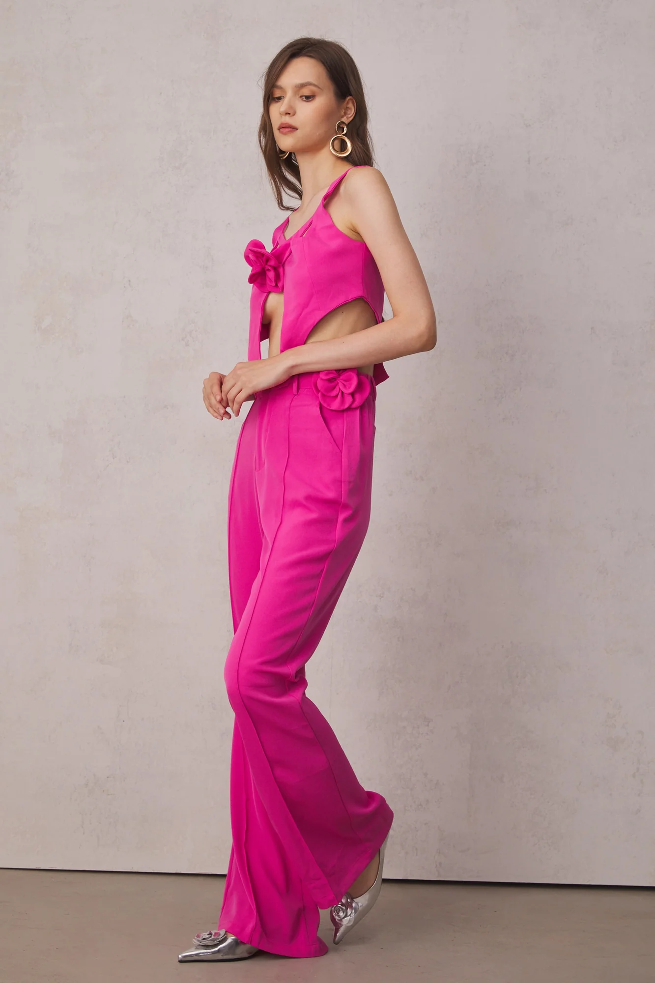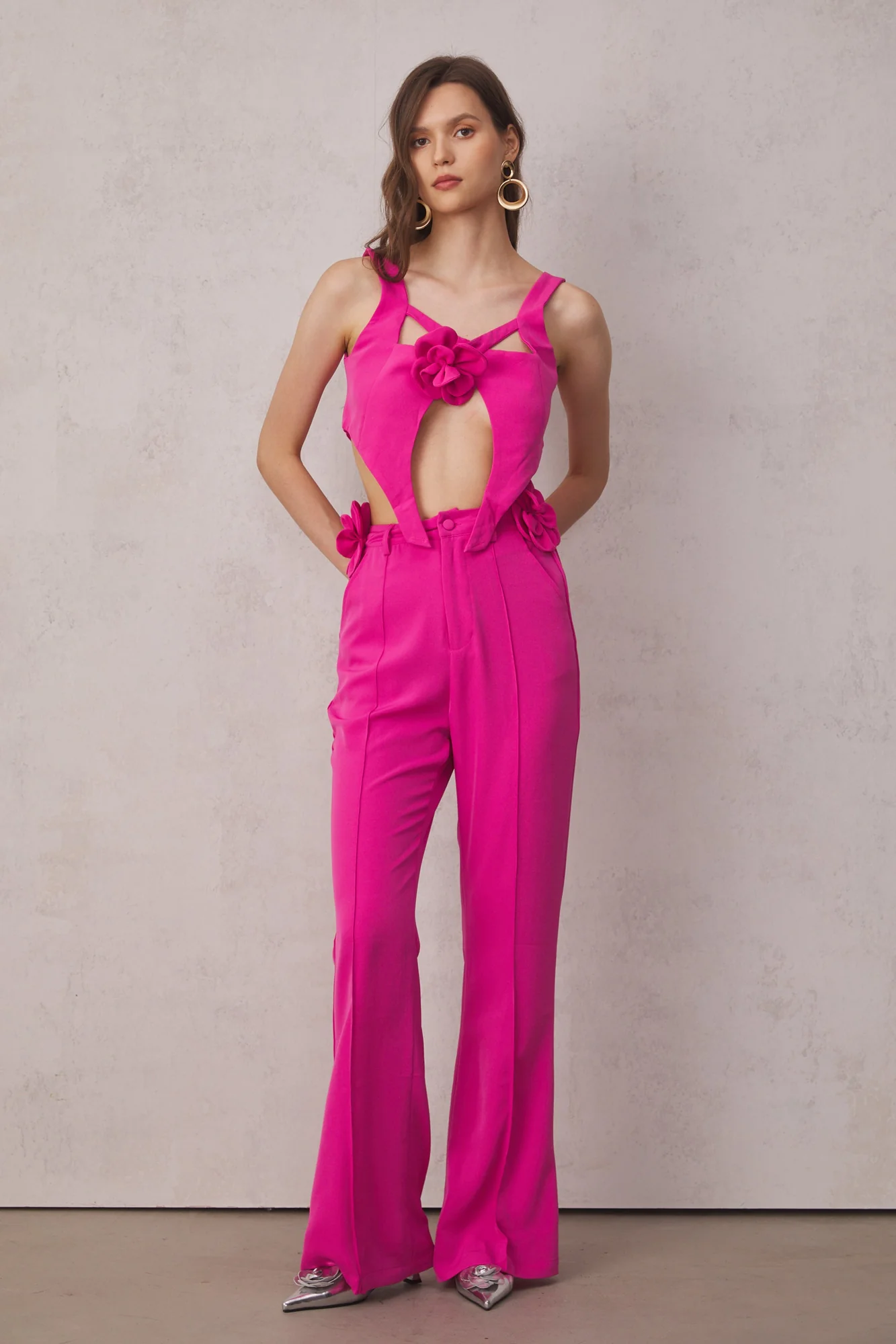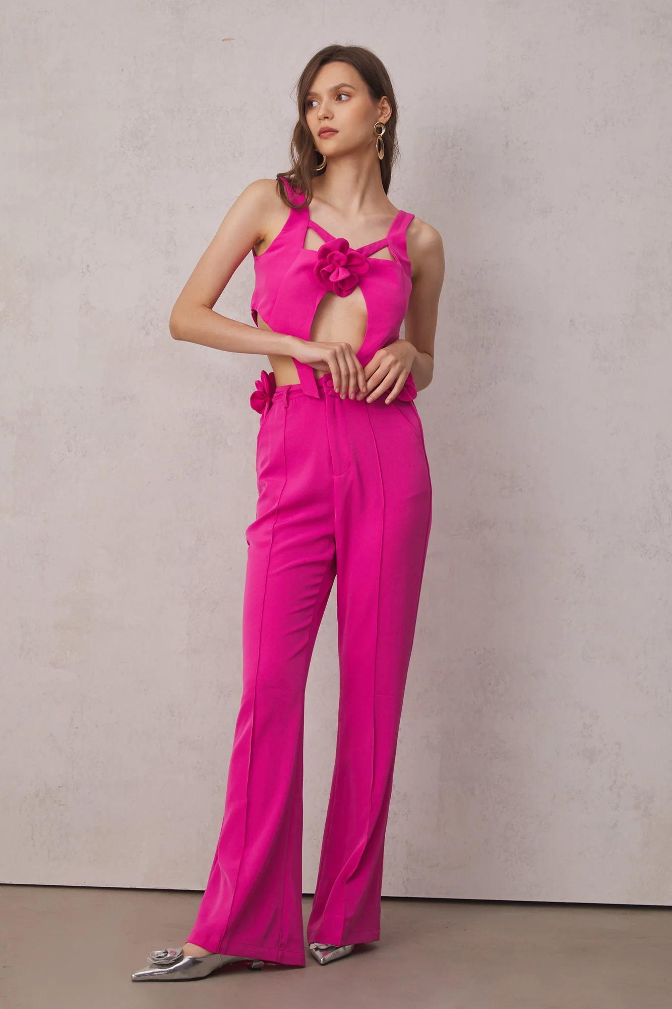 Indulge in the sophistication and femininity of this Pink Floral Hollow Sleeveless Set. Designed with a delicate floral pattern, this set offers elegance and comfort with its sleeveless style. Whether for casual outings or special occasions, this high-quality 100% Polyester set is a versatile wardrobe essential. Enjoy the chic and timeless grace it exudes, complemented by its non-stretch fabric making it ideal for gentle machine wash. Please note that color variations may occur due to lighting conditions in images.