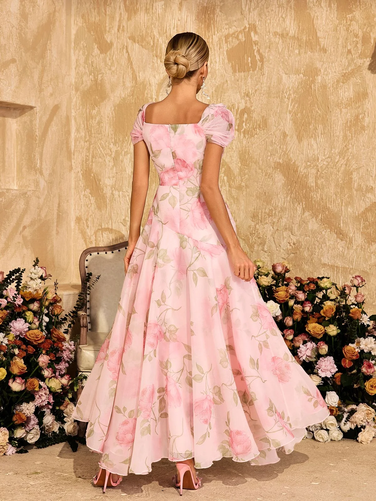 Indulge in the beauty of nature with our Pink Floral Mesh Maxi Dress featuring a captivating alayja flower design. Crafted from premium mesh fabric, this dress offers graceful movement and style suitable for any occasion. Made of 100% Polyester with a slight stretch for comfort. It comes with an invisible zipper at the back. Dry clean only. Note: Color variations may occur due to lighting. Available in sizes XS, S, M, and L. Model showcases size S.