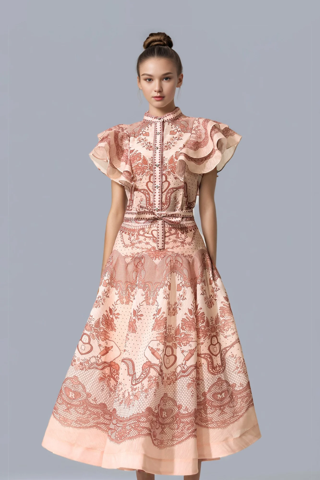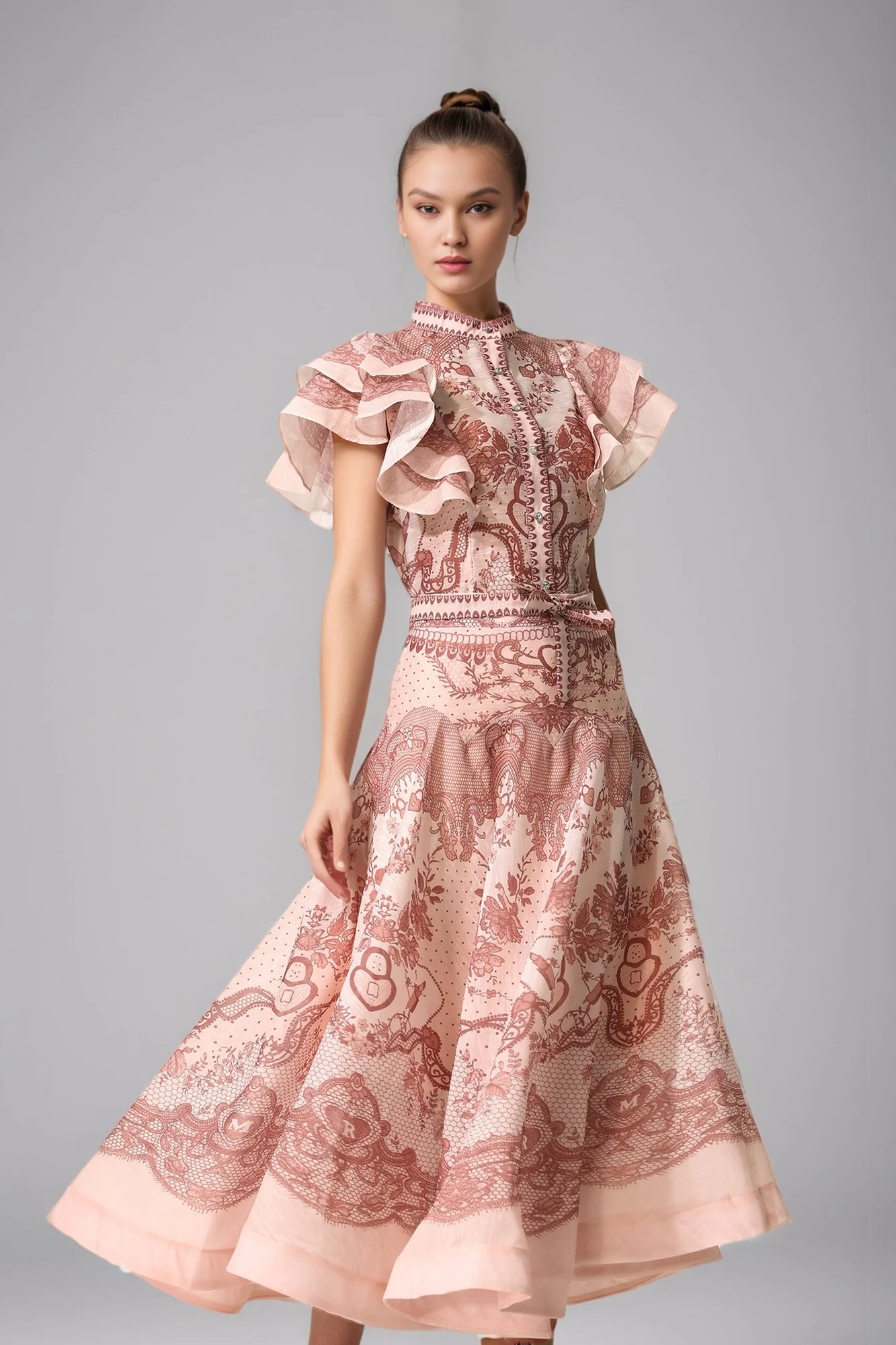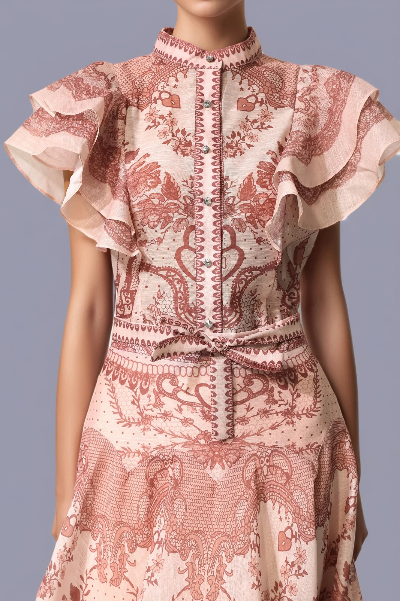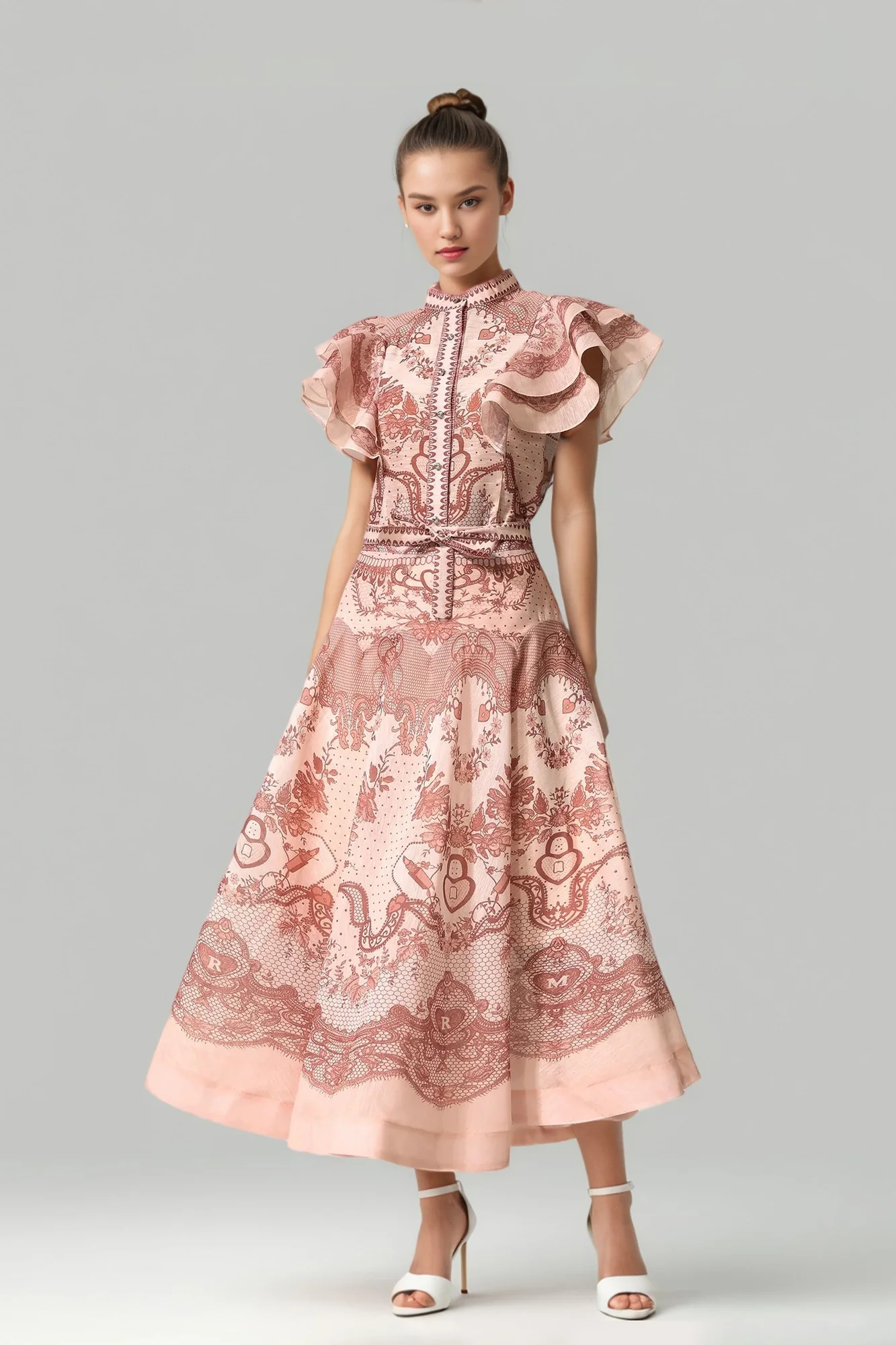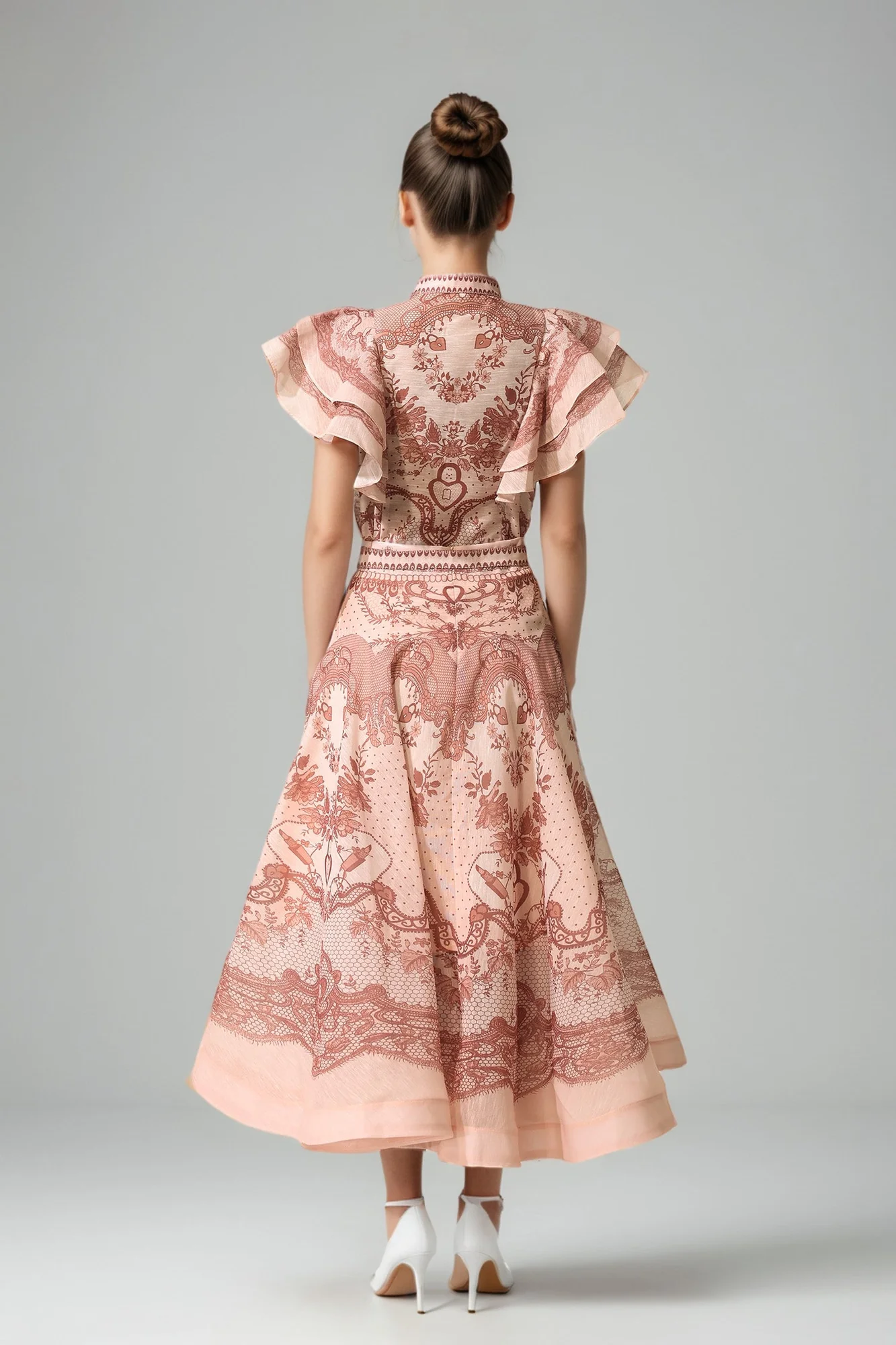 Elevate your wardrobe with our Pink Floral Print Two-Piece Set for women. This elegant Korean-inspired ensemble features a high-waist skirt, delicate flutter sleeves, and a sophisticated floral design, adding a touch of casual luxury to your look. The top is approximately 64cm long, while the skirt measures around 86cm. Crafted from polyester, this set requires gentle dry cleaning, ensuring lasting quality. Available in sizes S, M, L, and XL. Model height: 5 ft 7 inches. Please check our size chart for the perfect fit without sizing up or down.