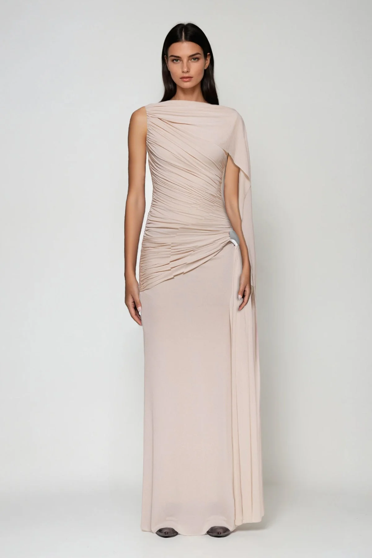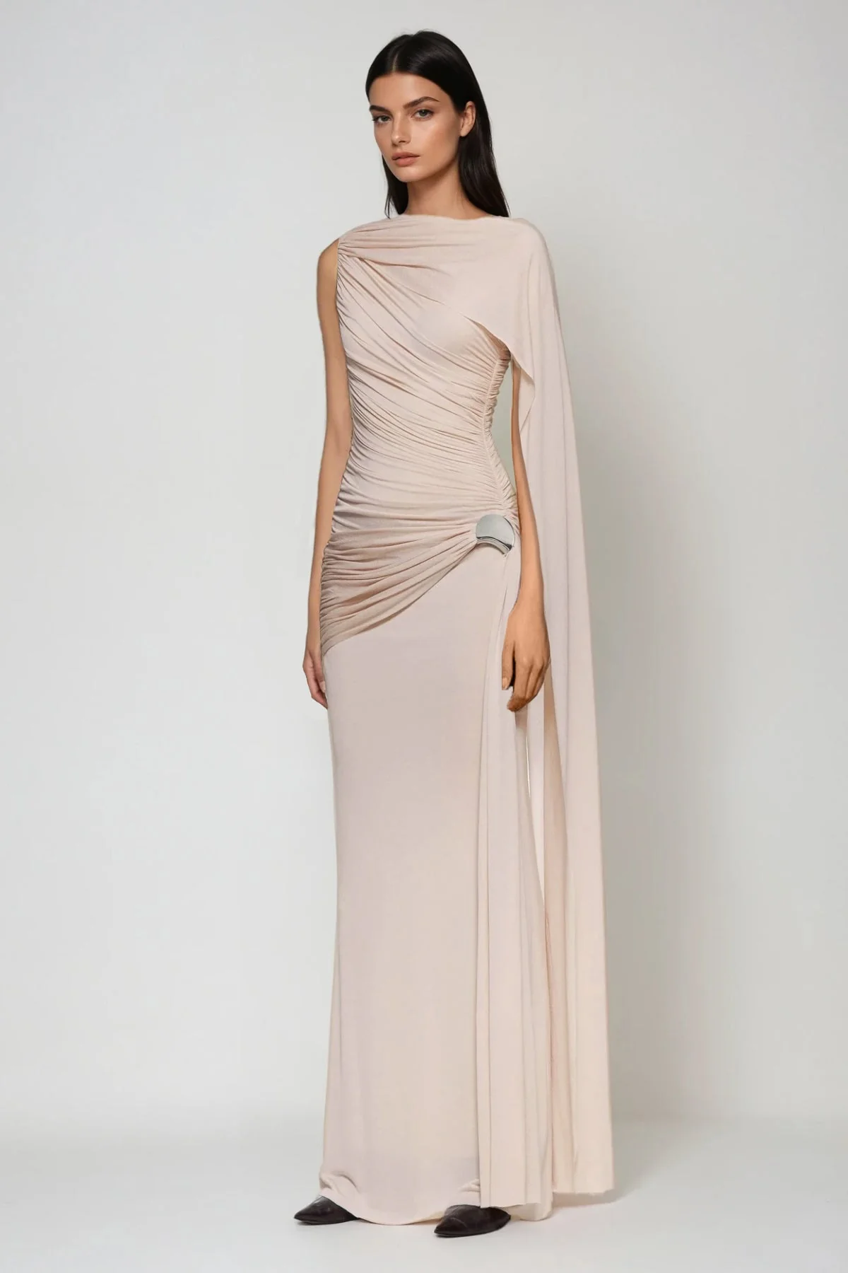 Enhance your elegance with the Pink Maxi Dress featuring a delicate shawl detail for a timeless, refined look. Designed for comfort and style, this dress is perfect for formal occasions or sophisticated daytime events. The soft pink hue adds a touch of femininity to your wardrobe. Enjoy slight stretch and easy care with gentle machine wash. Please note that colors may vary due to lighting for images provided.