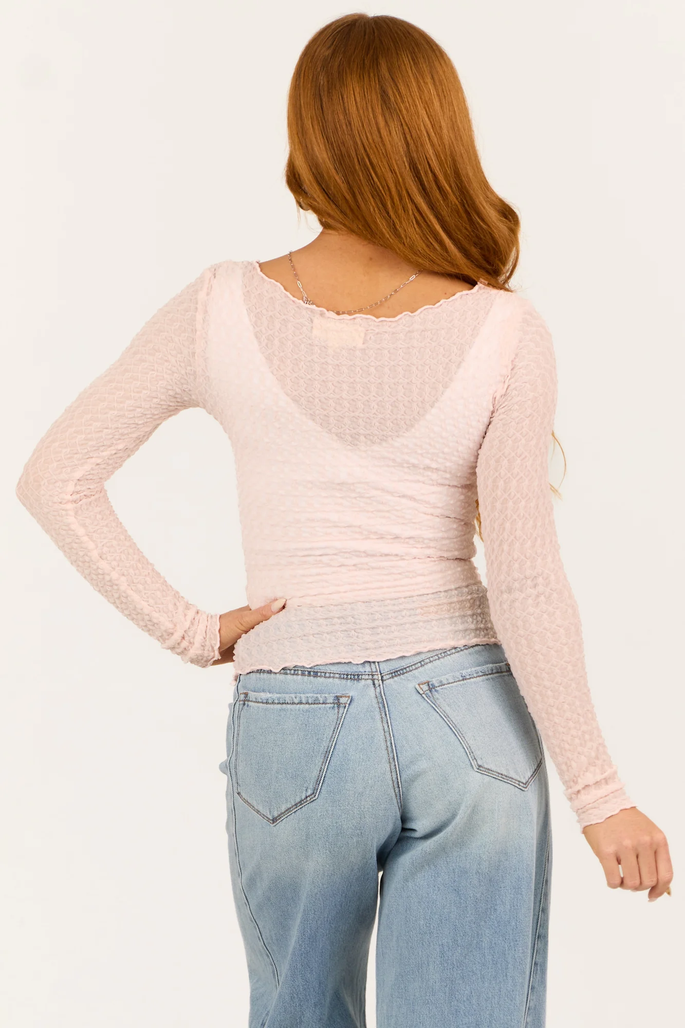 Enhance your wardrobe with this stylish mesh top featuring ruched torso detail, V neckline, and lettuce edge trim. The fitted design offers a flattering silhouette with stretchy comfort. Made of 90% Nylon and 10% Spandex, this top is perfect for any occasion. Hand wash with cold water, line dry, and iron low for care. Available in XS, S, M, L, and XL sizes.