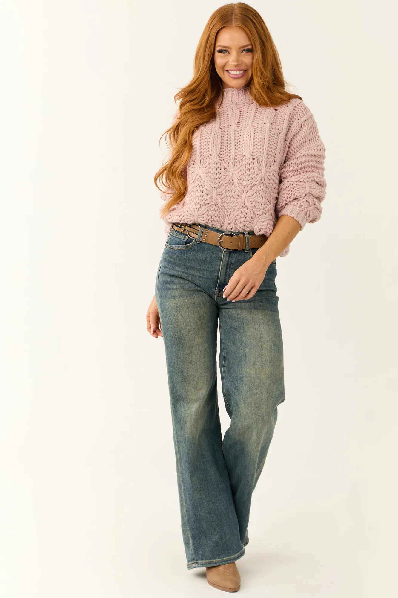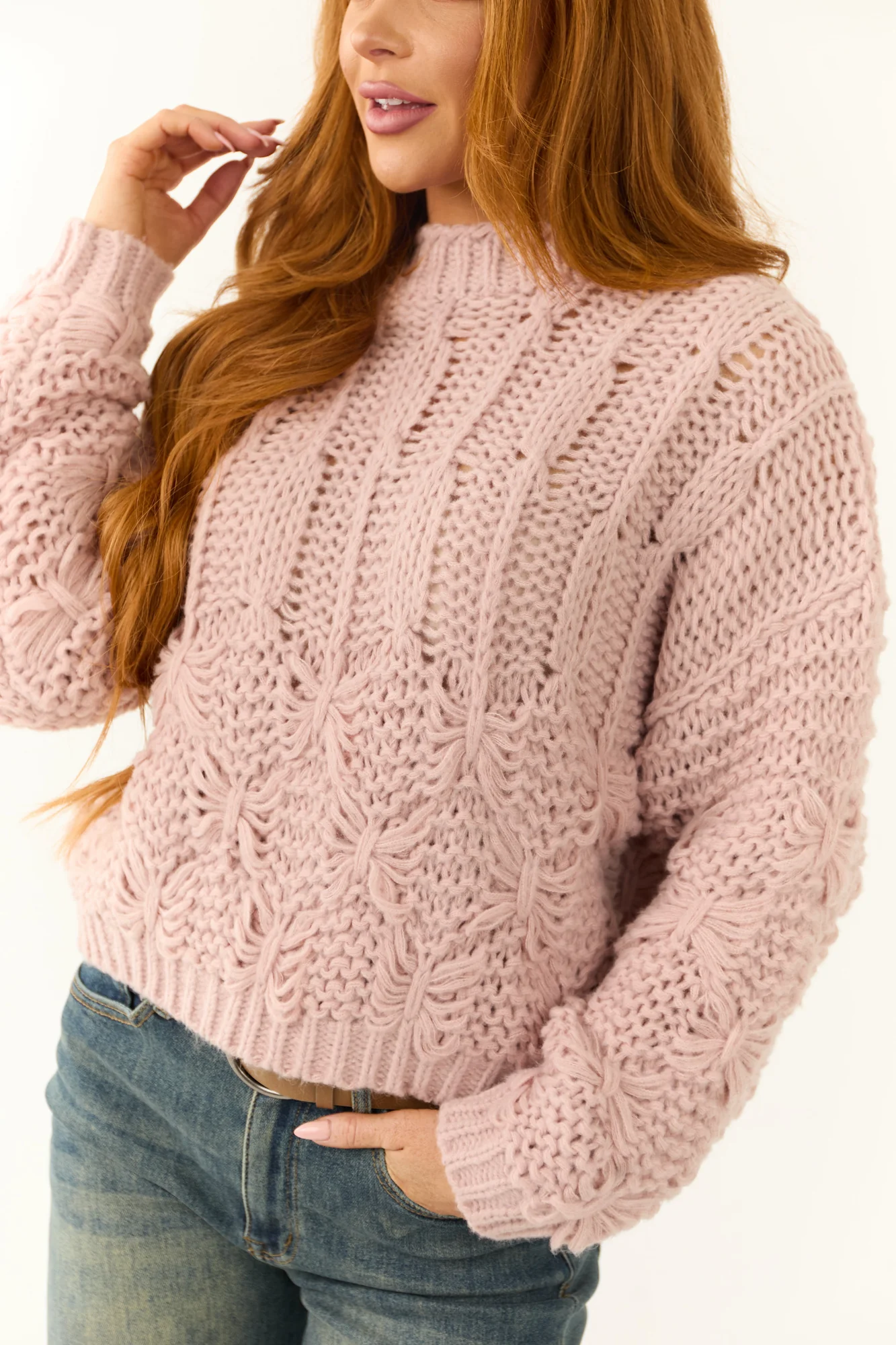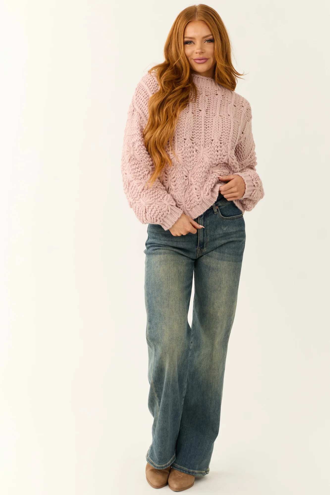 Stay cozy and stylish in this Dusty Blush Long Puff Sleeve Knit Sweater. Crafted from stretchy textured knit, it features a flattering mock neck, drop shoulder design, and comes in sizes S, M, and L. This sweater is perfect for pairing with your favorite bottoms for a chic fall or winter look. Care instructions: Hand wash in cold water, lay flat to dry. Avoid bleach, ironing, and dry cleaning. Model is wearing a size Small – Models measurements: Size 1, Height 55″, Bust 31″, Waist 24″.