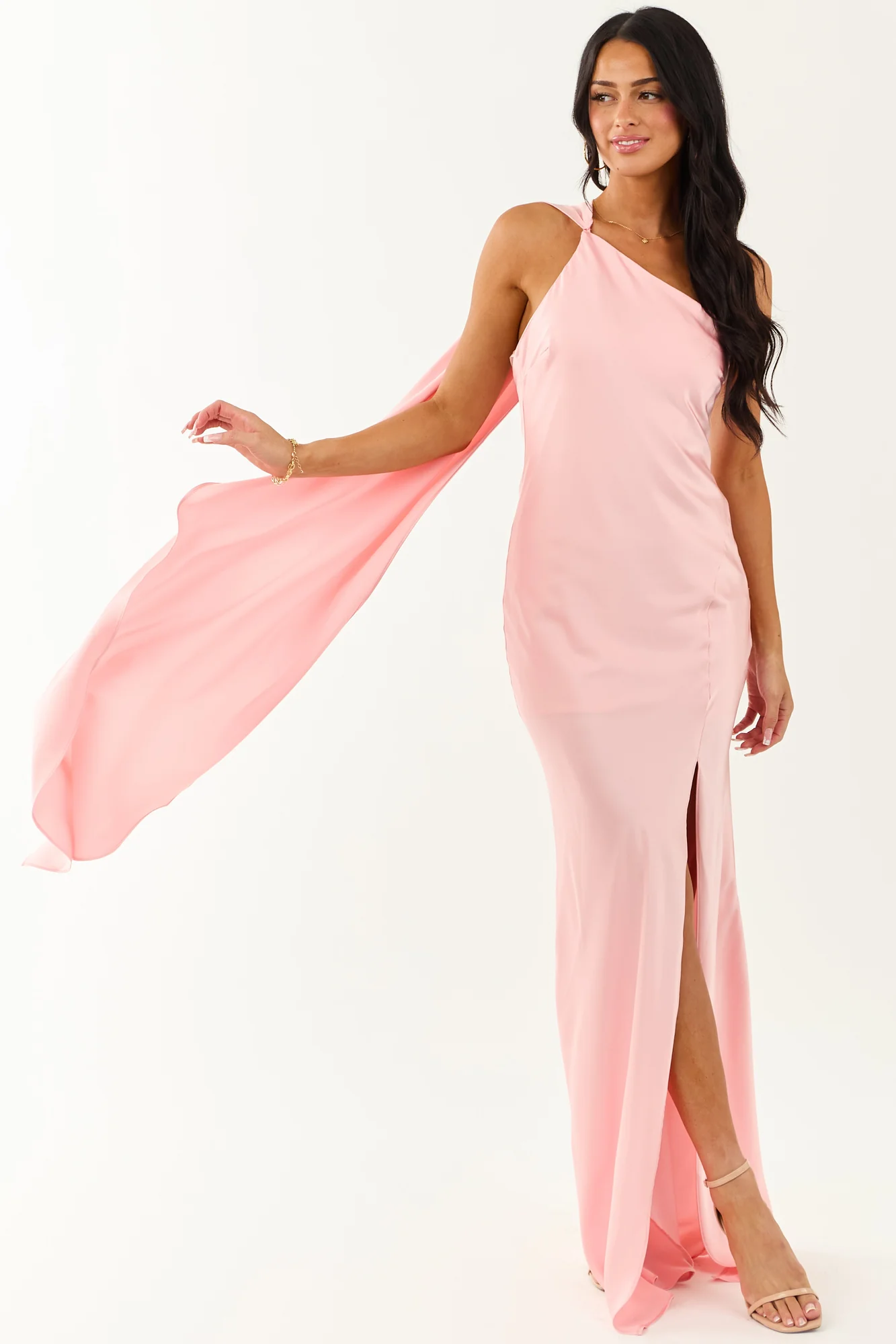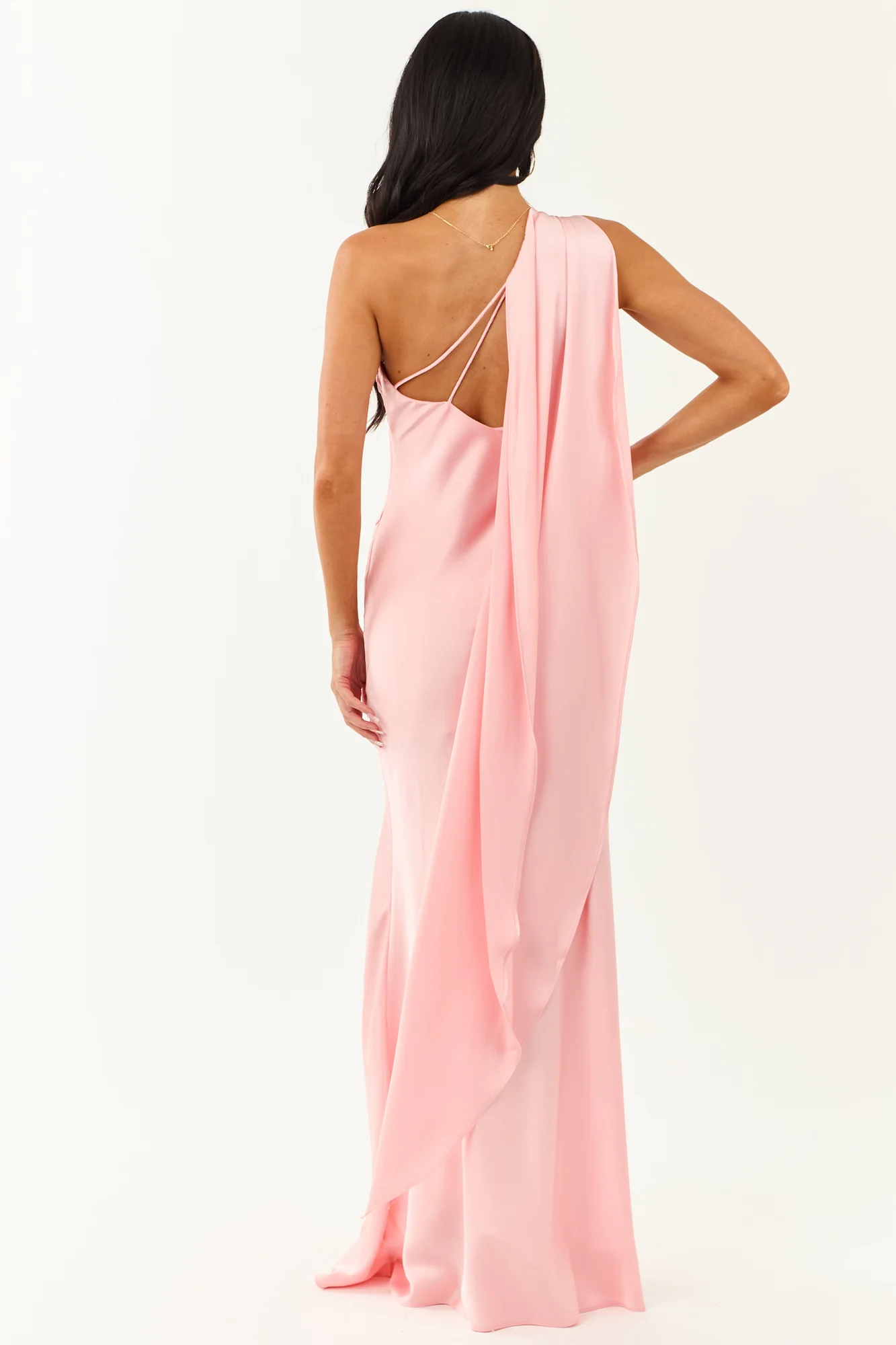 Embrace elegance with our Pink One Shoulder Satin Maxi Dress featuring a side slit for a graceful look. This beautiful dress is designed to make you feel like royalty, with a non-stretchy satin construction and an adhesive strip on the bust to prevent slippage. The sash length of 58 inches adds a touch of sophistication. Perfect for any special occasion, this dress comes in sizes S, M, and L.