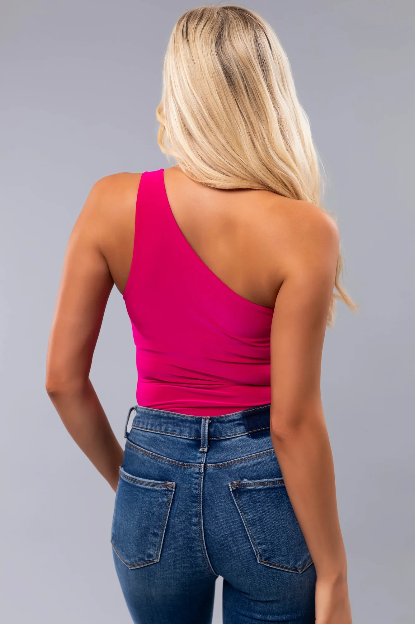 This stunning pink bodysuit features a one-shoulder design and is crafted from a silky knit fabric, providing a luxe and comfortable fit. Available in sizes S, M, and L, this bodysuit is perfect for casual occasions. The stretchy material ensures a flattering and form-fitting look. Made of 92% Polyester and 8% Spandex, this bodysuit is lined for added comfort. Hand wash cold, hang to dry for best results. Model is wearing size Small. Elevate your wardrobe with this chic and versatile piece .