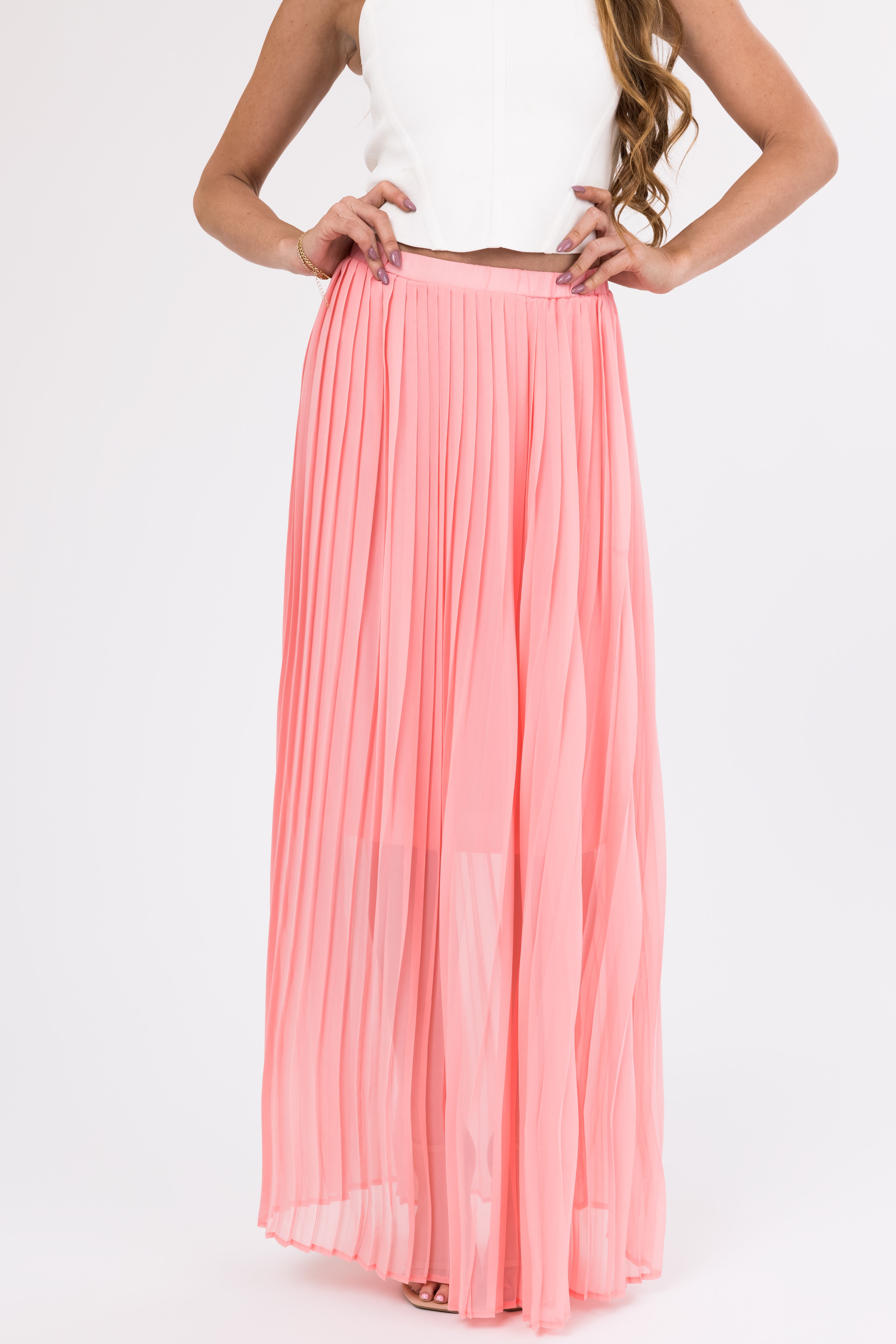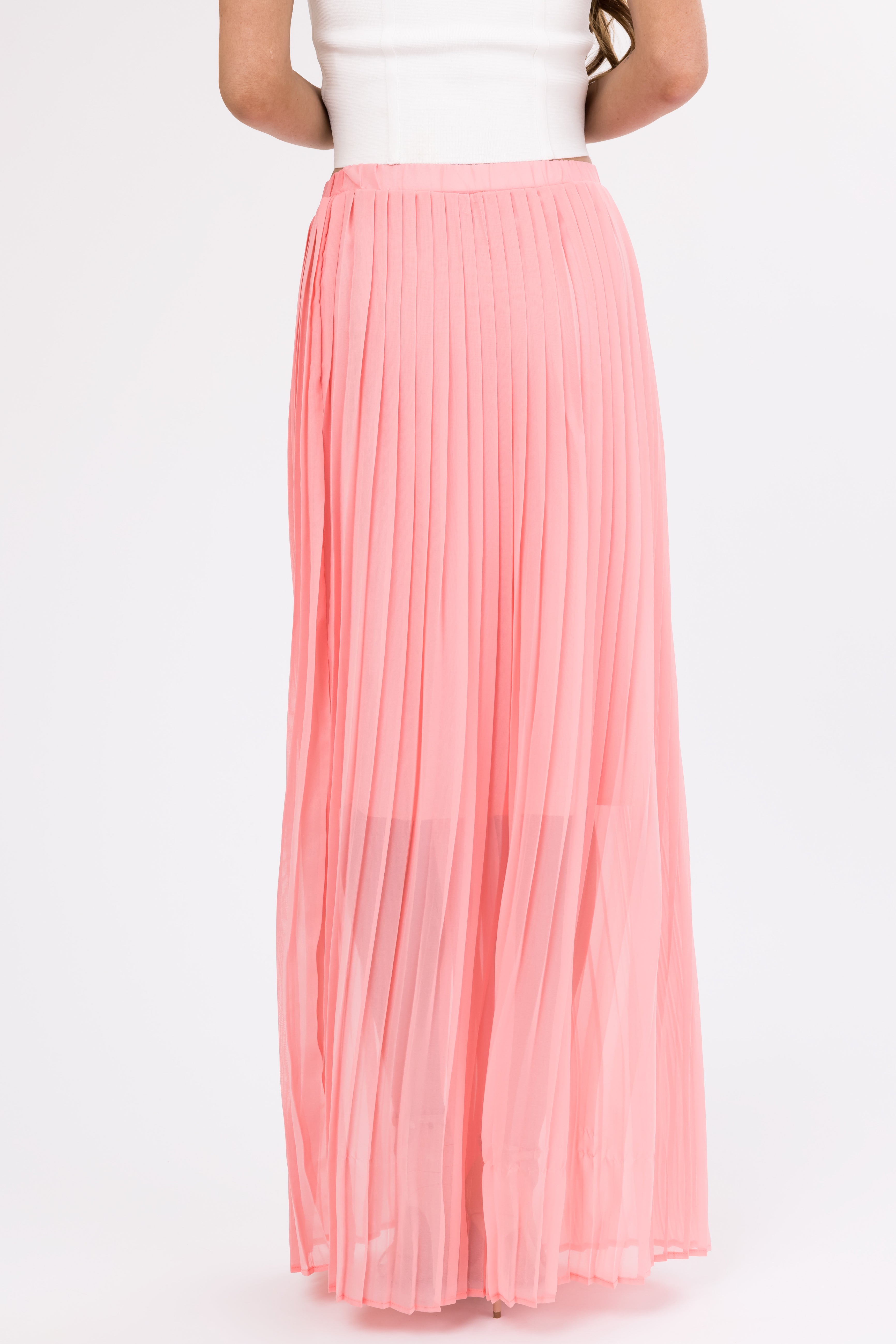 Experience elegance and comfort with our Pink Pleated Chiffon Maxi Skirt available in sizes S, M, and L. Crafted from non-stretchylined chiffon, this skirt features an elastic waist measuring 25-31″ and a length of 42-43″. Made of 100% Polyester, perfect for various occasions. Made in the USA.