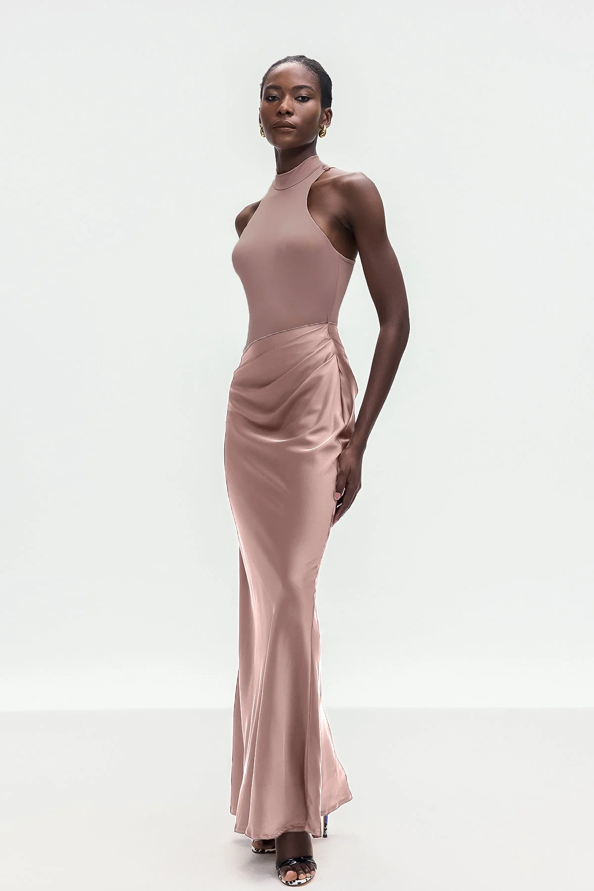 Elevate your wardrobe with our Pink Satin Tank Top Maxi Dress. Crafted from luxurious satin fabric, this dress features a figure-flattering silhouette and a comfortable tank top style. Perfect for any occasion, this sleek and sophisticated dress offers a timeless and elegant look that stands out. Experience slight stretch and easy care with gentle machine wash. Please note, color may vary due to lighting differences in images.